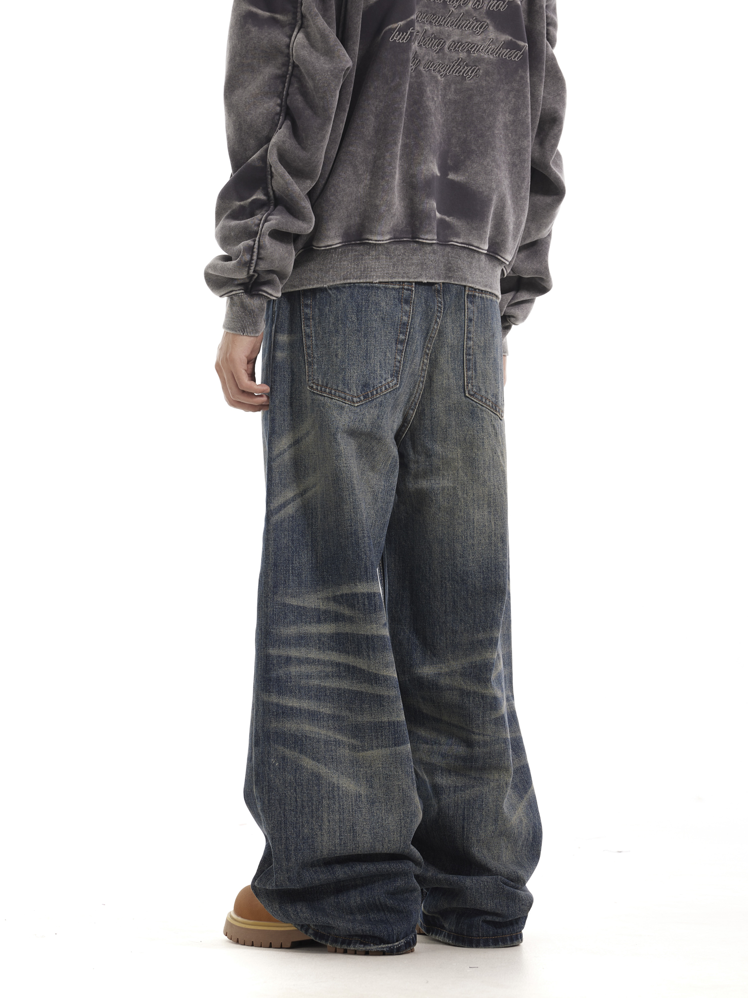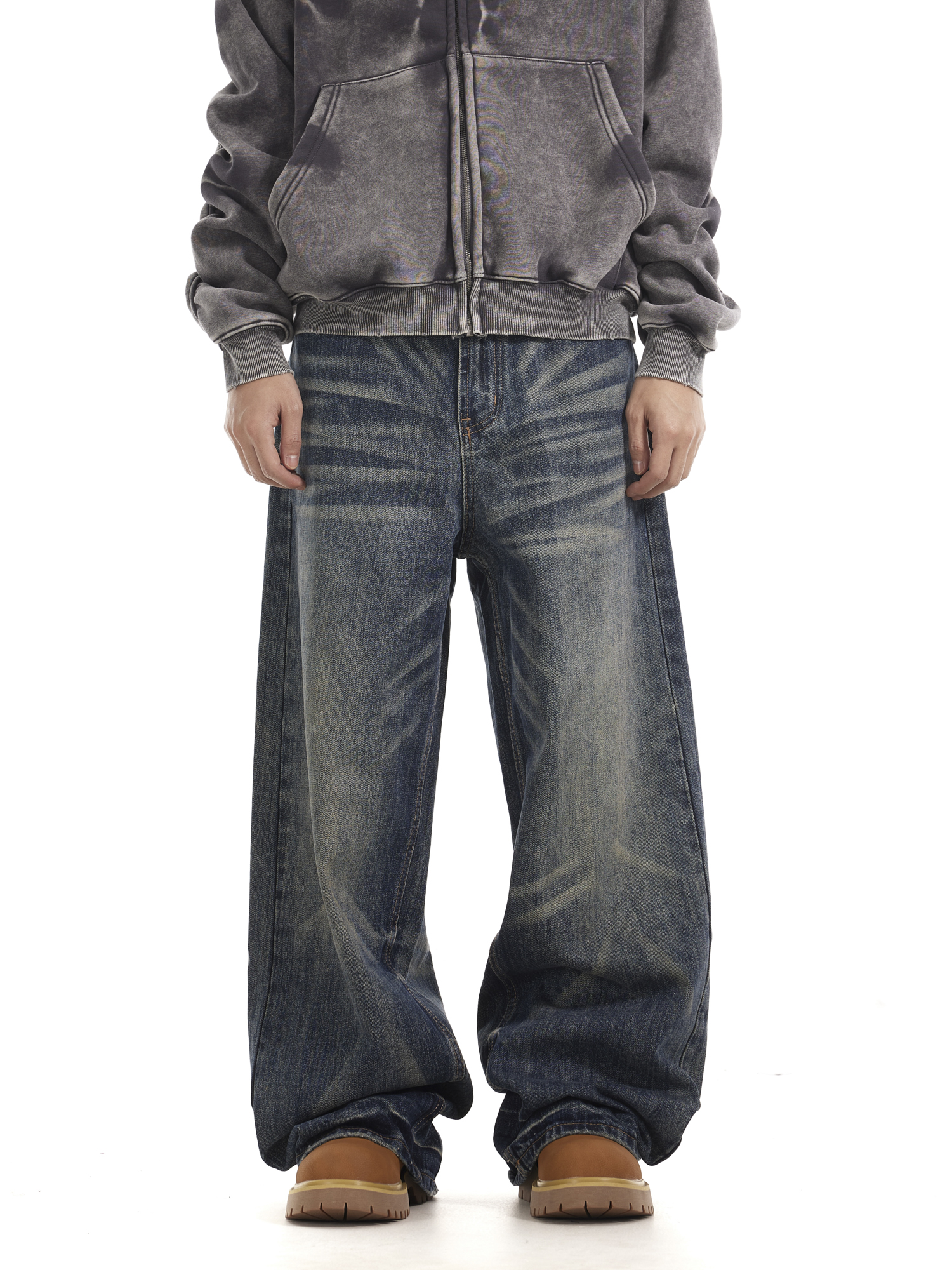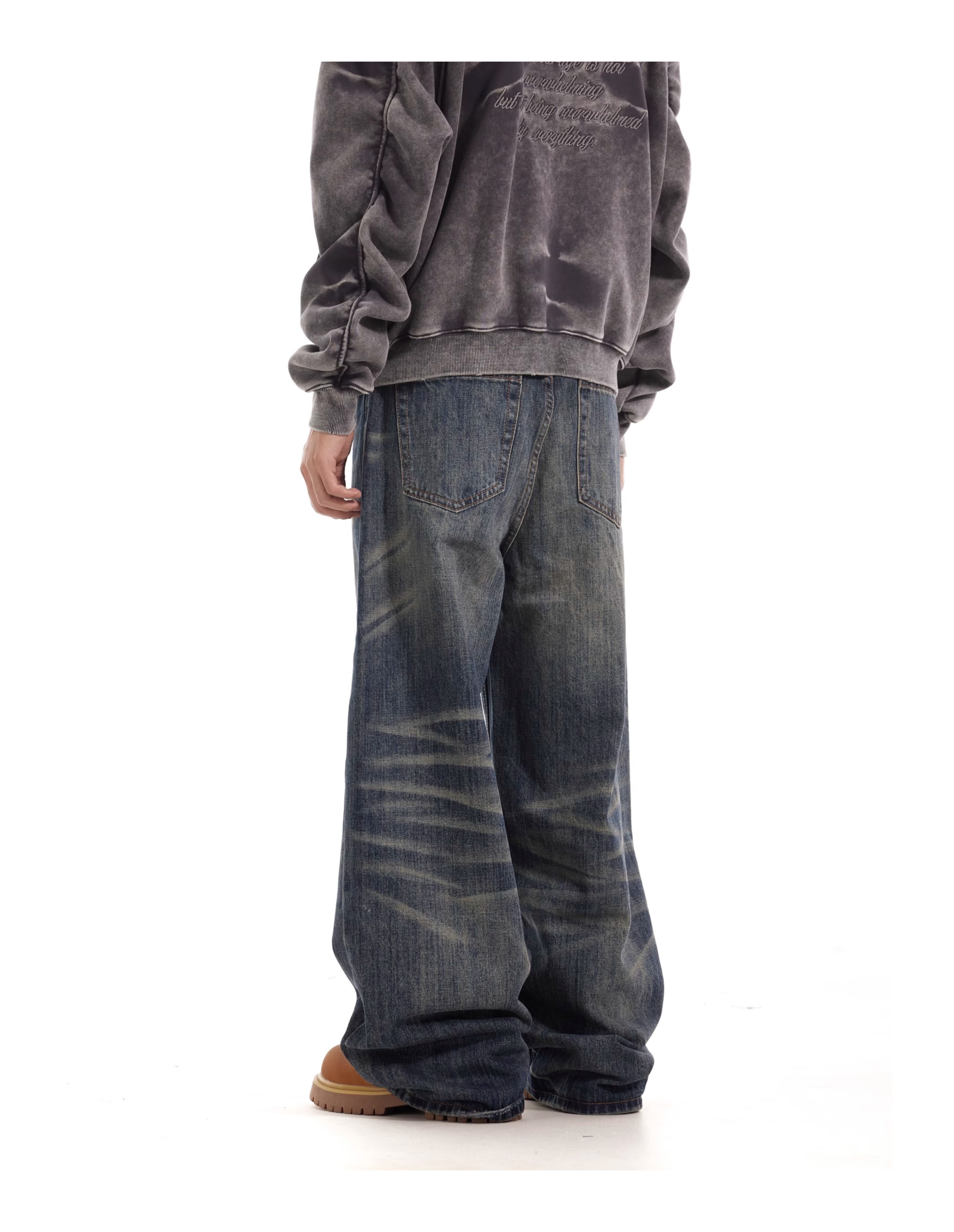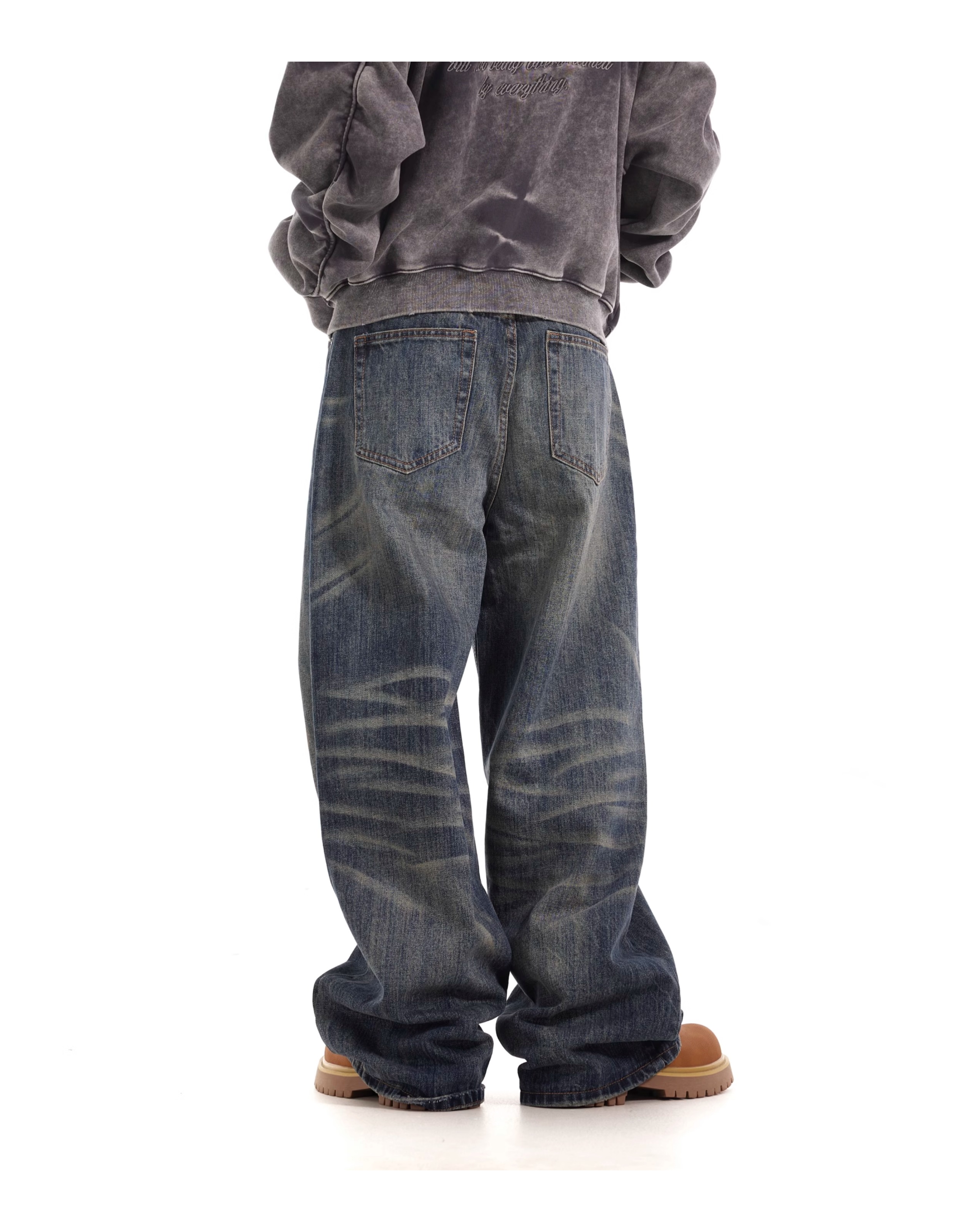 BTSG Wash Cat Whisker Loose Straight Jeans