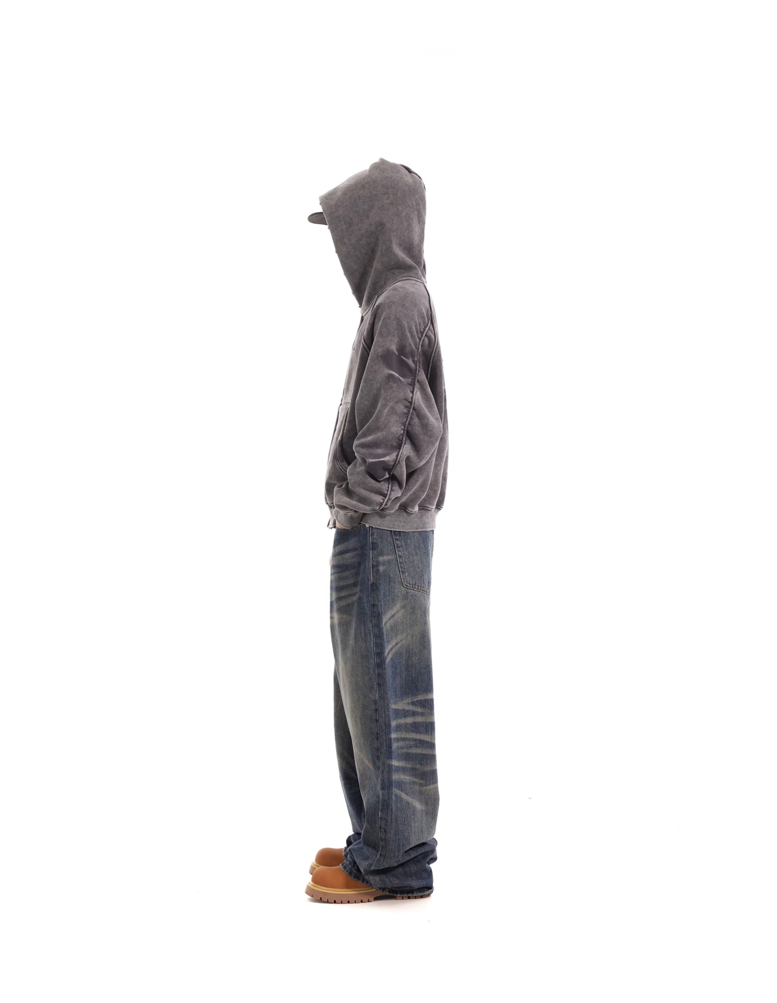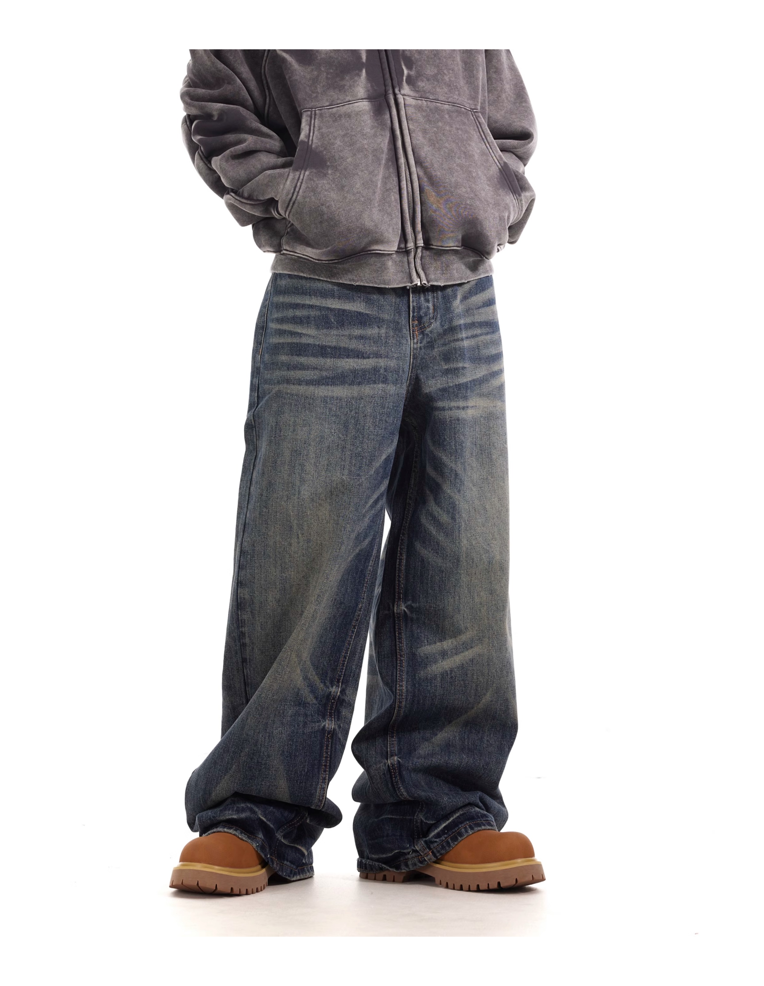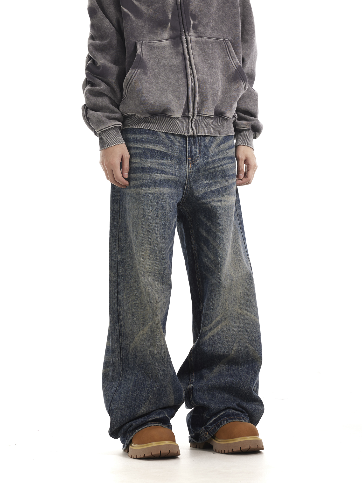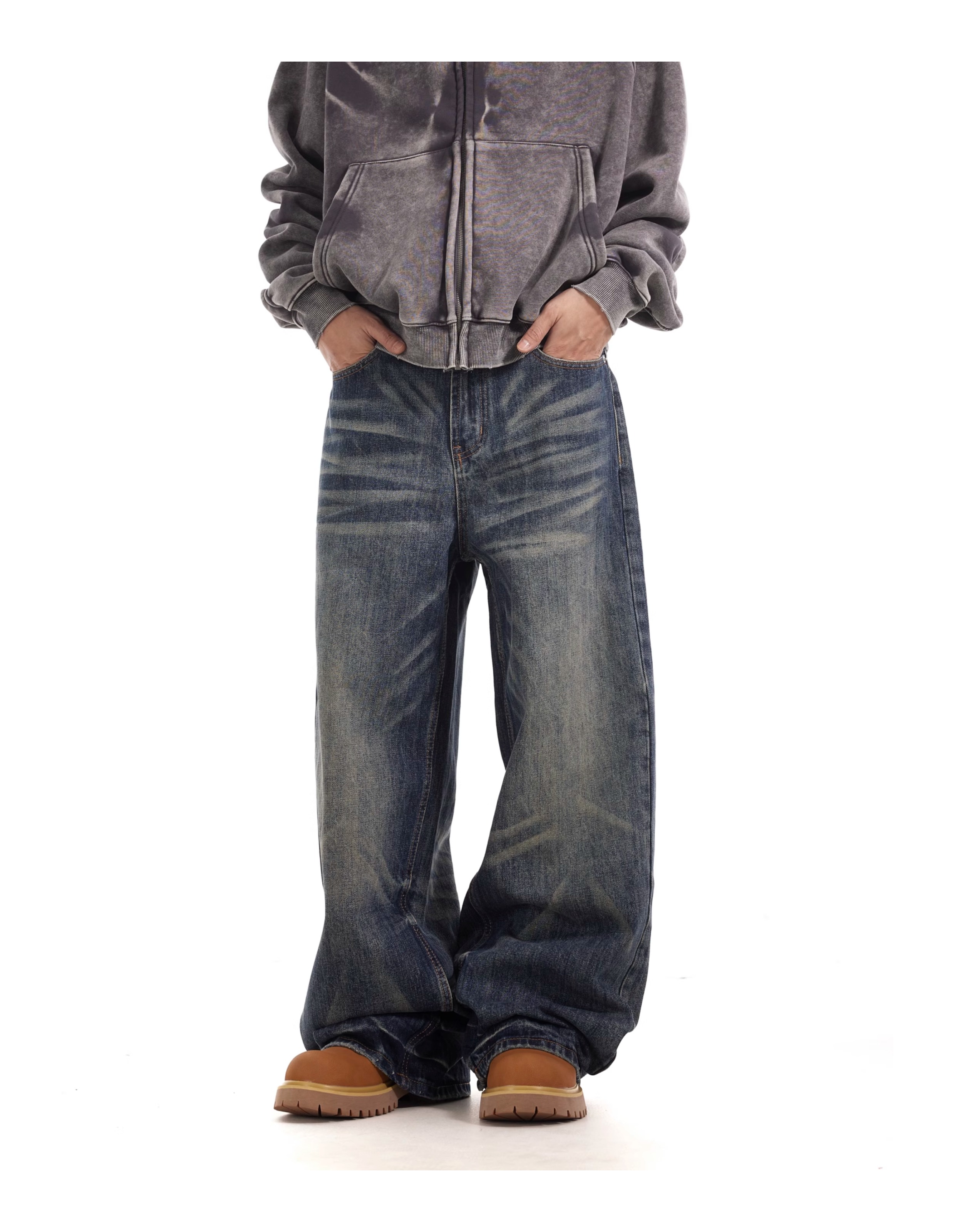 BTSG Wash Cat Whisker Loose Straight Jeans