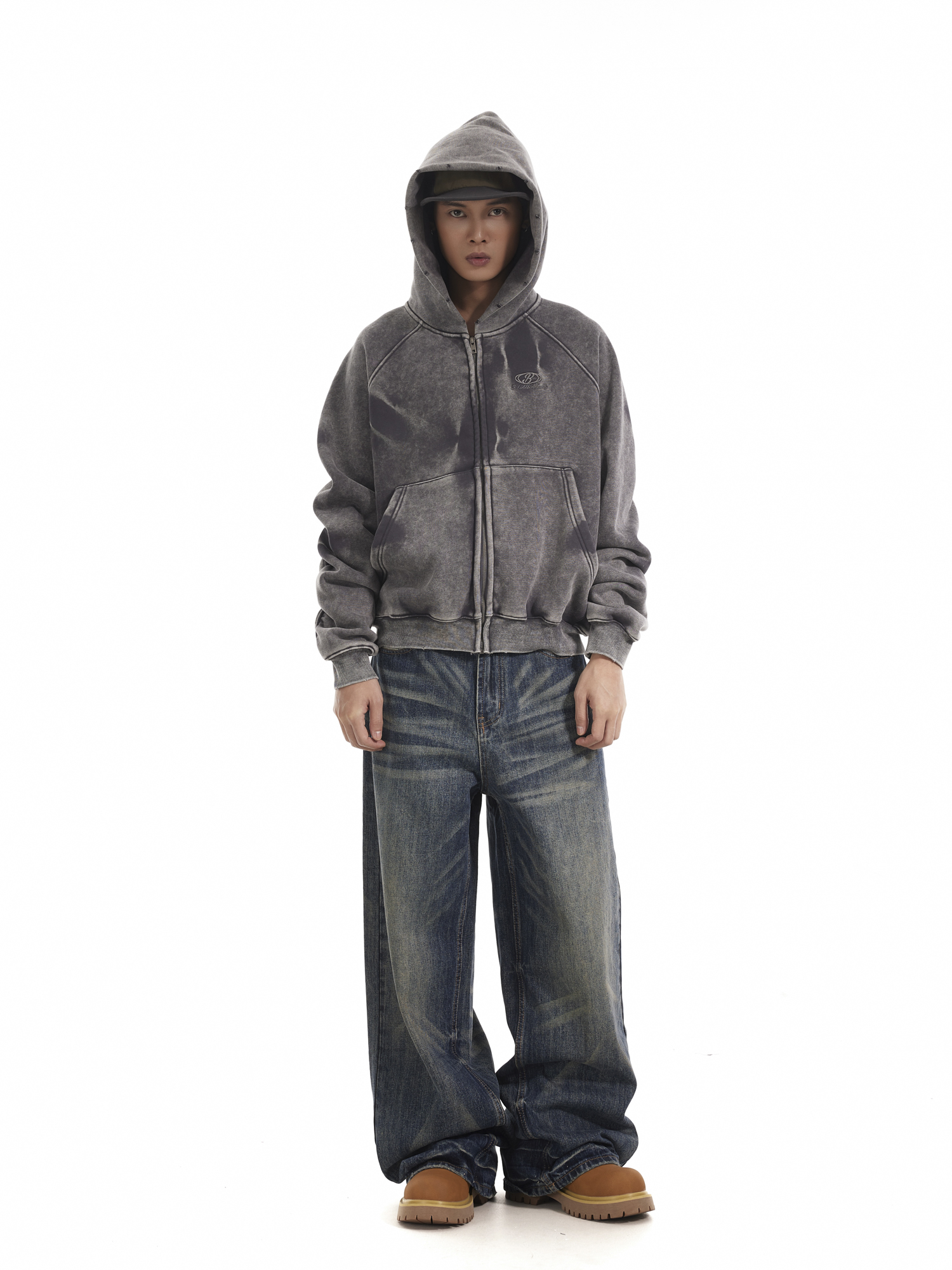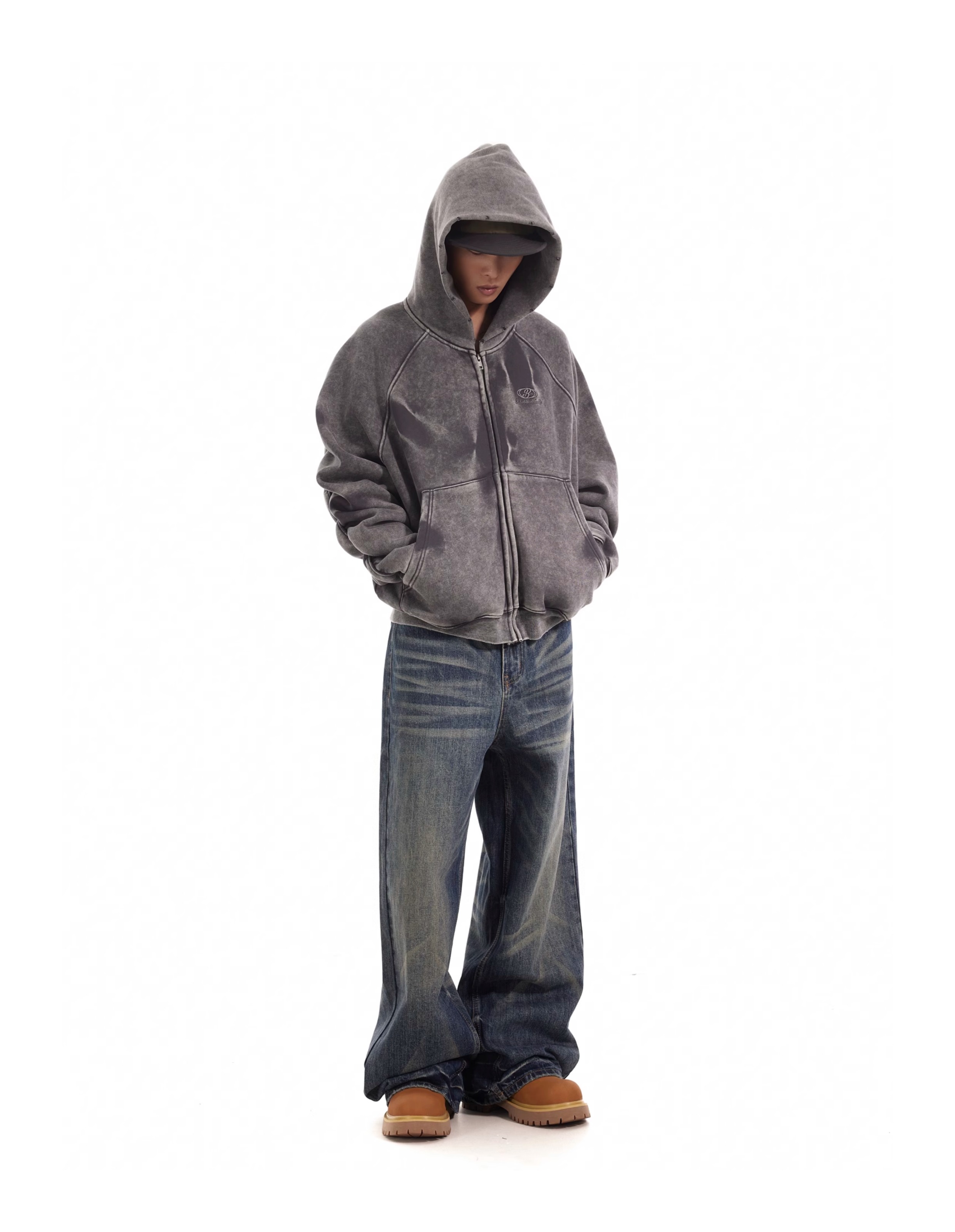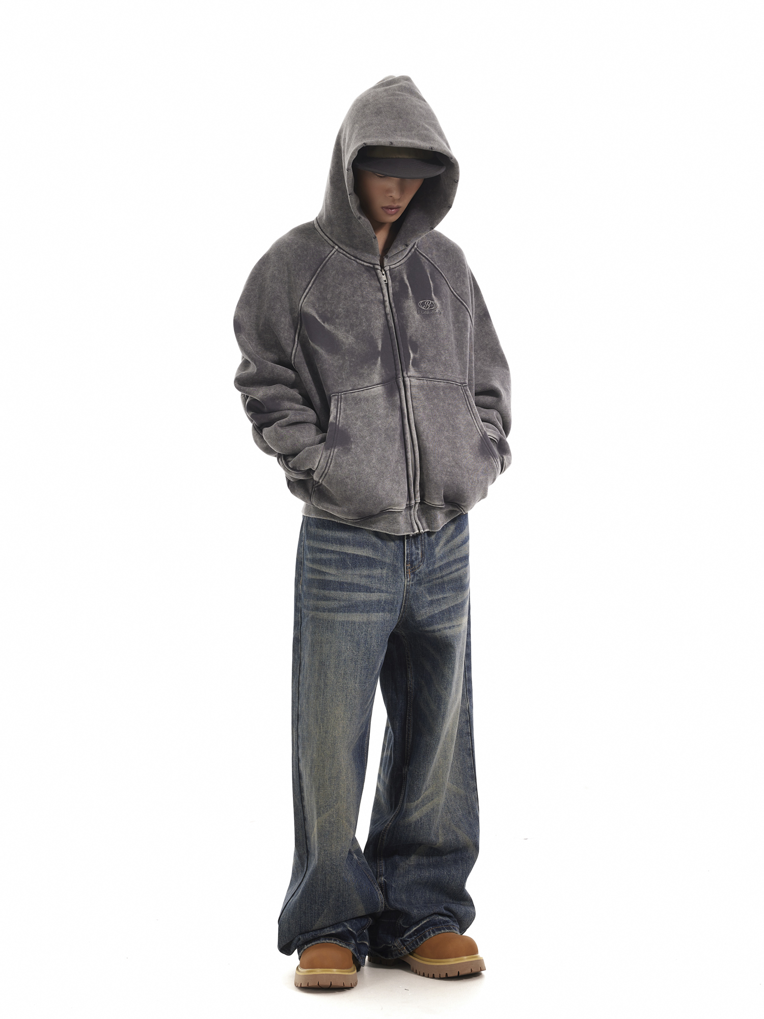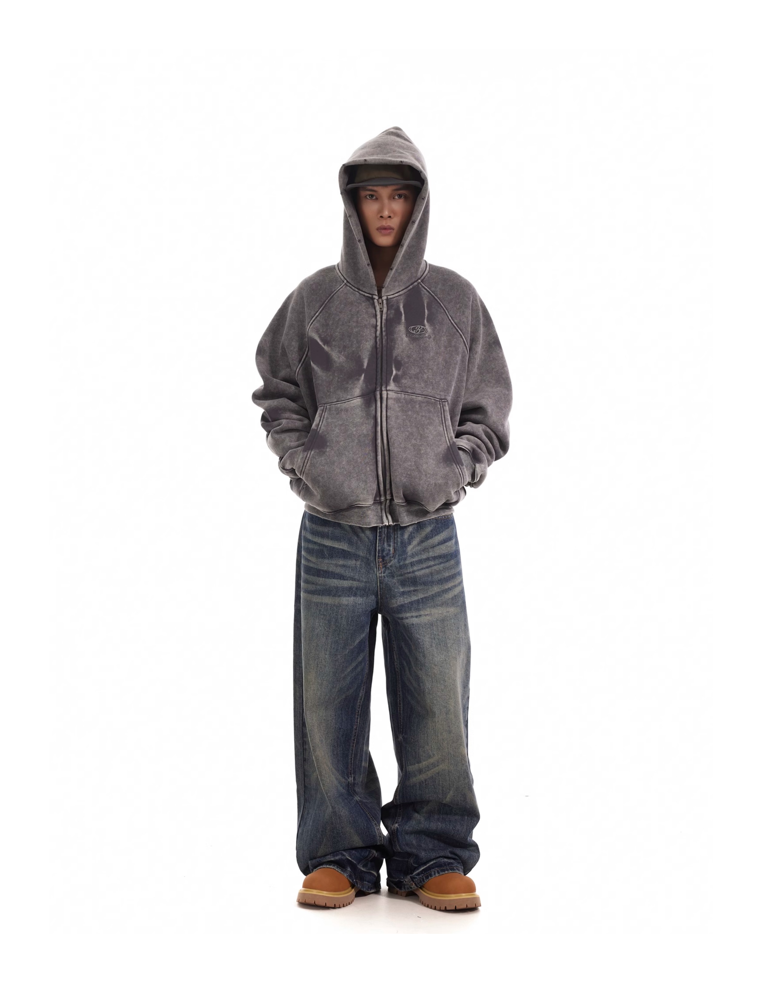BTSG Wash Cat Whisker Loose Straight Jeans