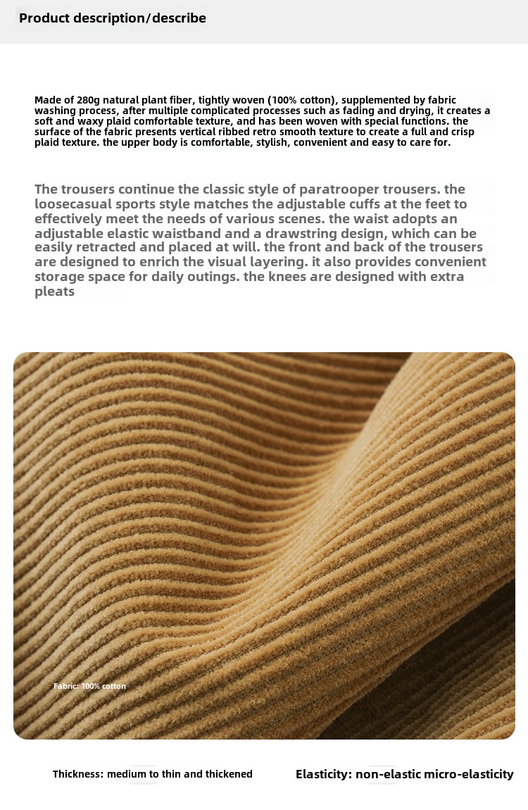 BUTTBILL 8-pit non-elastic corduroy Japanese Pants