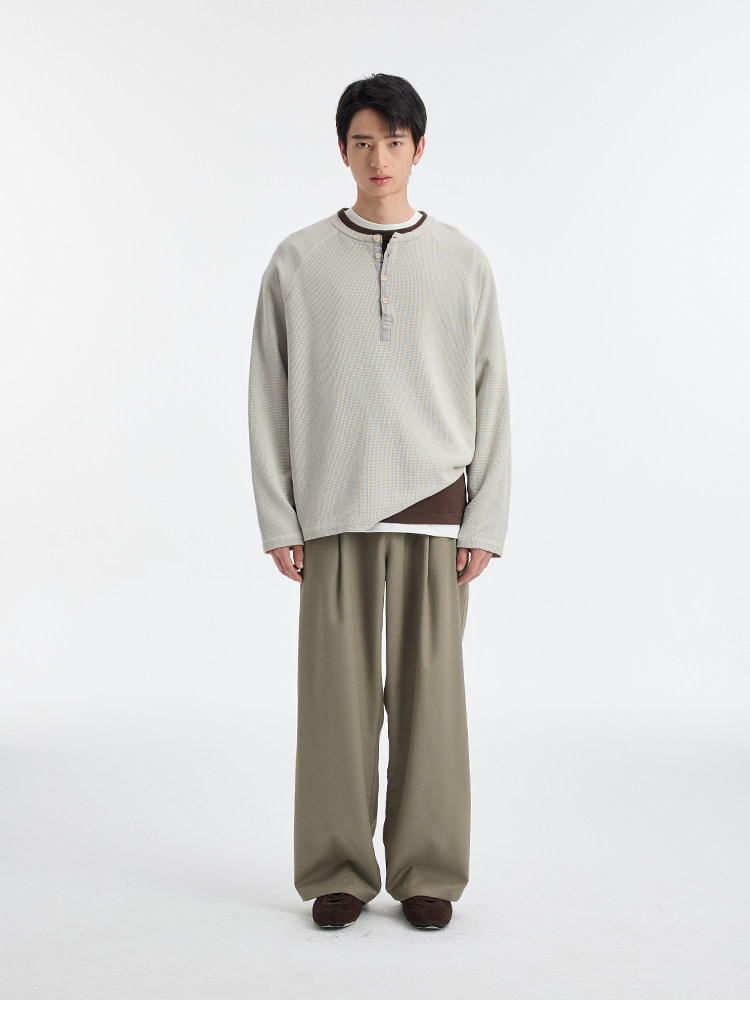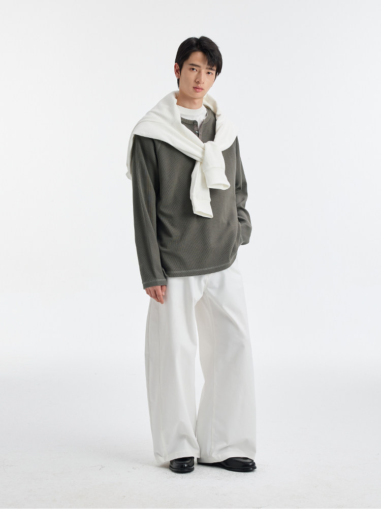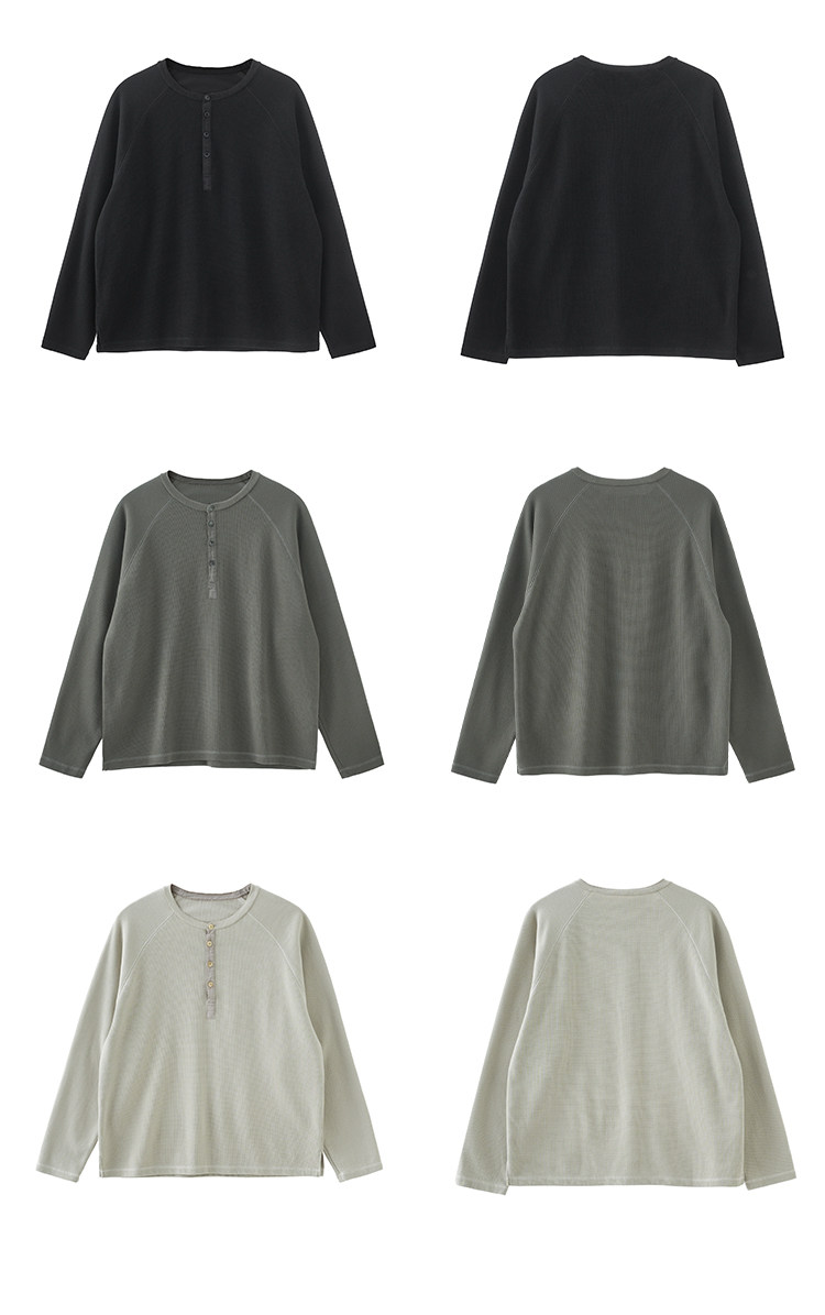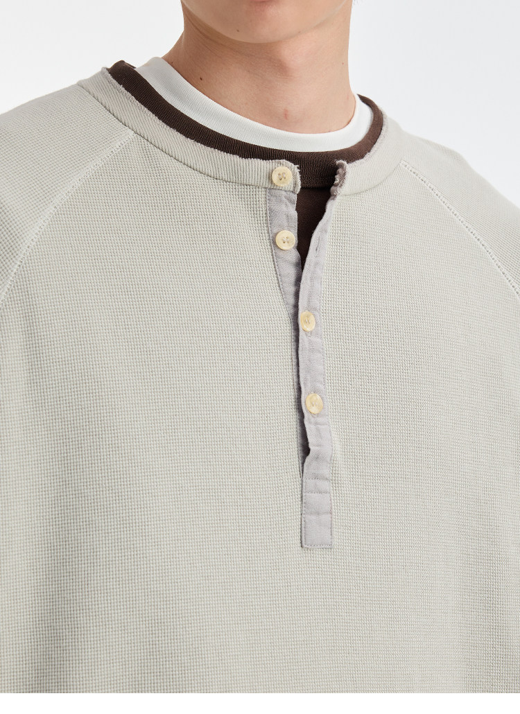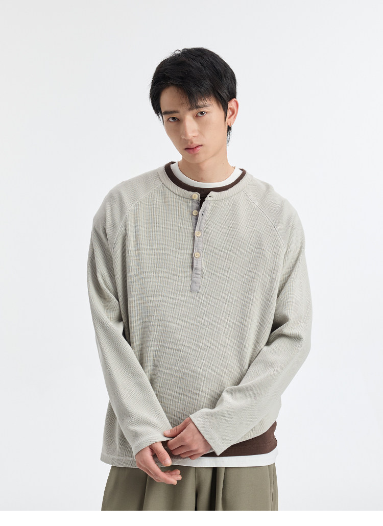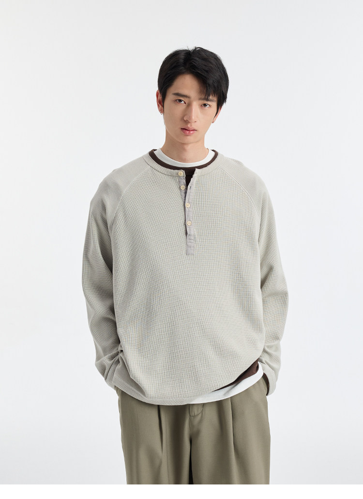 BUTTBILL Henry Neck Waffle Long Sleeve Sweater