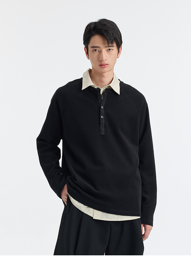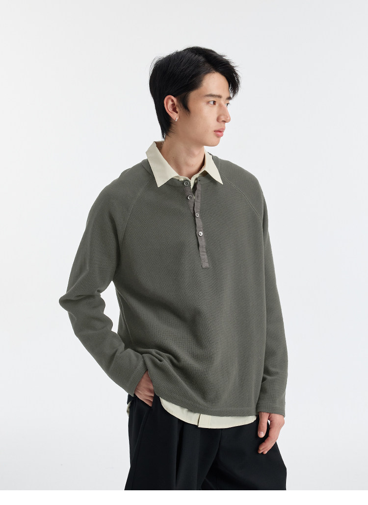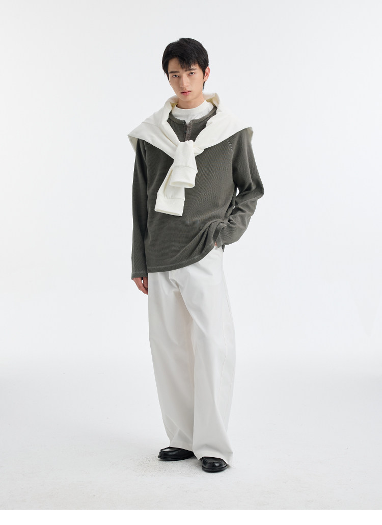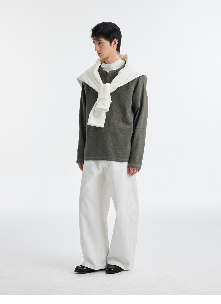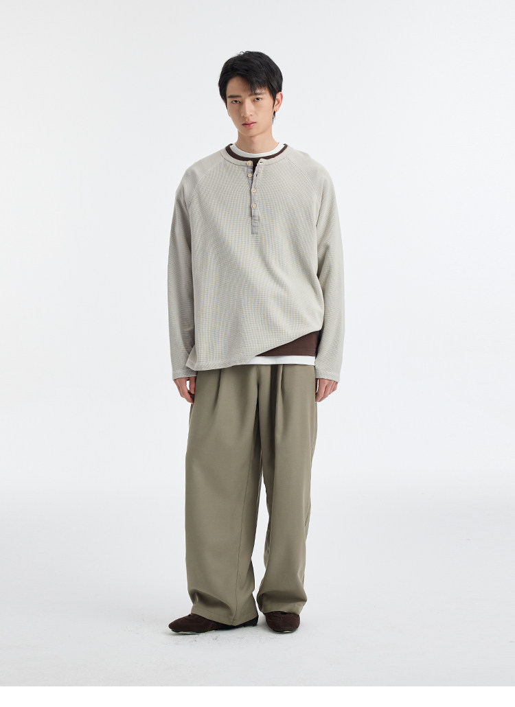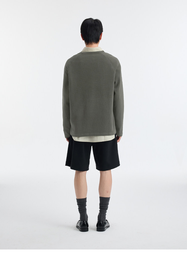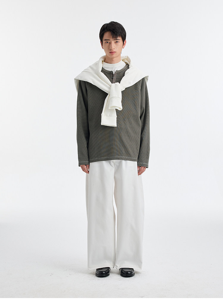 BUTTBILL Henry Neck Waffle Long Sleeve Sweater