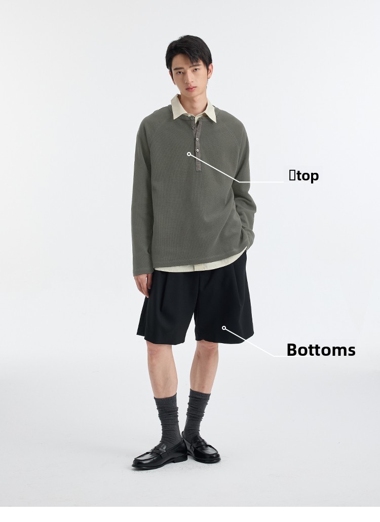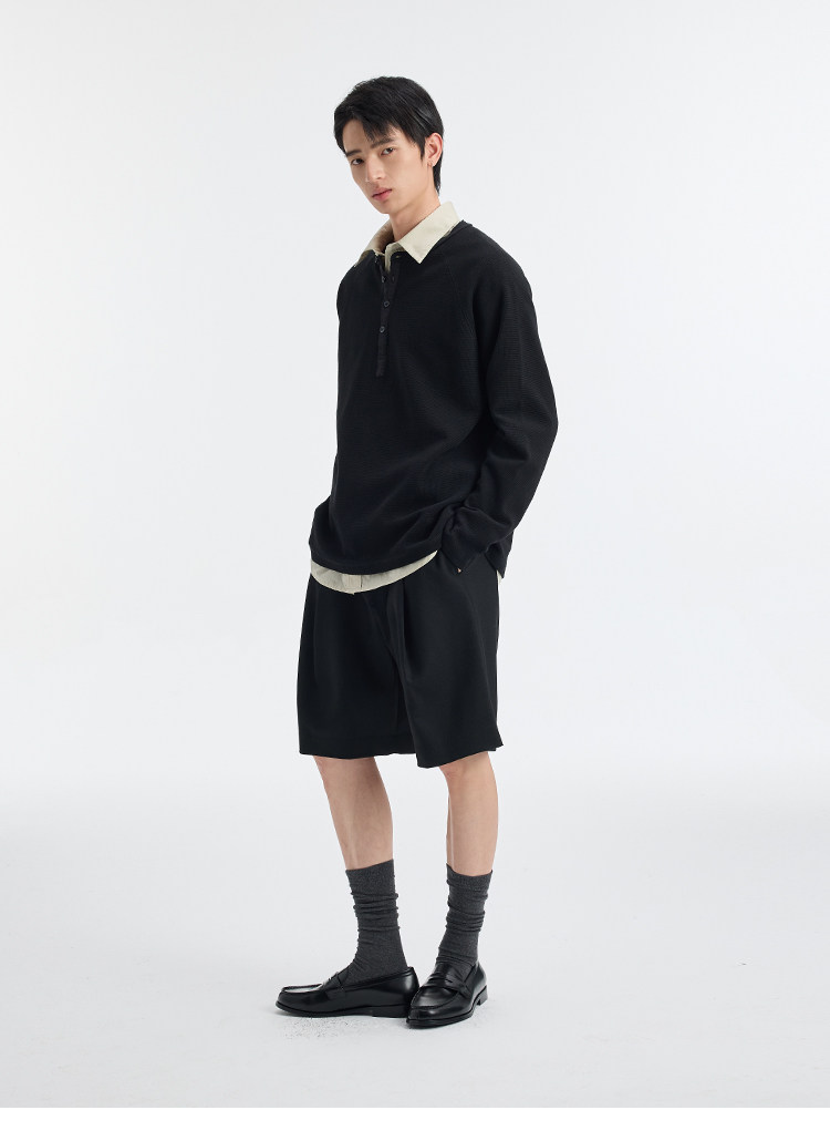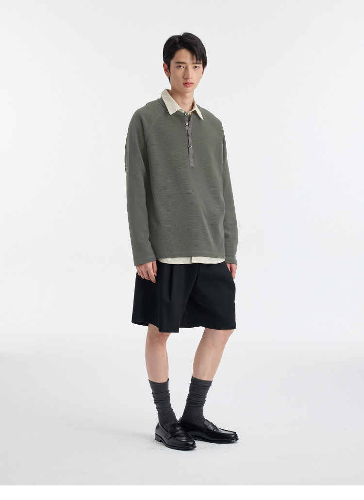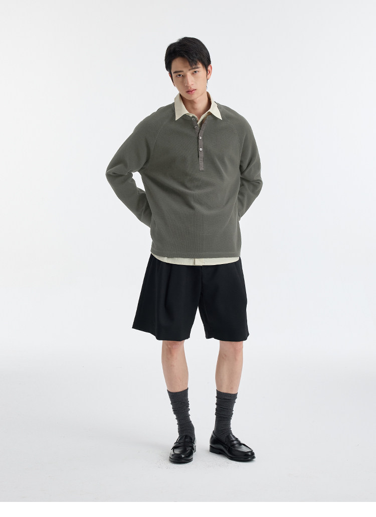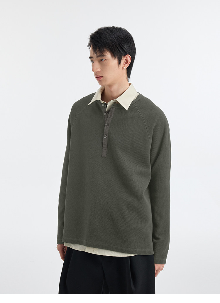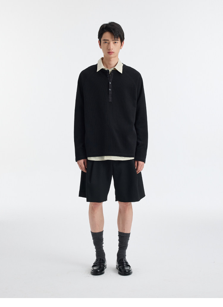 BUTTBILL Henry Neck Waffle Long Sleeve Sweater
