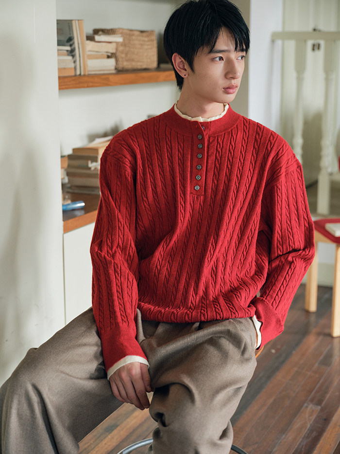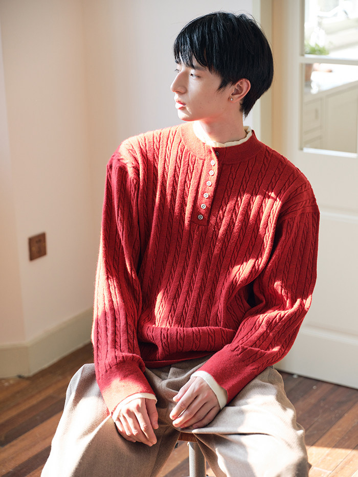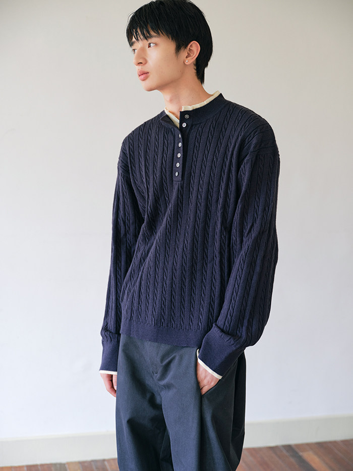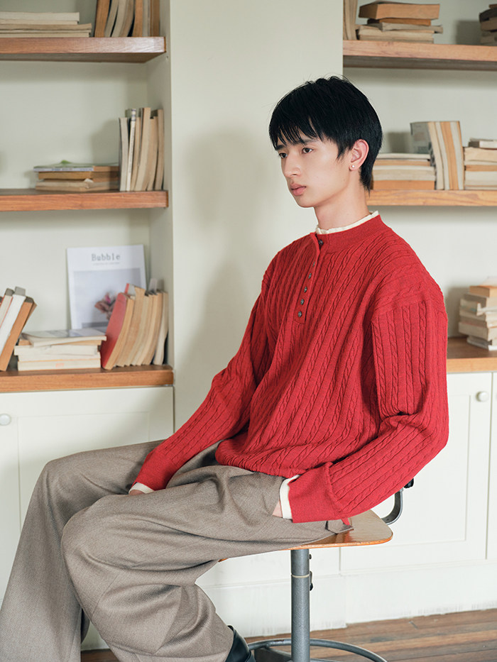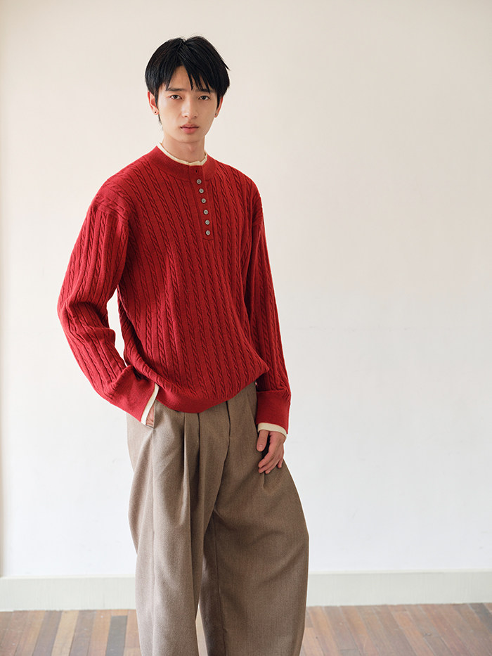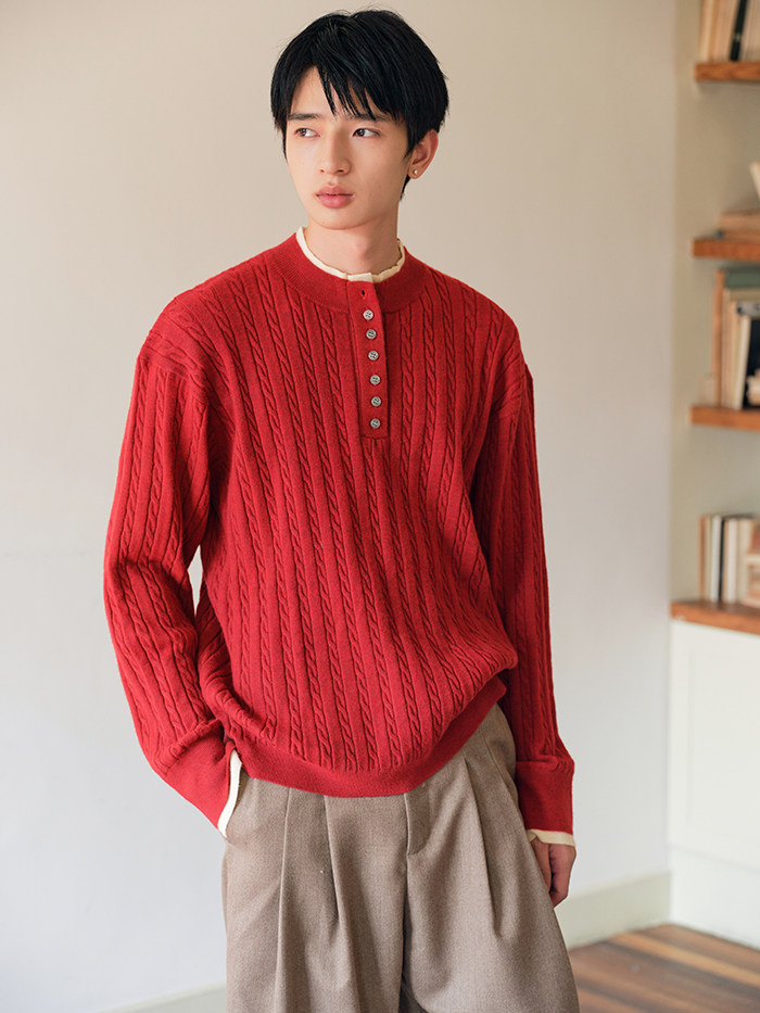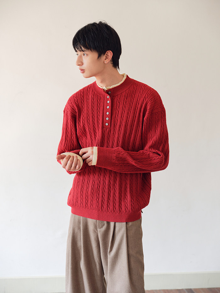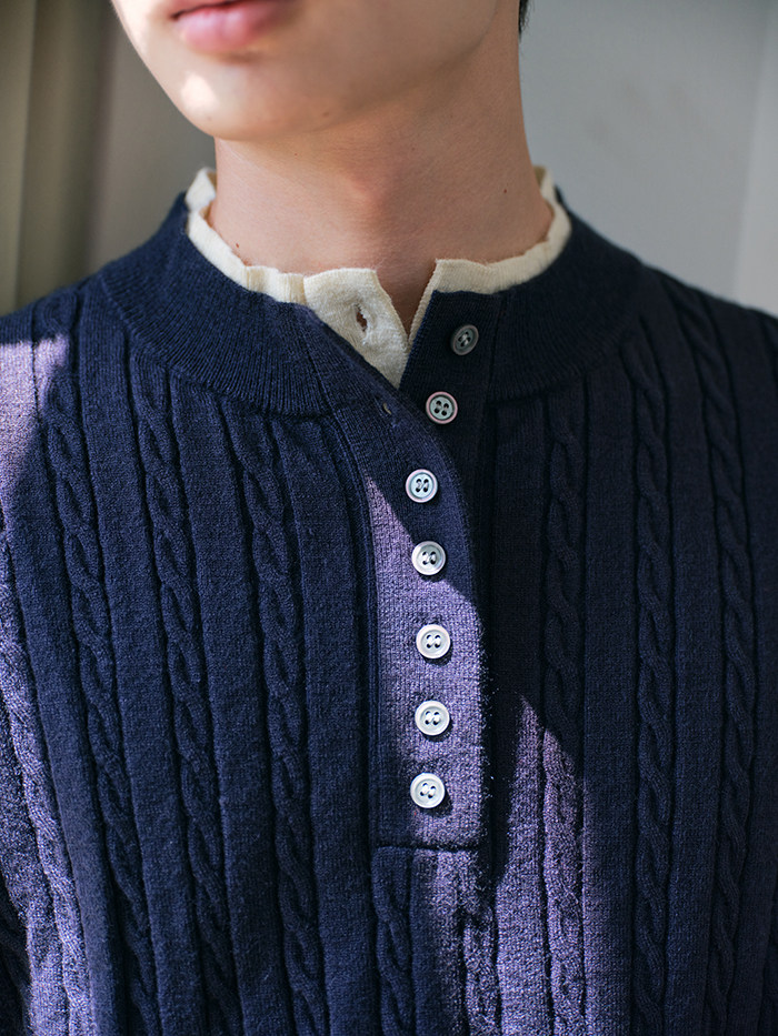 CARPEM Retro Contrasting Twisted Stand-up Collar Fake Two-piece Polo-neck Sweater