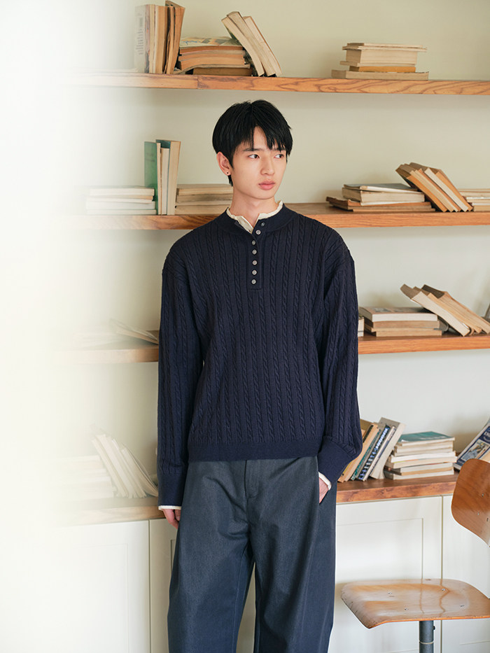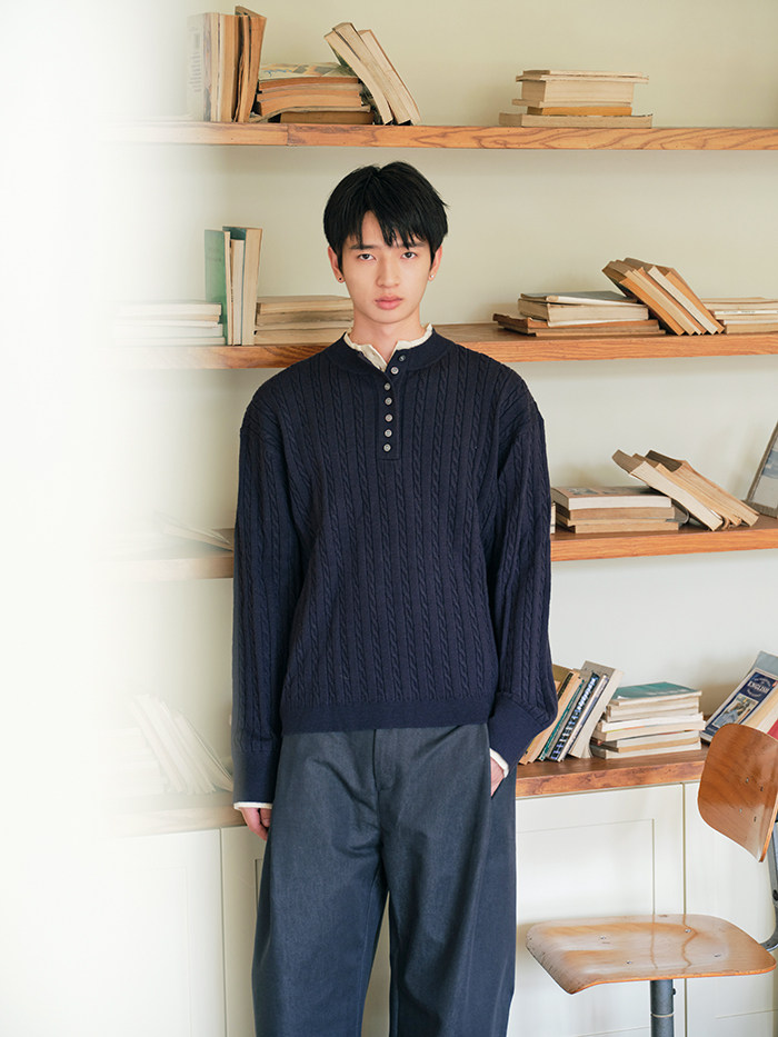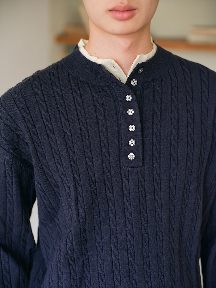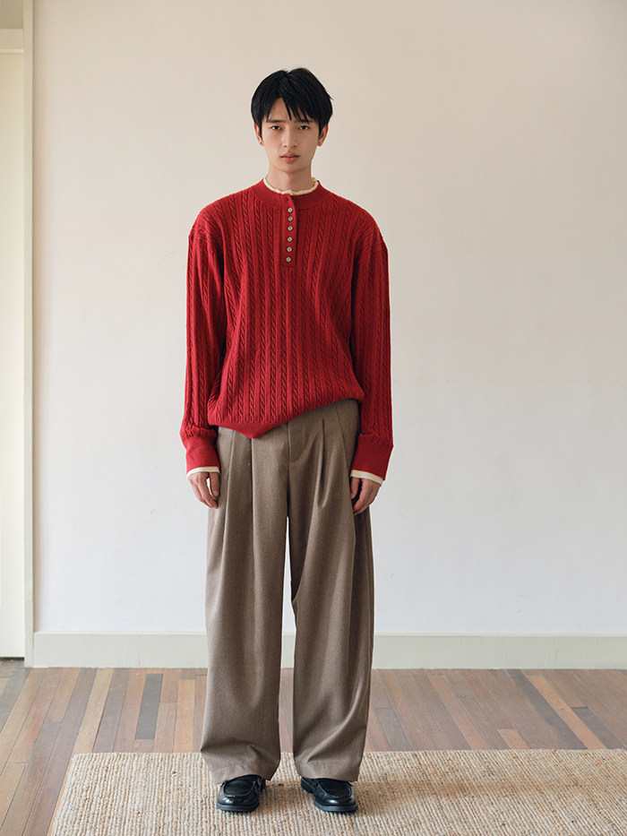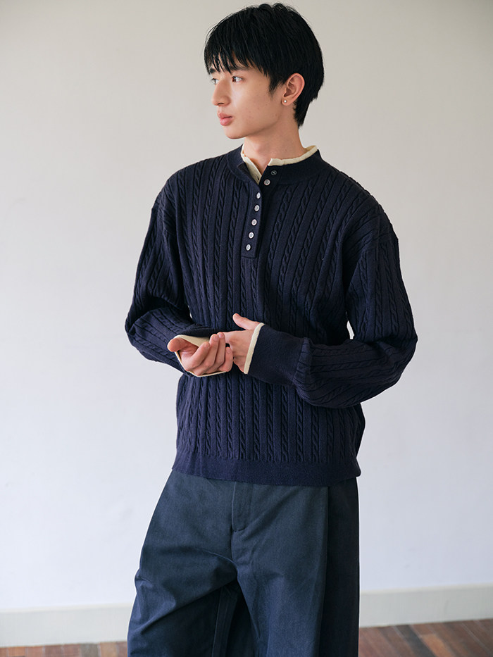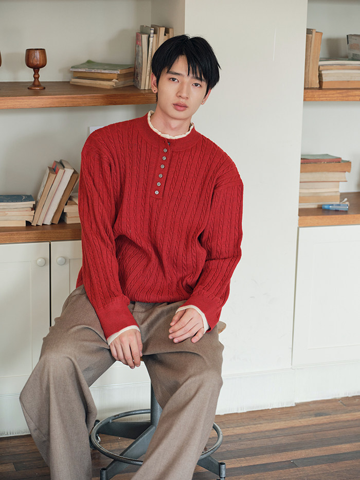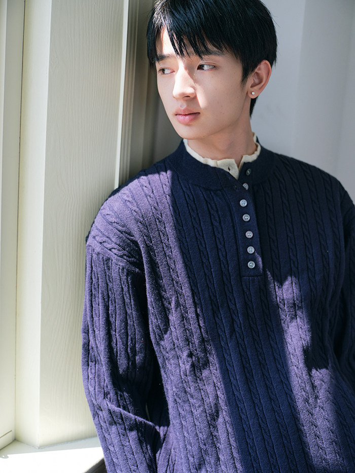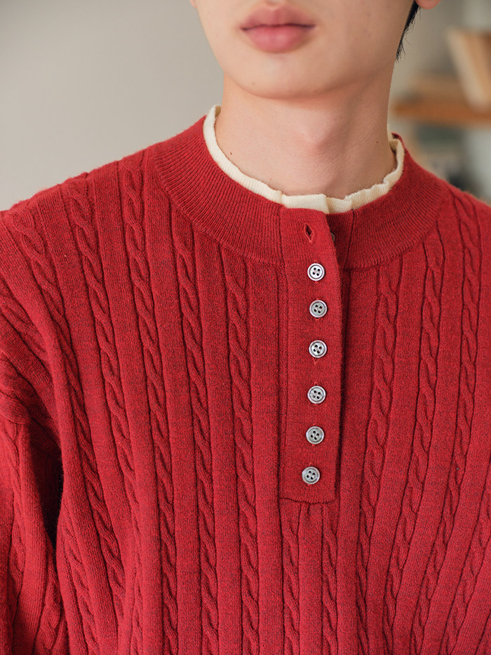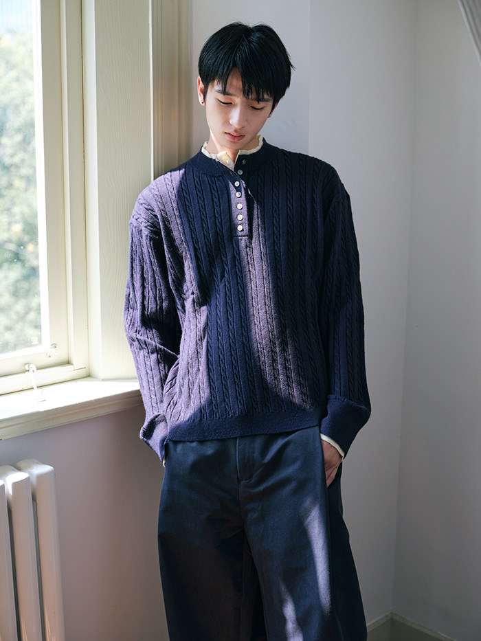CARPEM Retro Contrasting Twisted Stand-up Collar Fake Two-piece Polo-neck Sweater