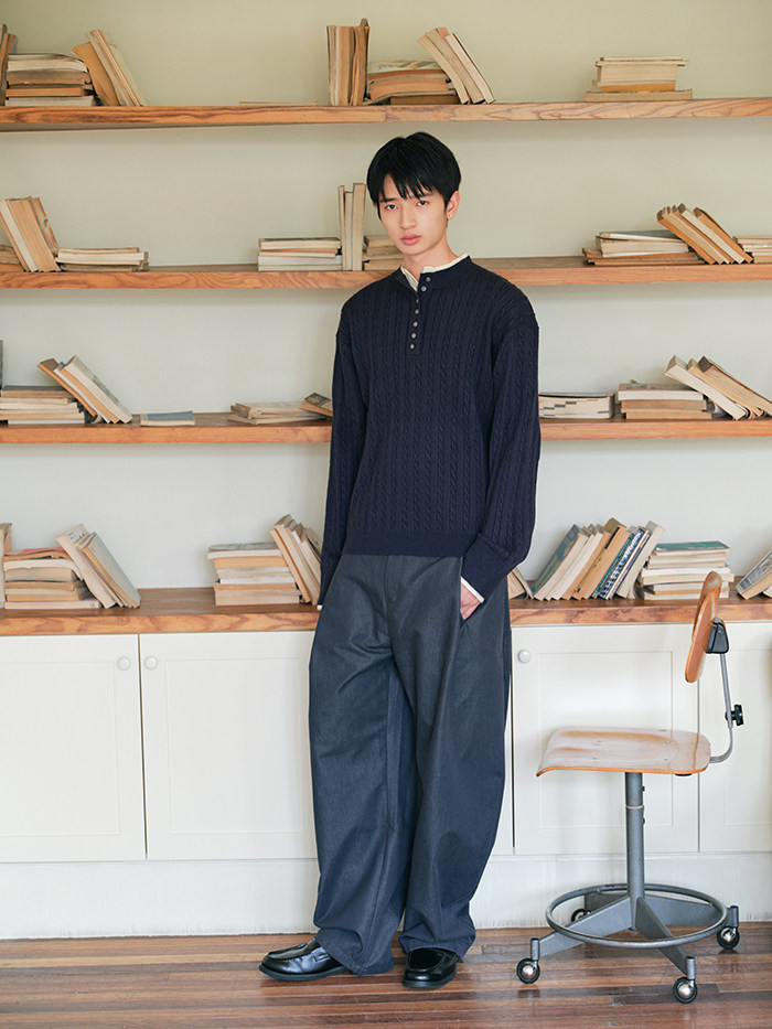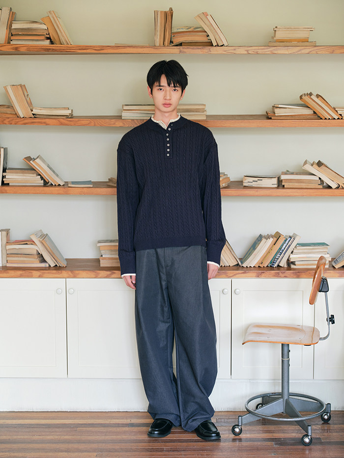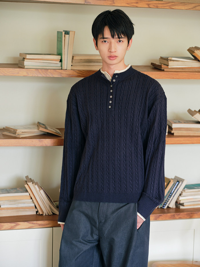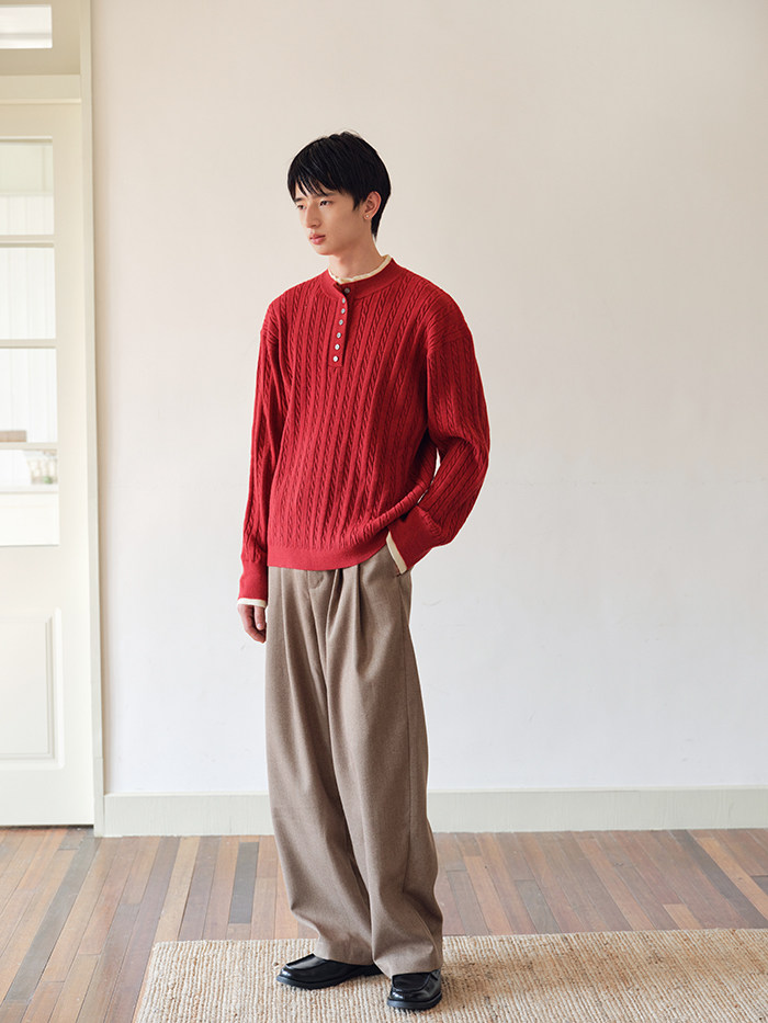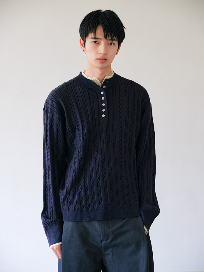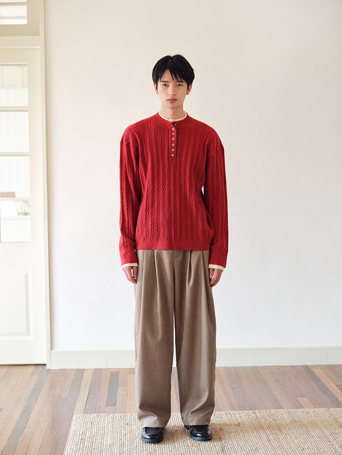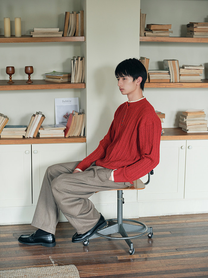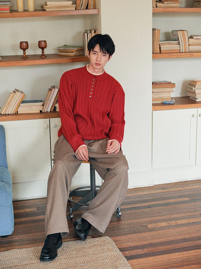 CARPEM Retro Contrasting Twisted Stand-up Collar Fake Two-piece Polo-neck Sweater