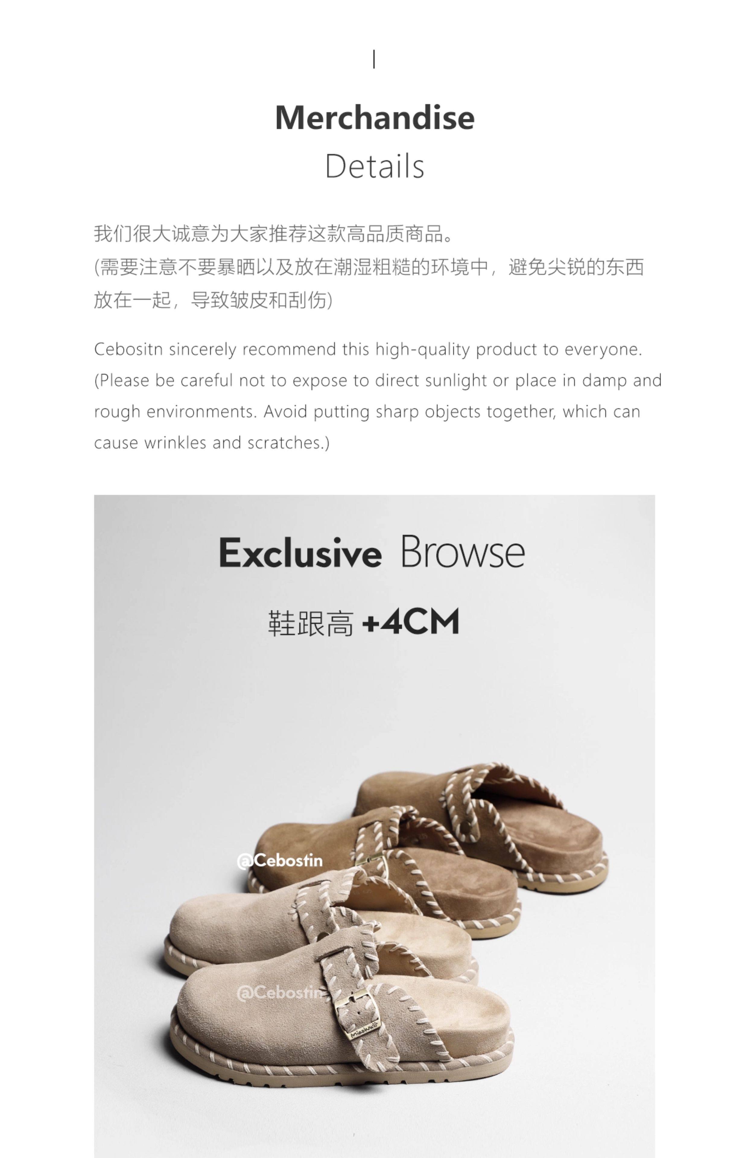Cebostin 4CM Heightened Version Anti-velvet Handmade Thick-soled Birkenstock Half Slippers