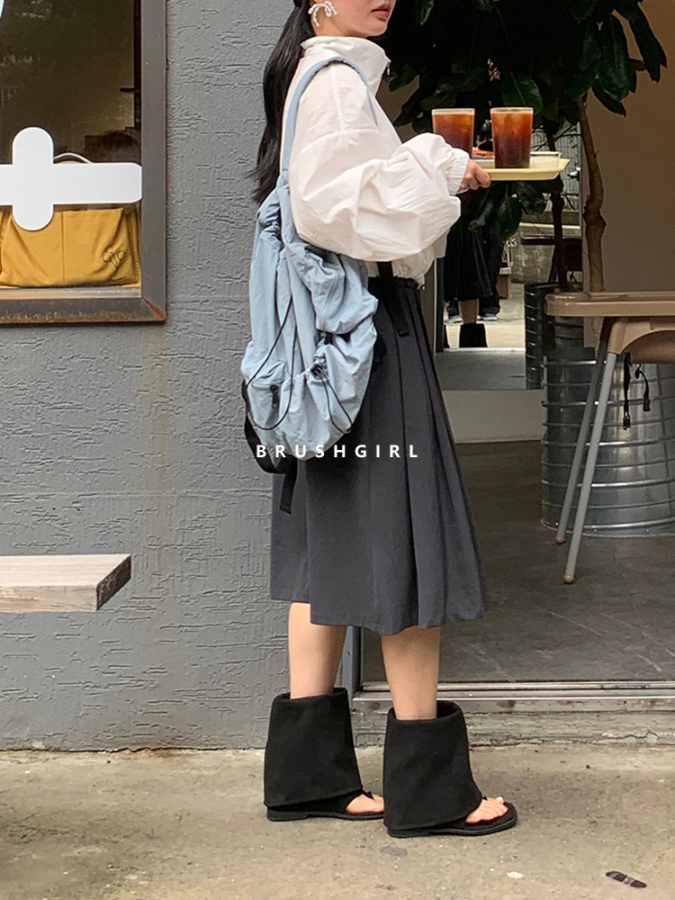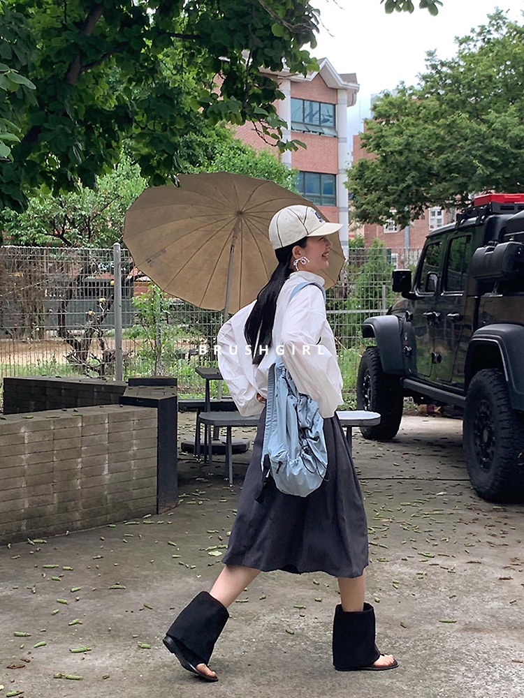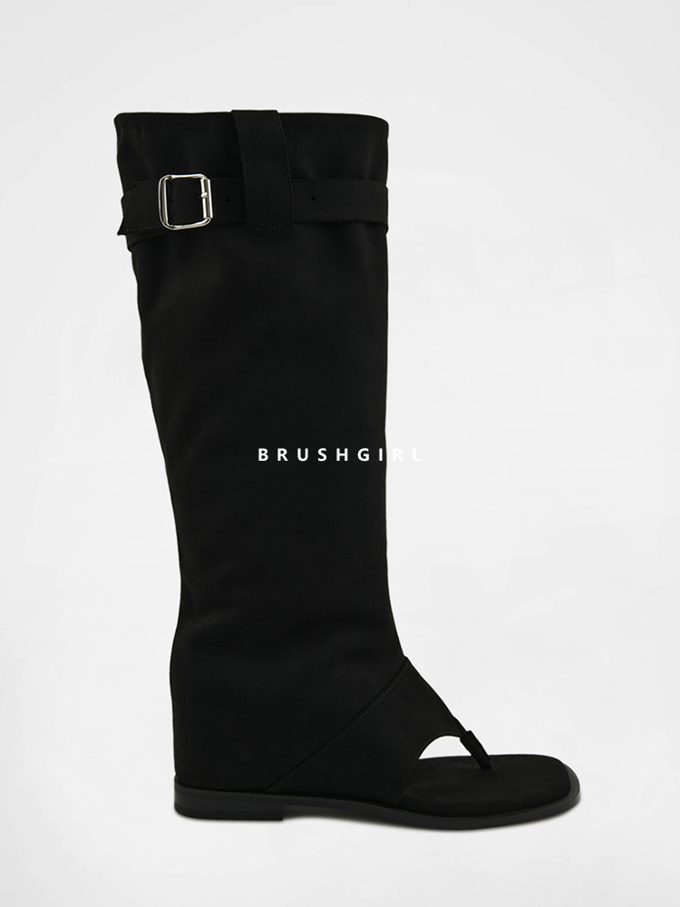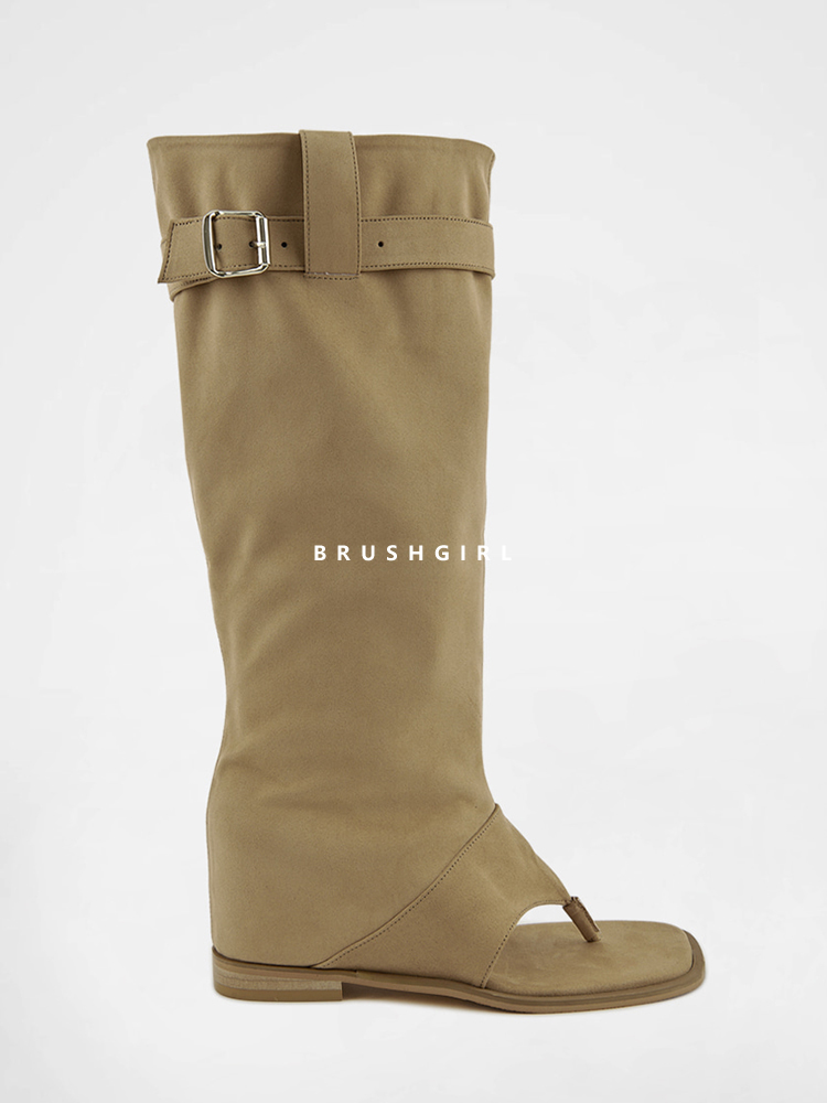 CHILIGIRL Open-toed Herringbone Cool Boots Two-wear Stacked Pants Tube Boots