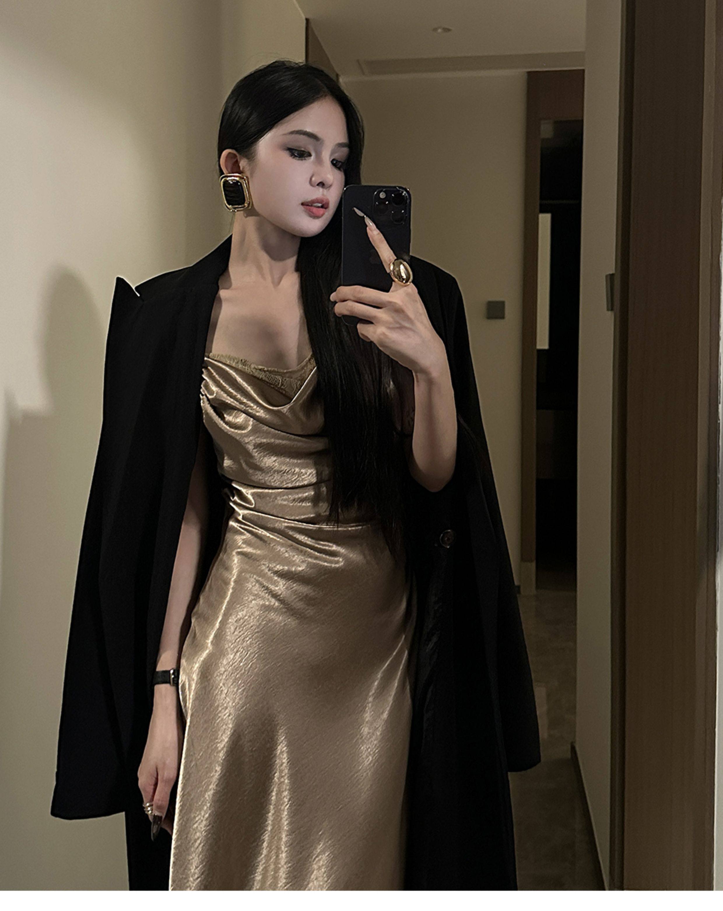 CHUYUQI Temperament High-grade Lace Splicing Waist Suspender Skirt