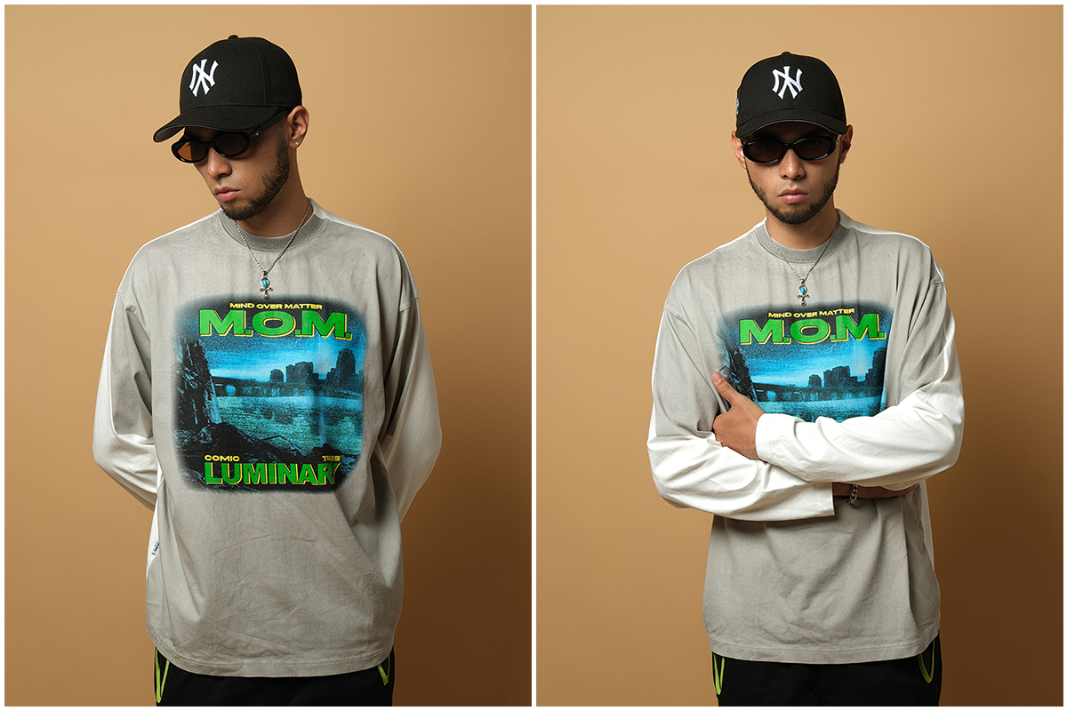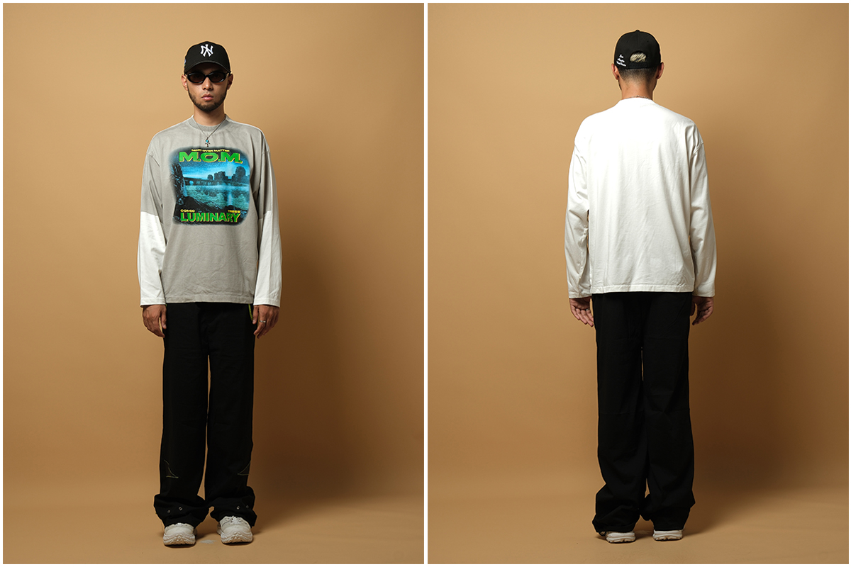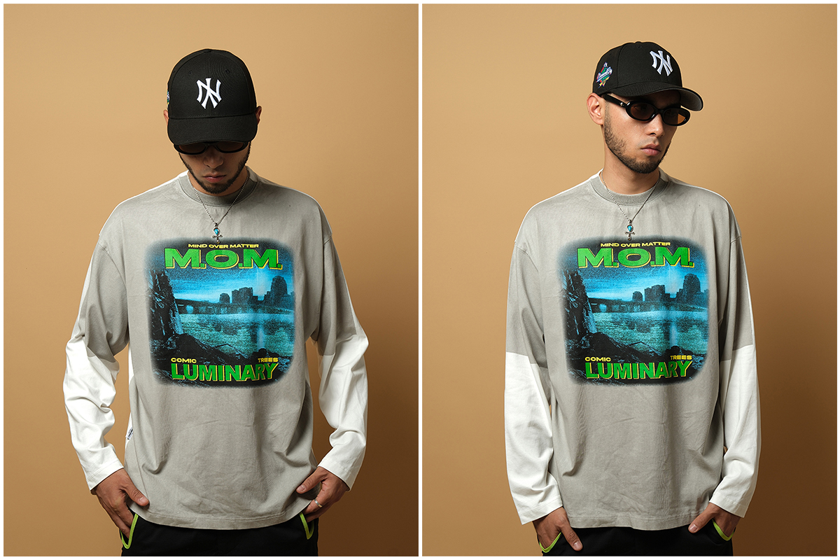 ComicTree C.t splicing fake two-piece Long Sleeve Tee