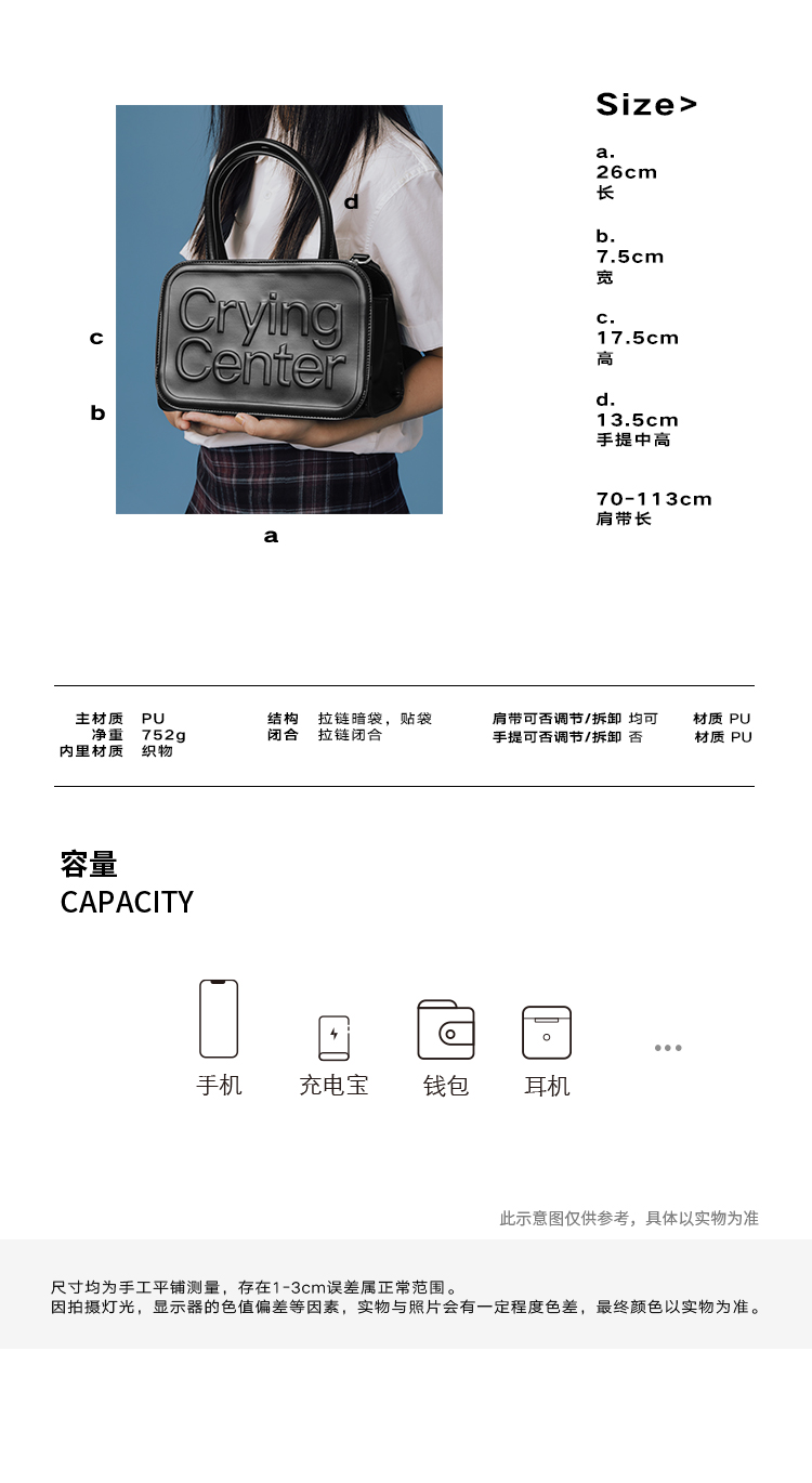 CryingCenter Black Biscuit Boston Bag Crossbody Shoulder Carrying Crying Center