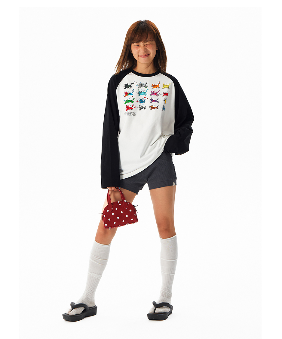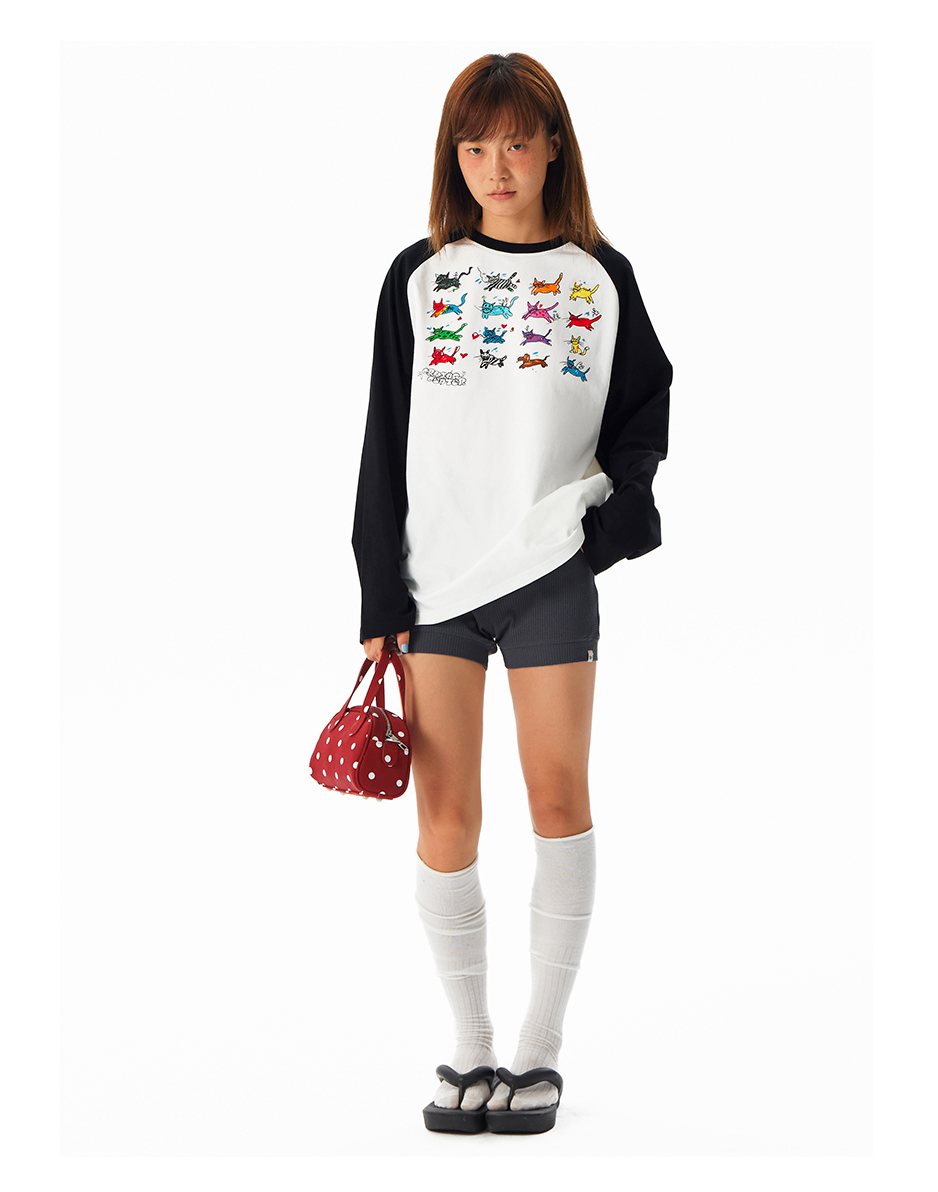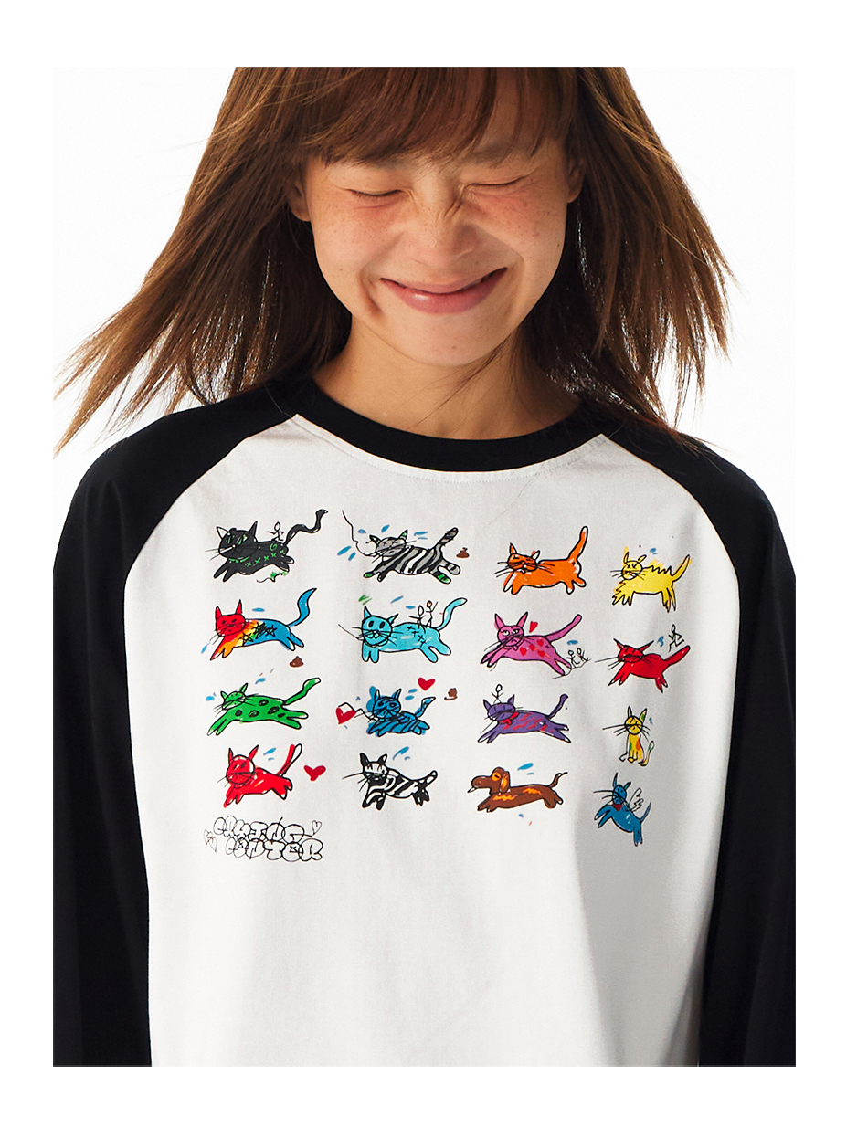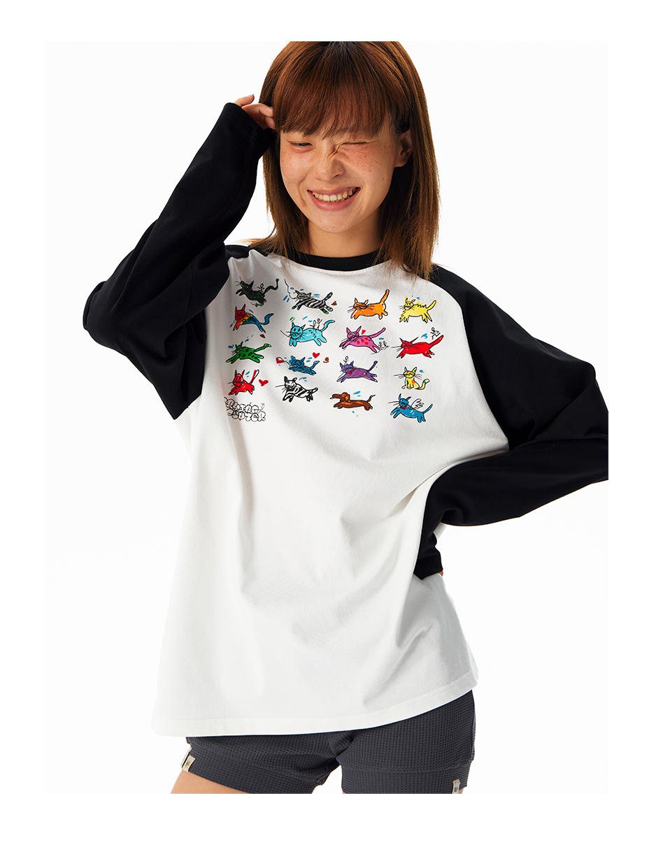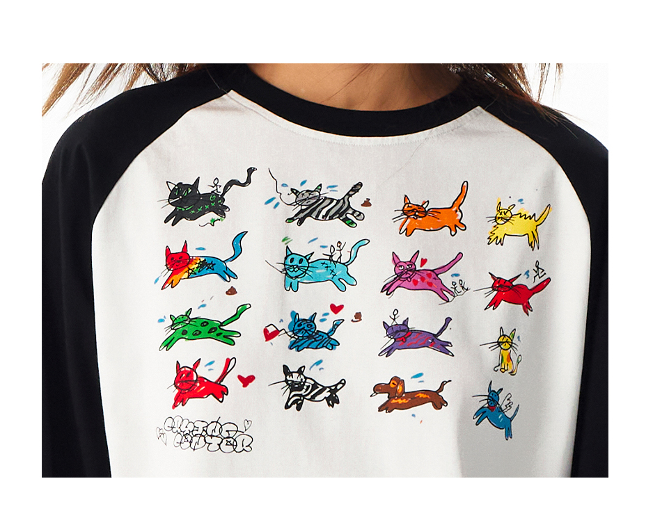 CryingCenter Cute Kitten Hand-painted Shoulder Ruffle Long Sleeve