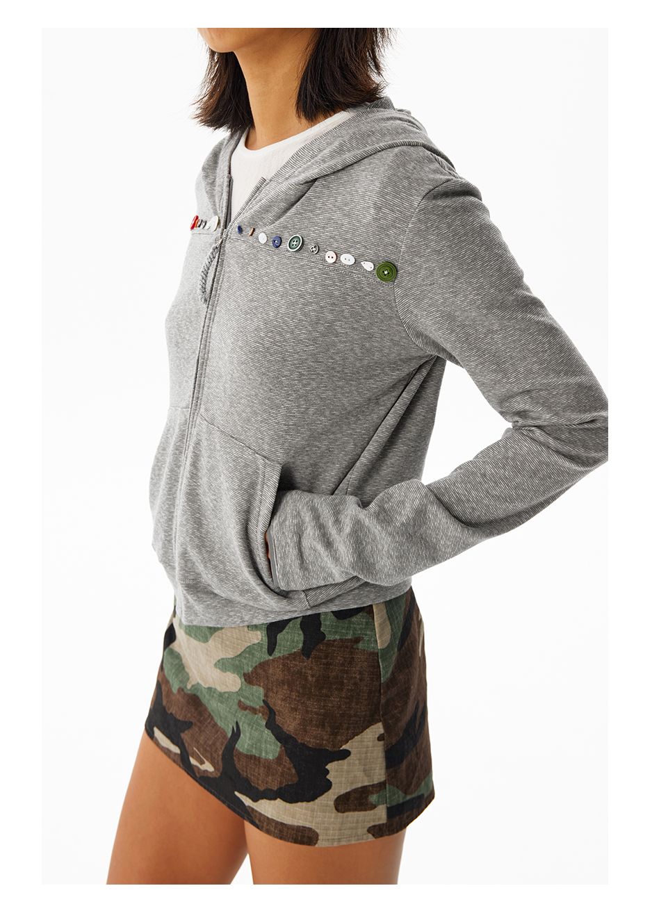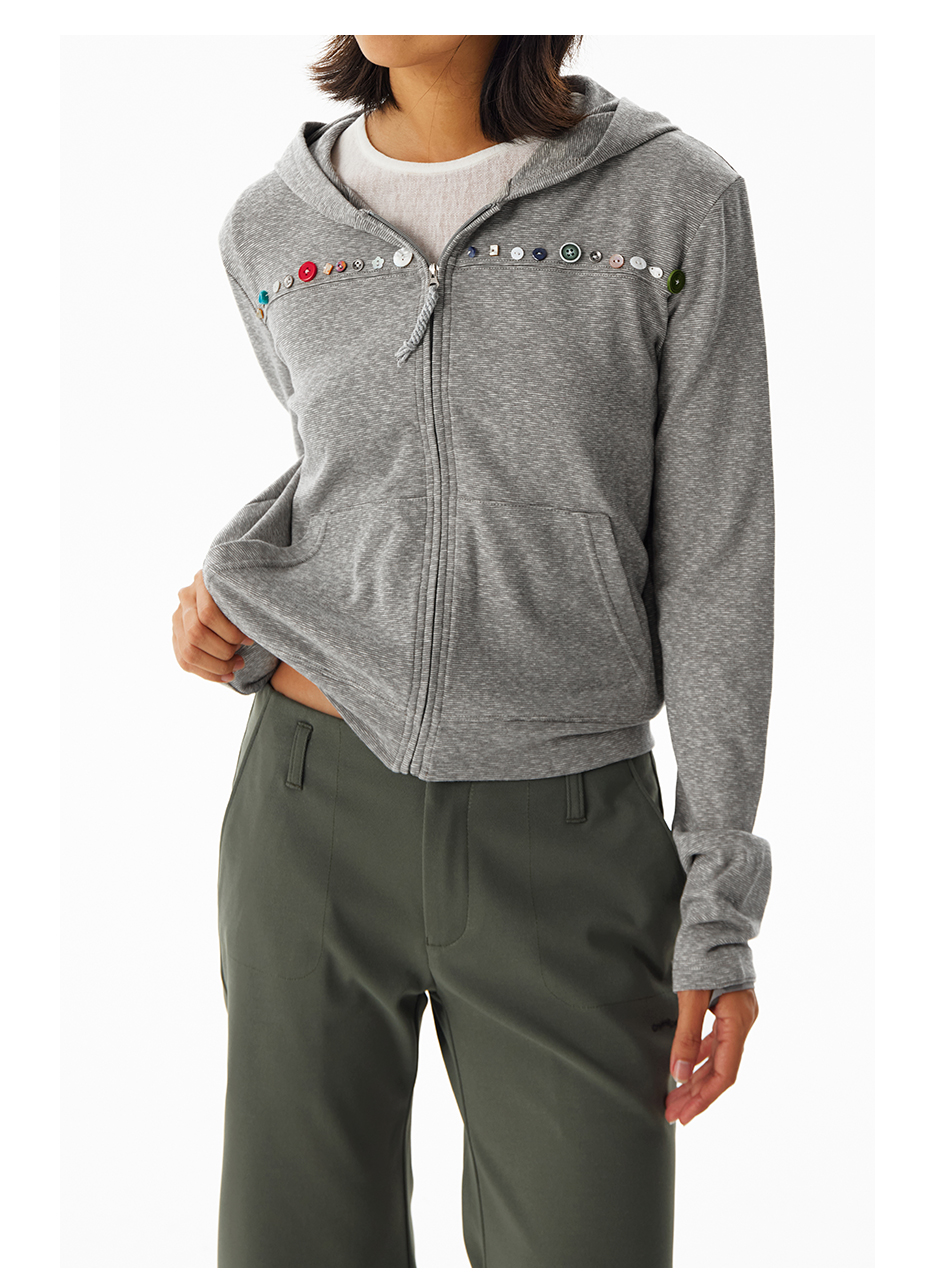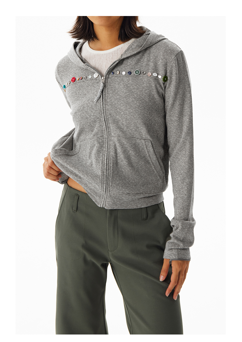 CryingCenter Flower Fit Multi-Button Hooded Cardigan