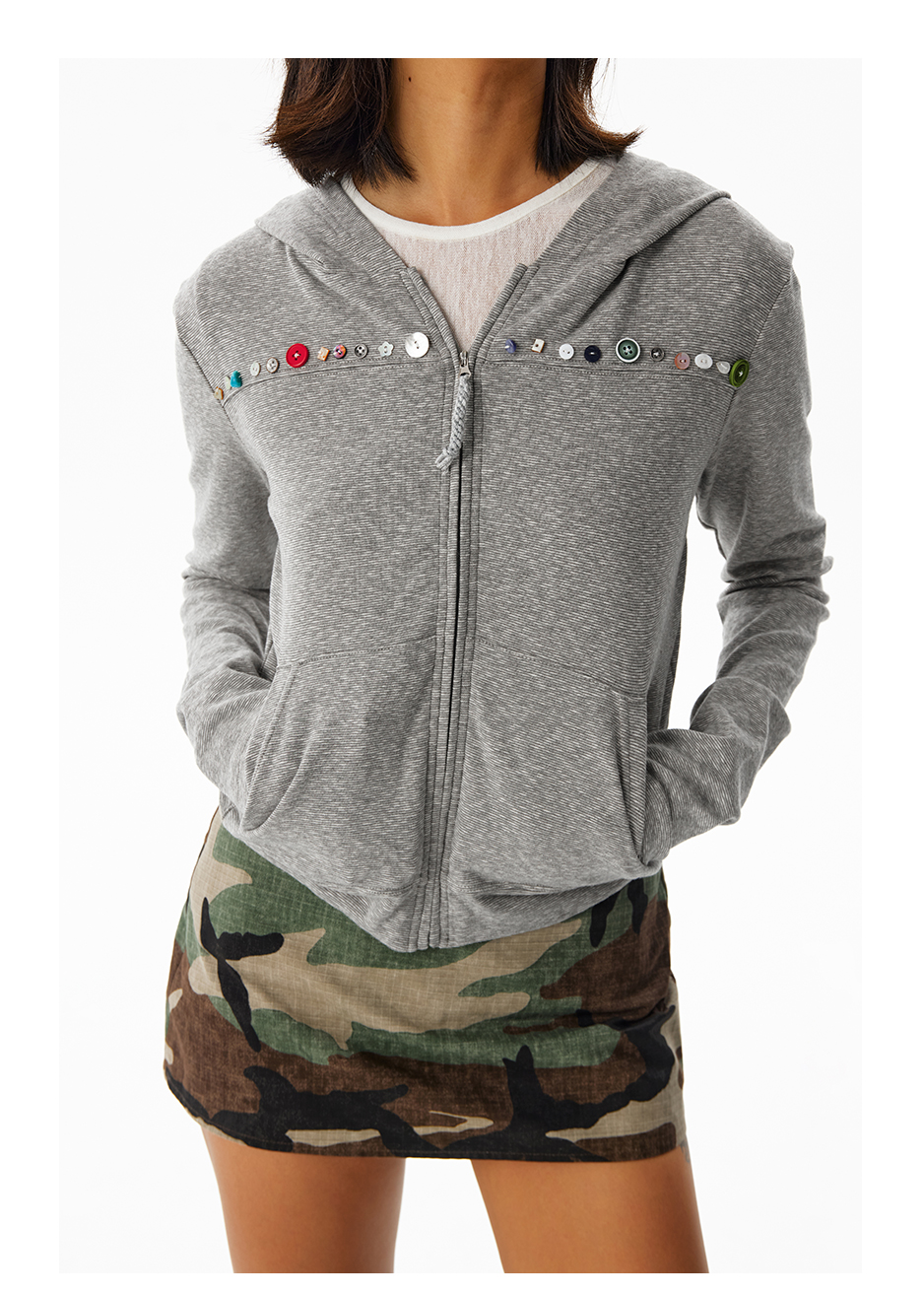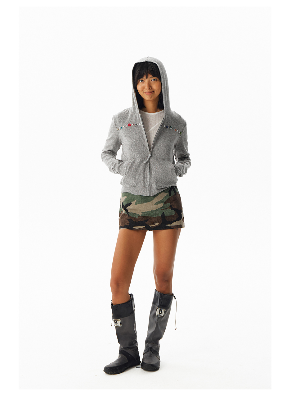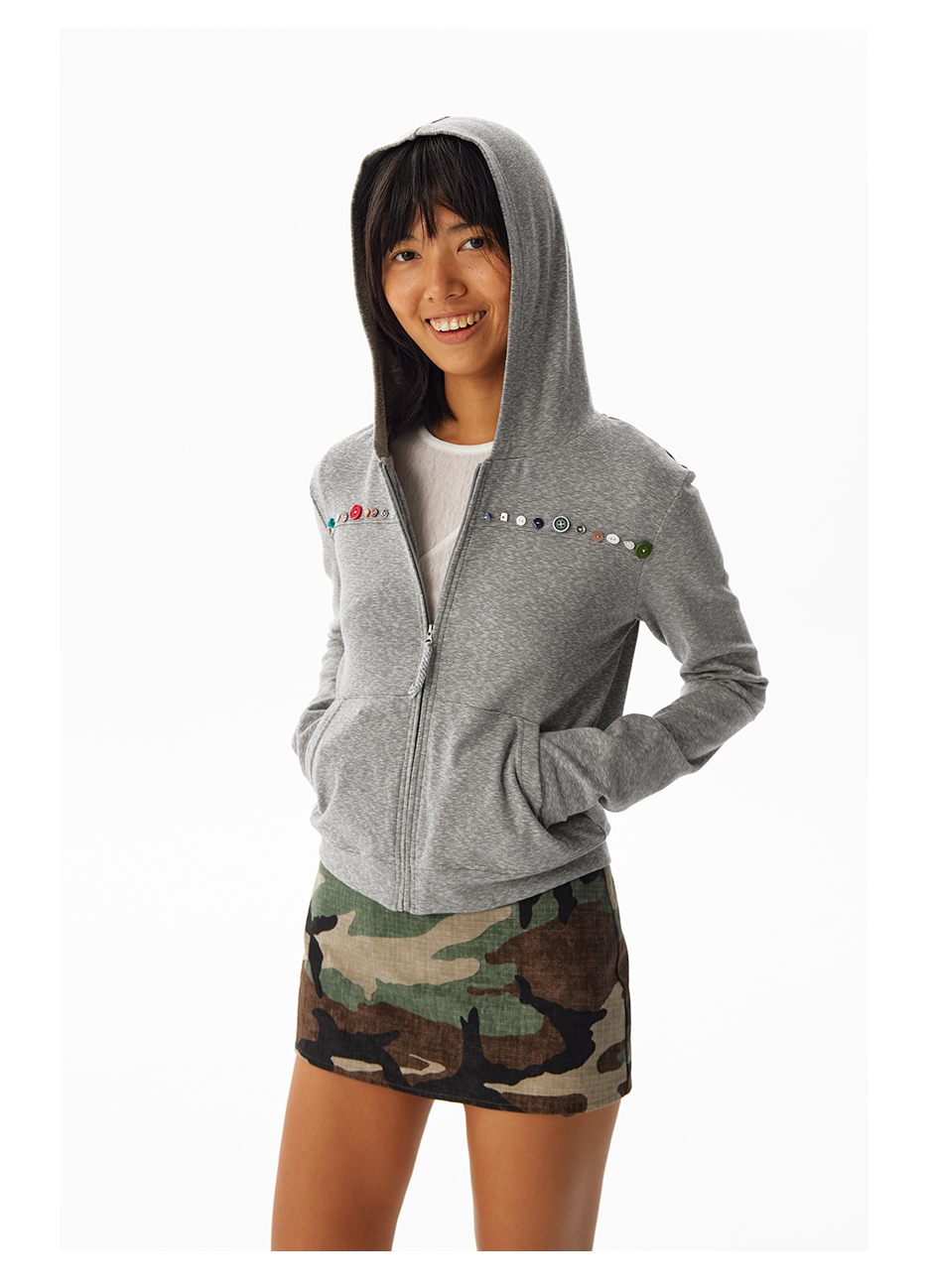 CryingCenter Flower Fit Multi-Button Hooded Cardigan