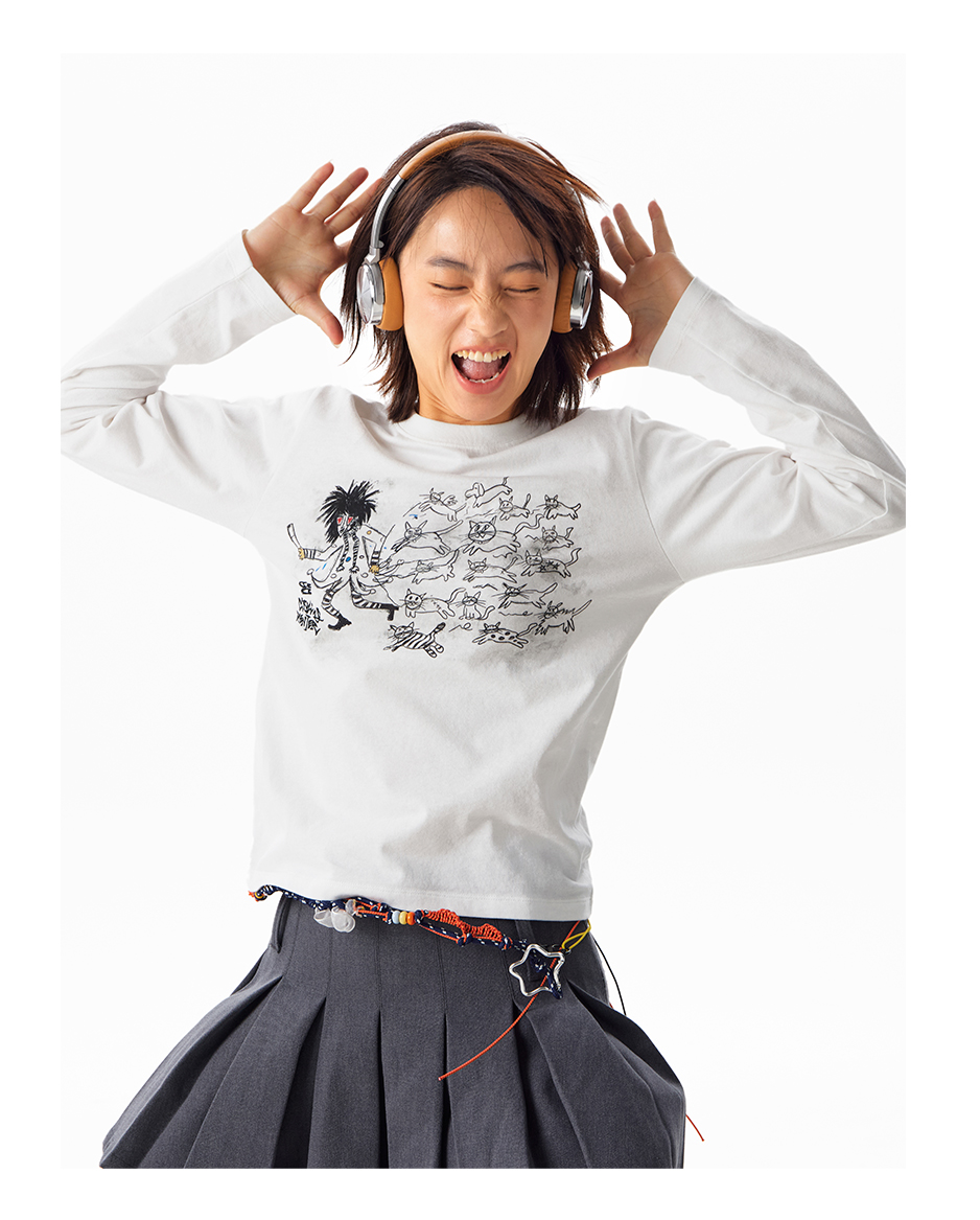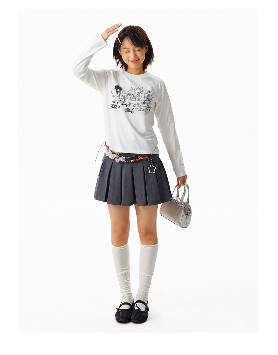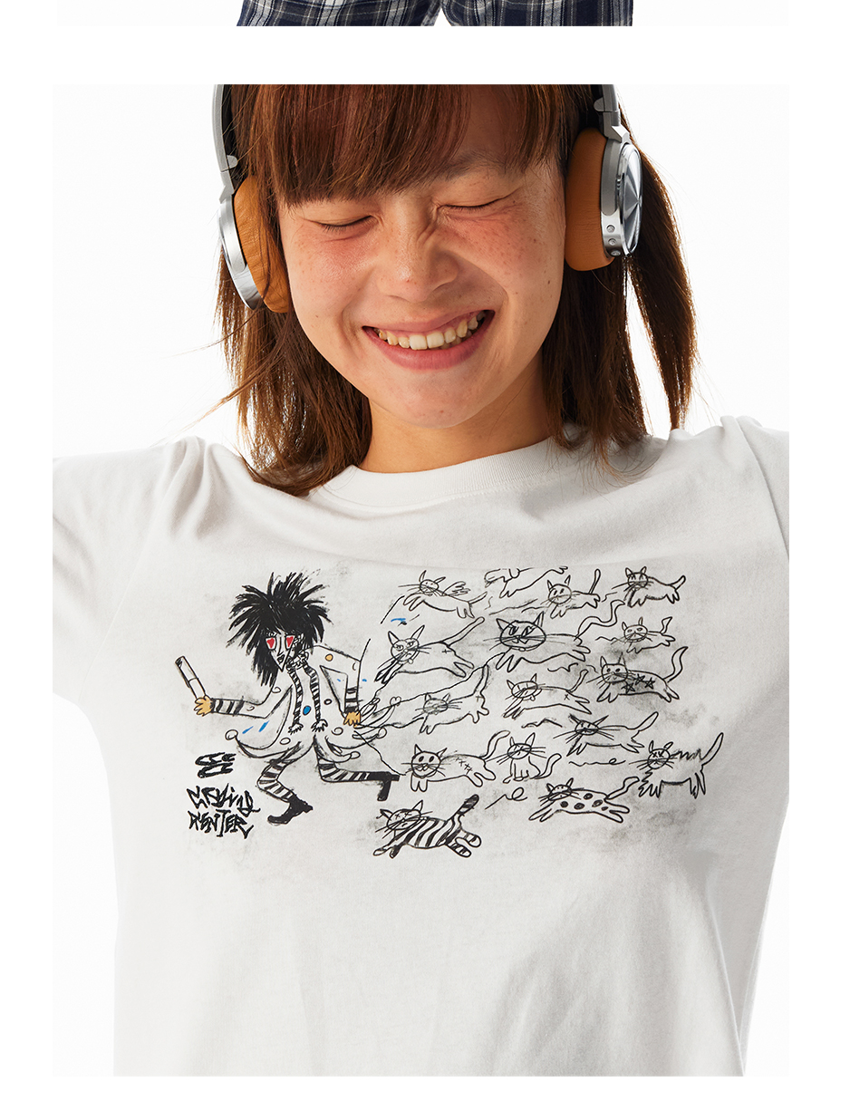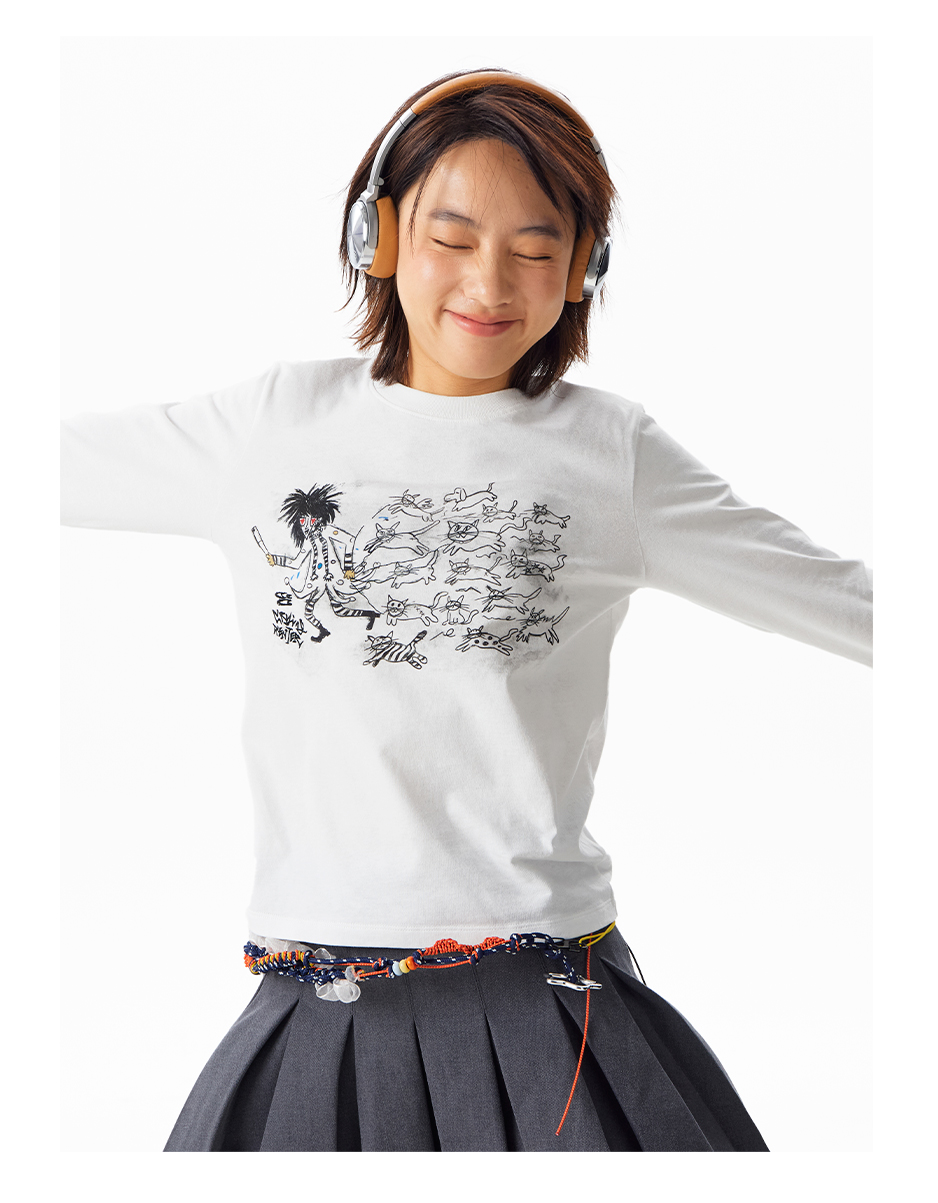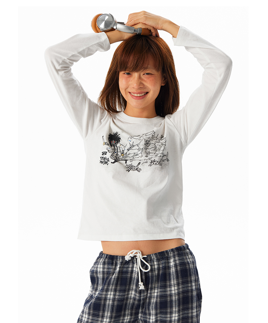 CryingCenter Kitten Relay Hand Painted Front Shoulder Slim Long Sleeve
