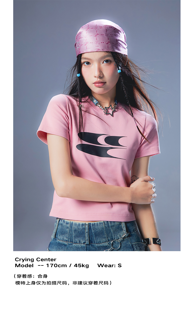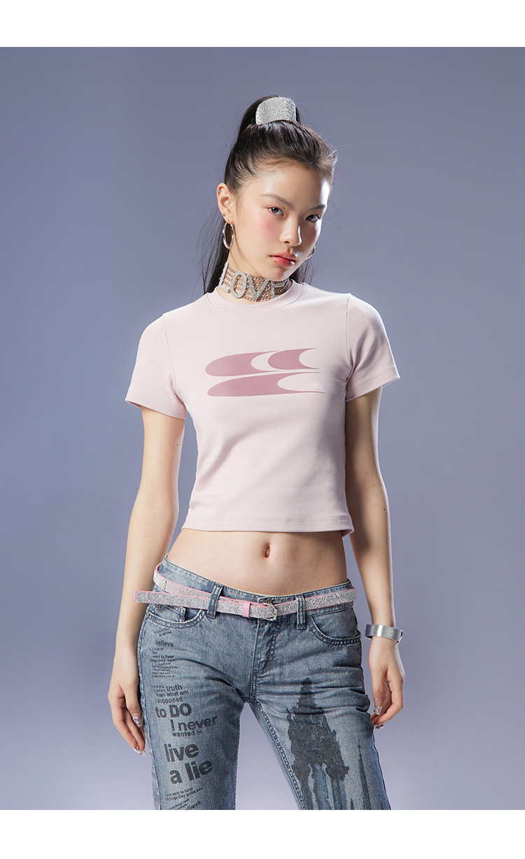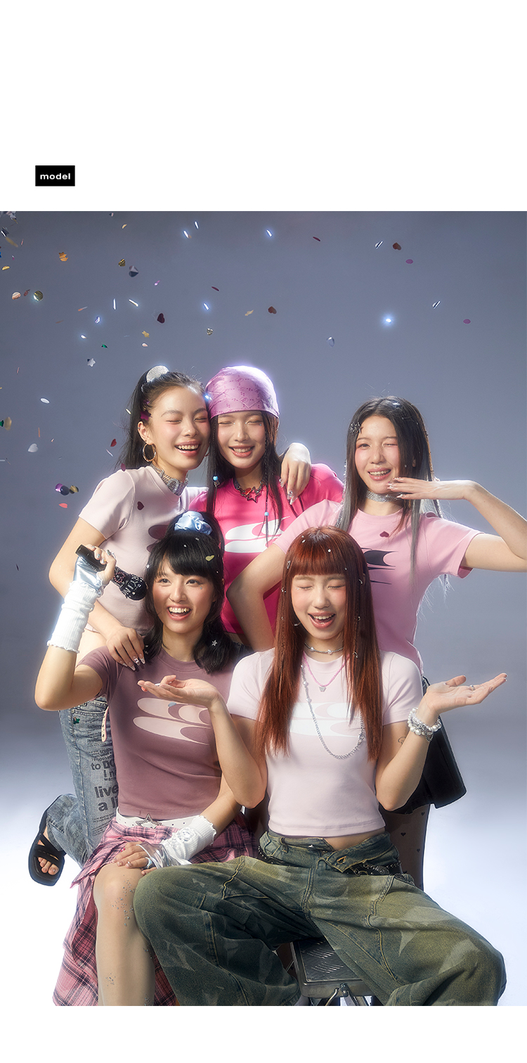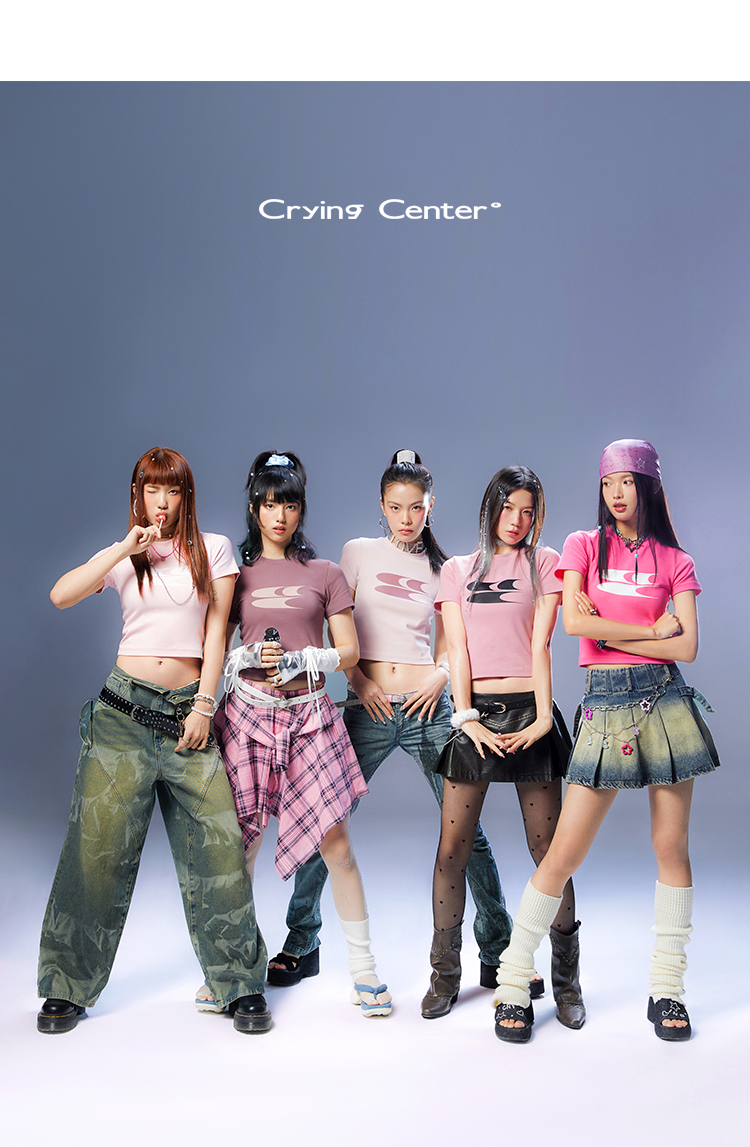 CryingCenter Y2k Millennial Babes Pink American Retro Crew Neck Slim Crop Top