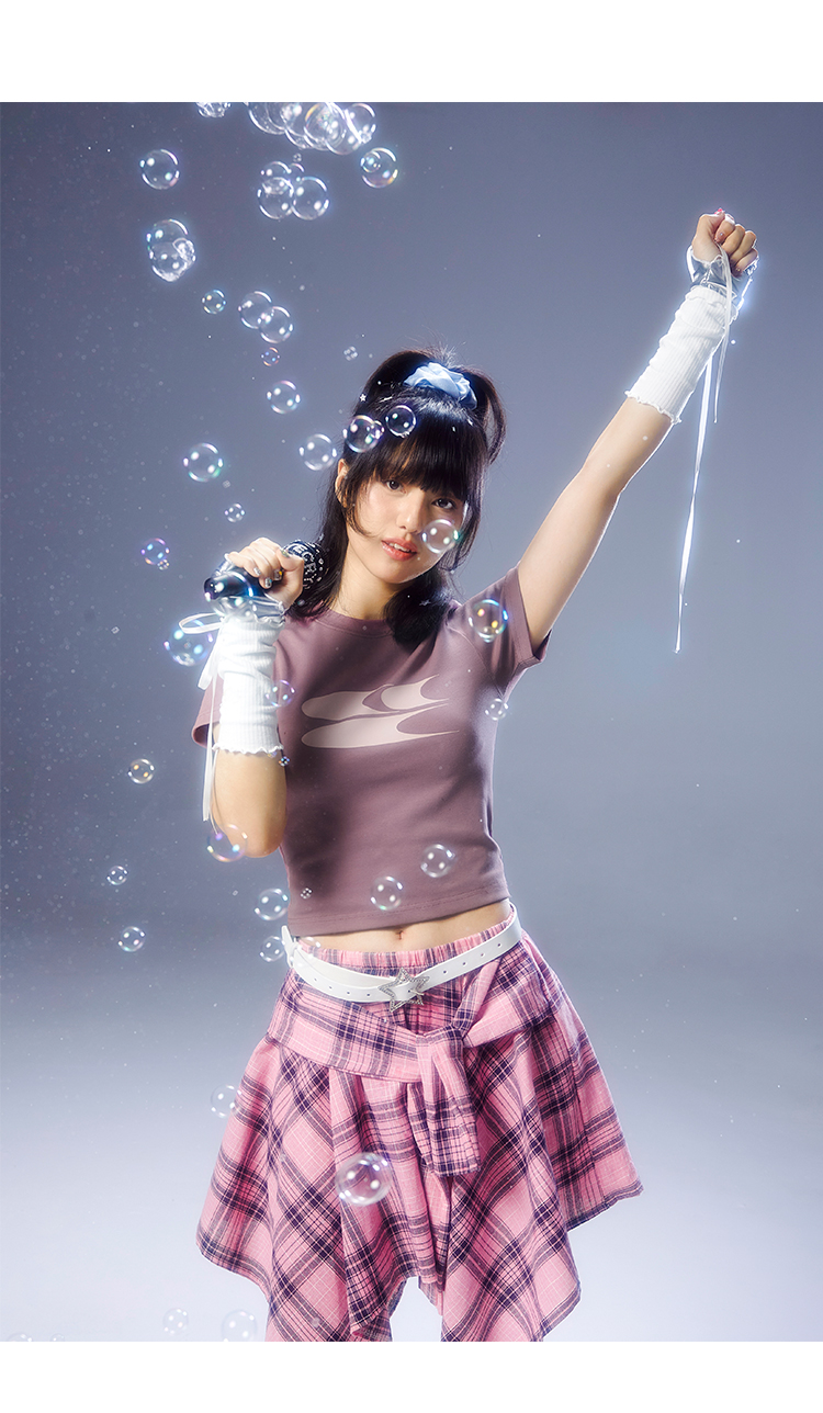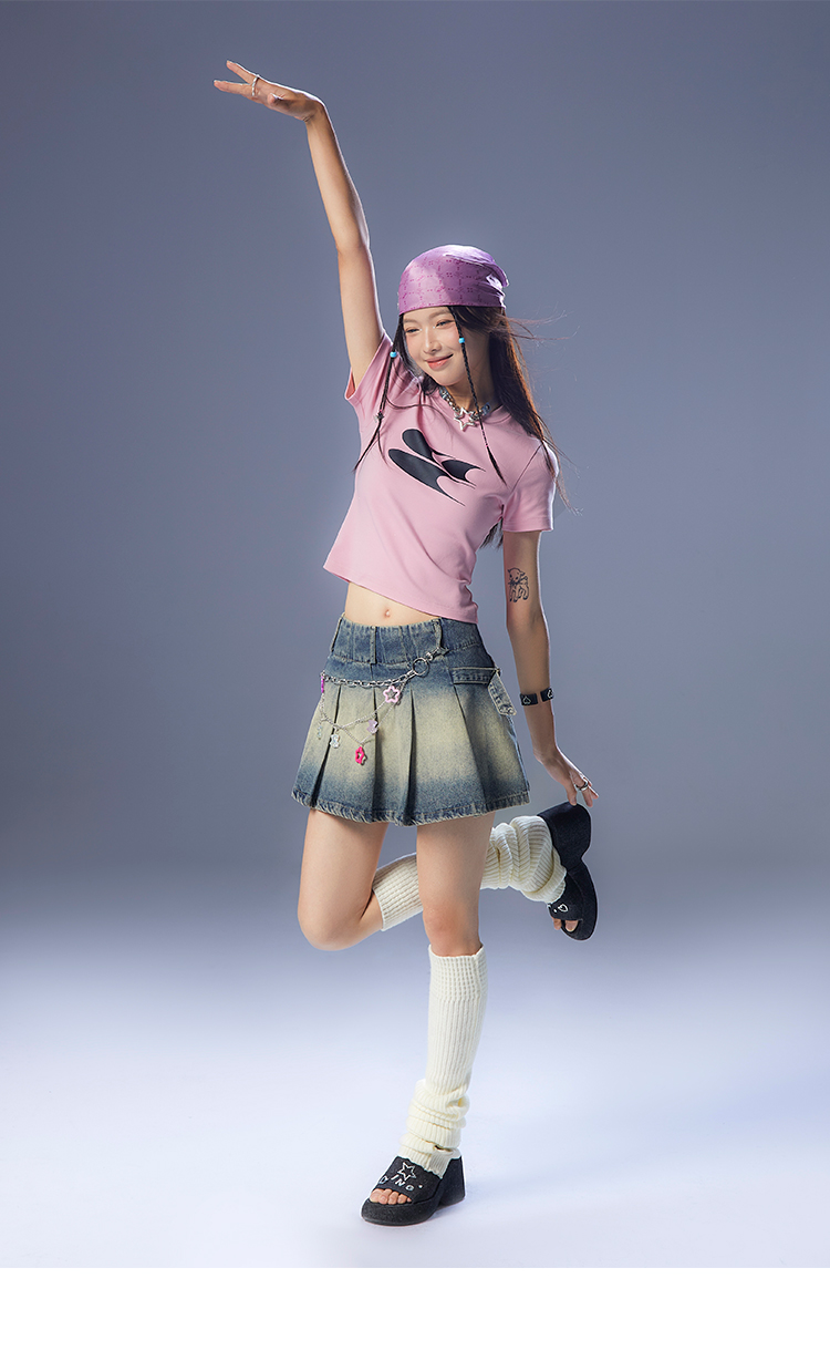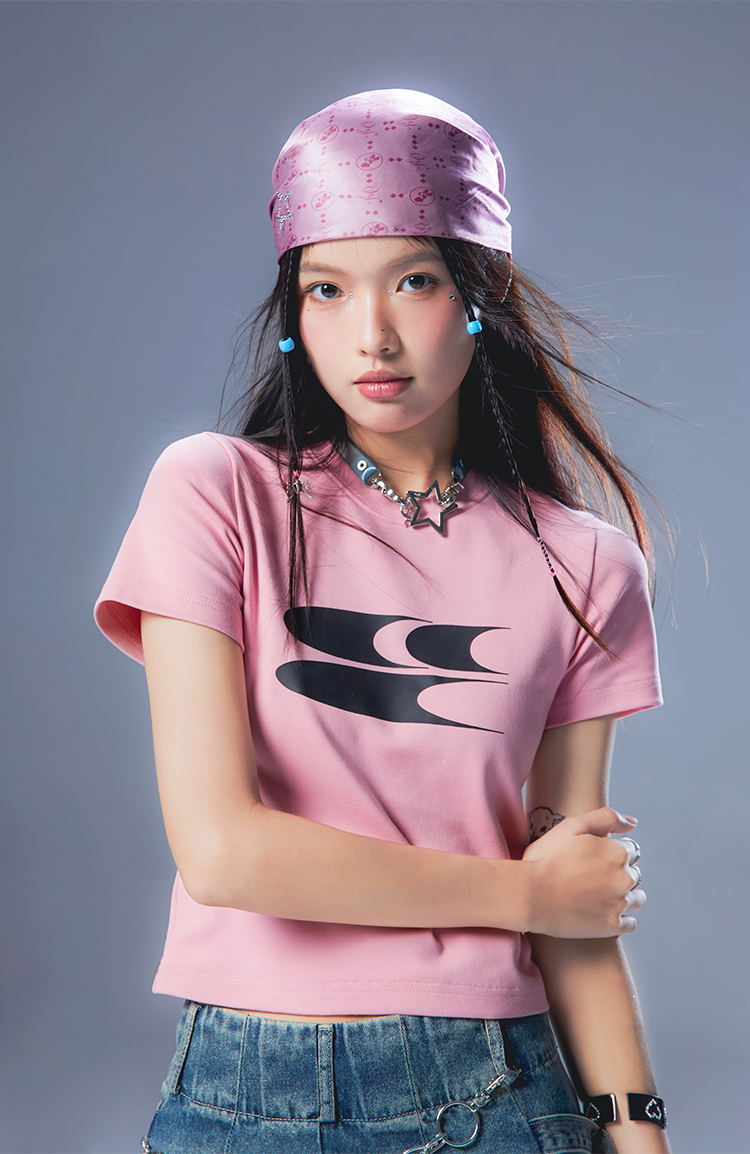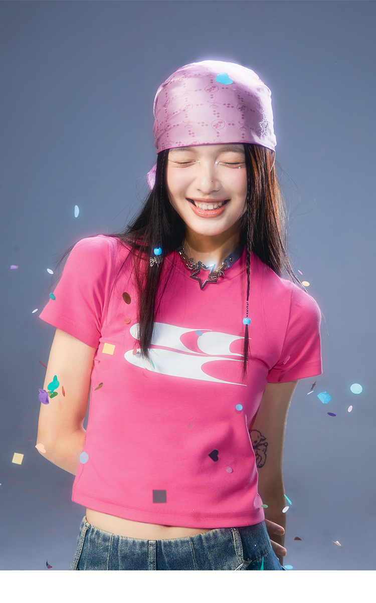 CryingCenter Y2k Millennial Babes Pink American Retro Crew Neck Slim Crop Top