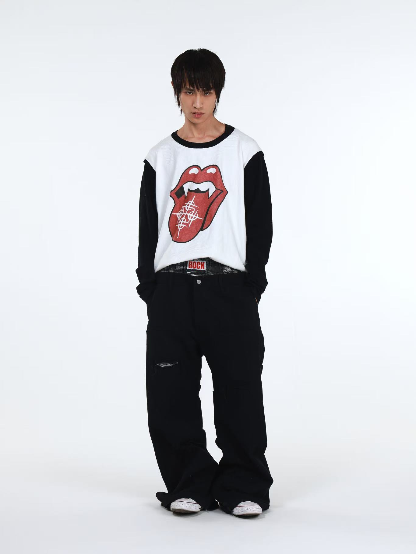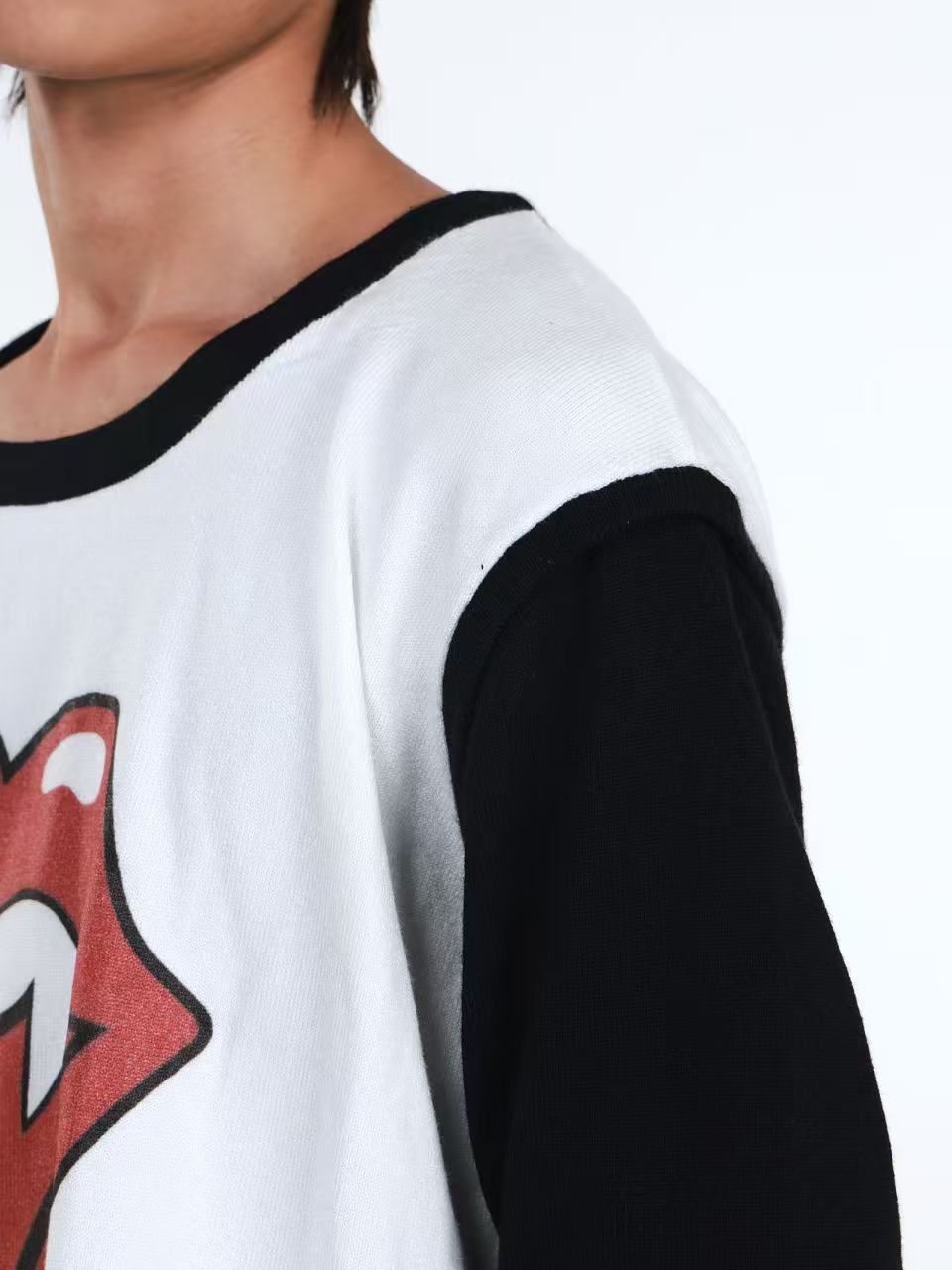 DETW Fun Spoof Tongue Contrasting Knitted Sweater