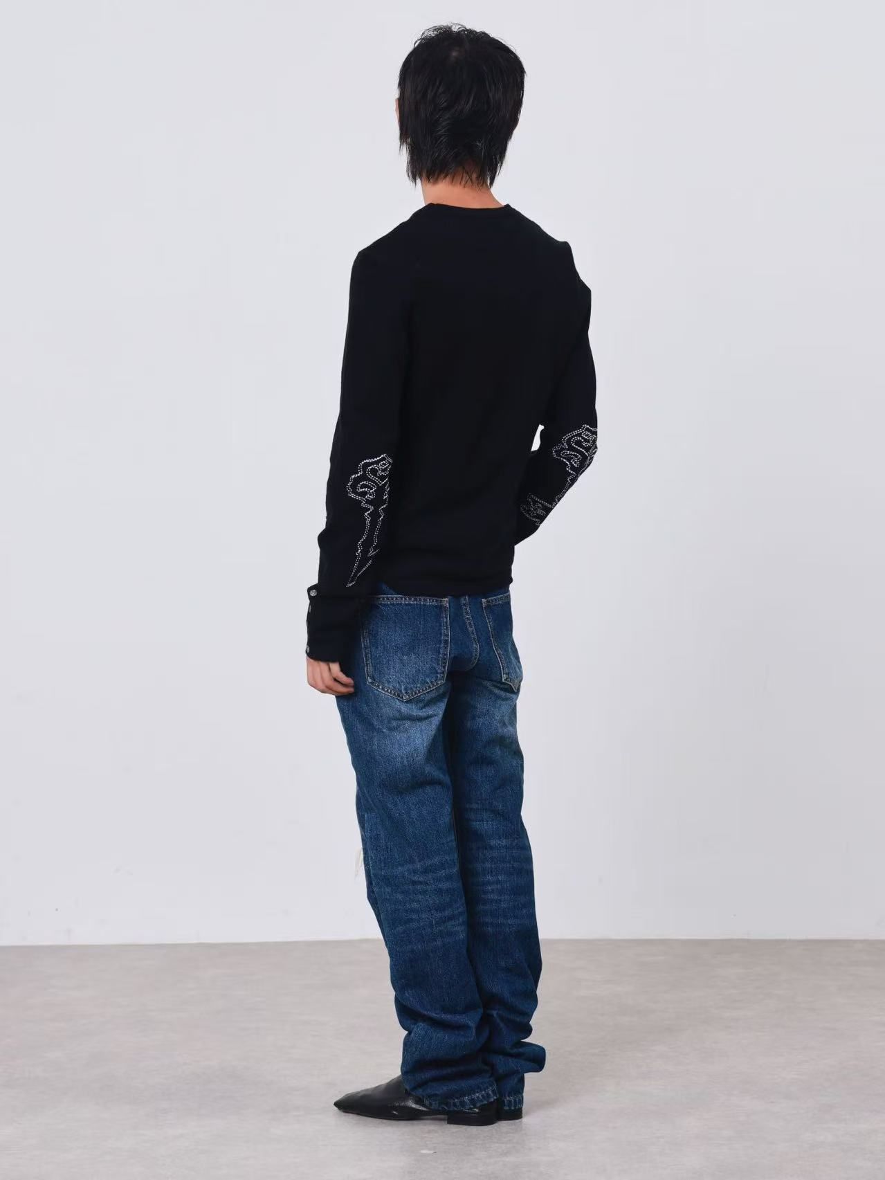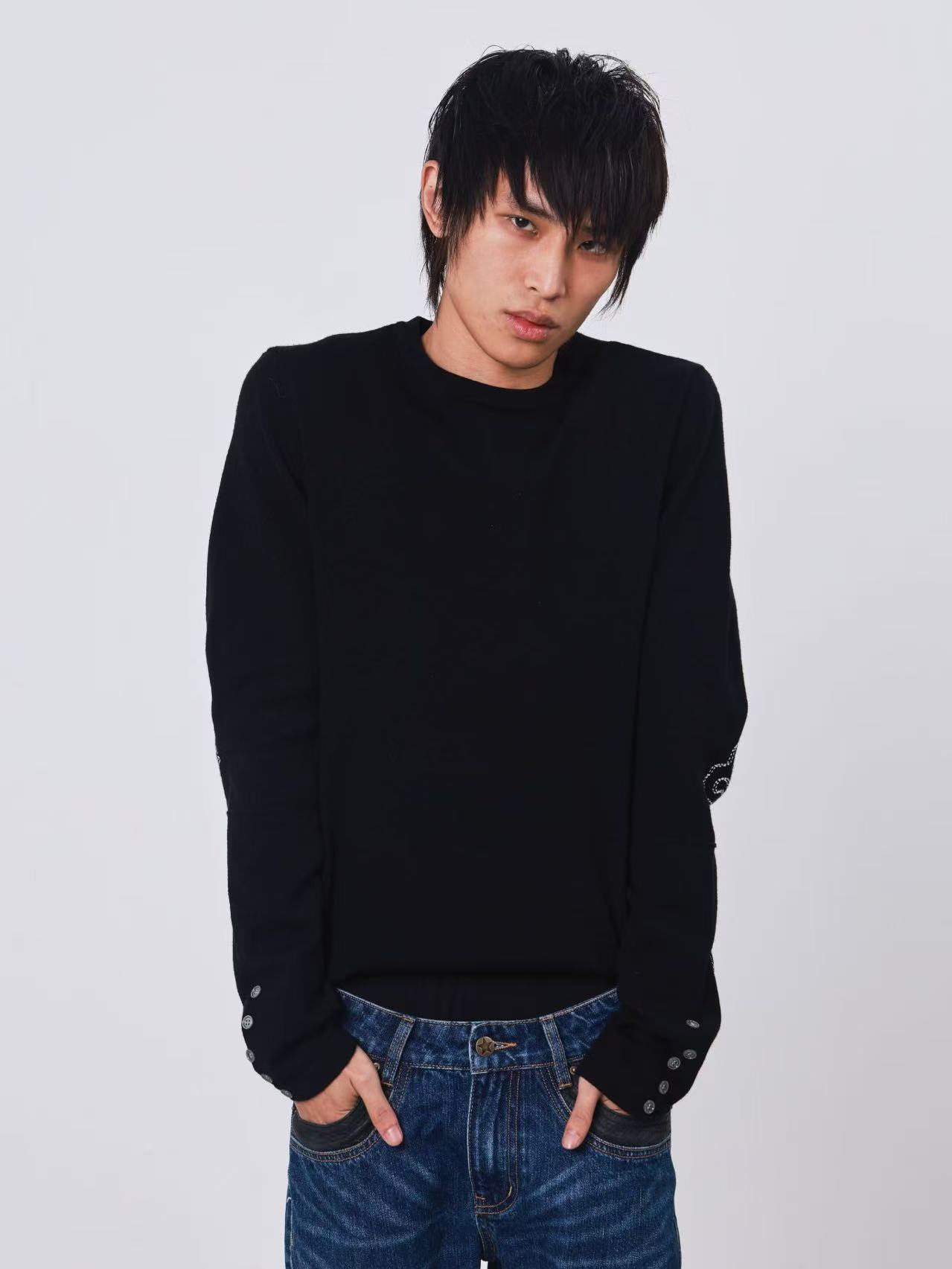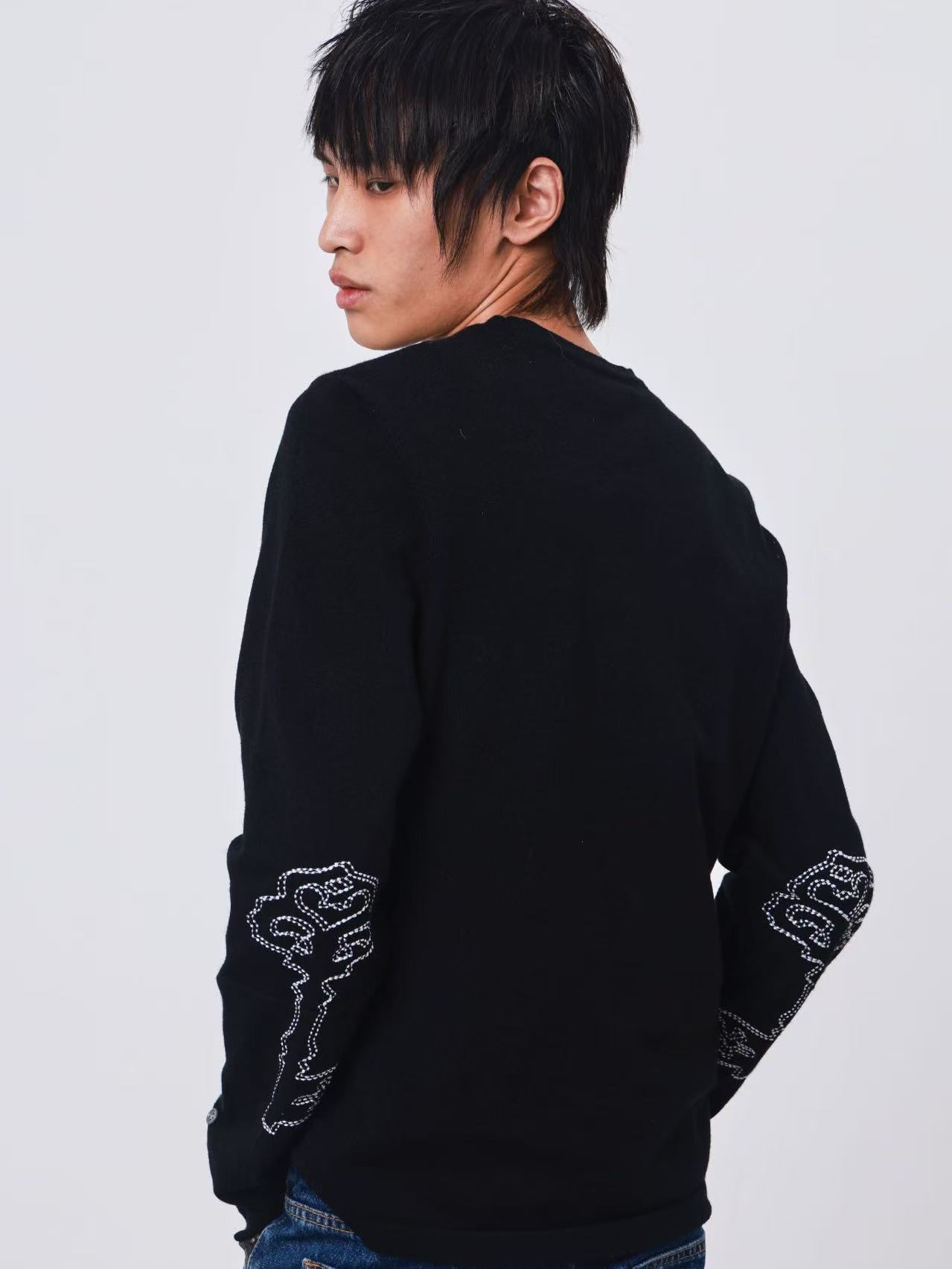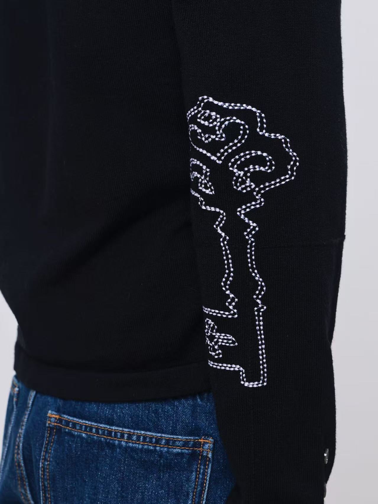 DETW Key Embroidery Premium Front Shoulder Slim Knitted Sweater