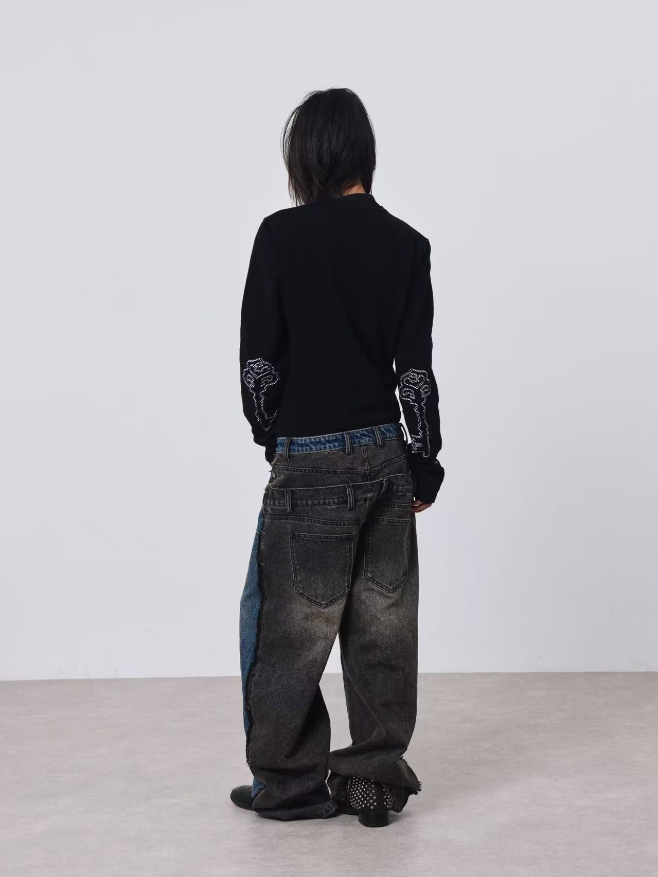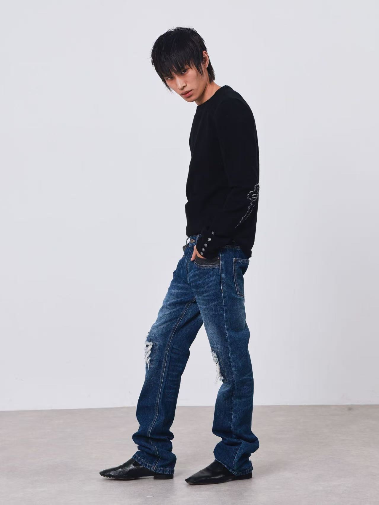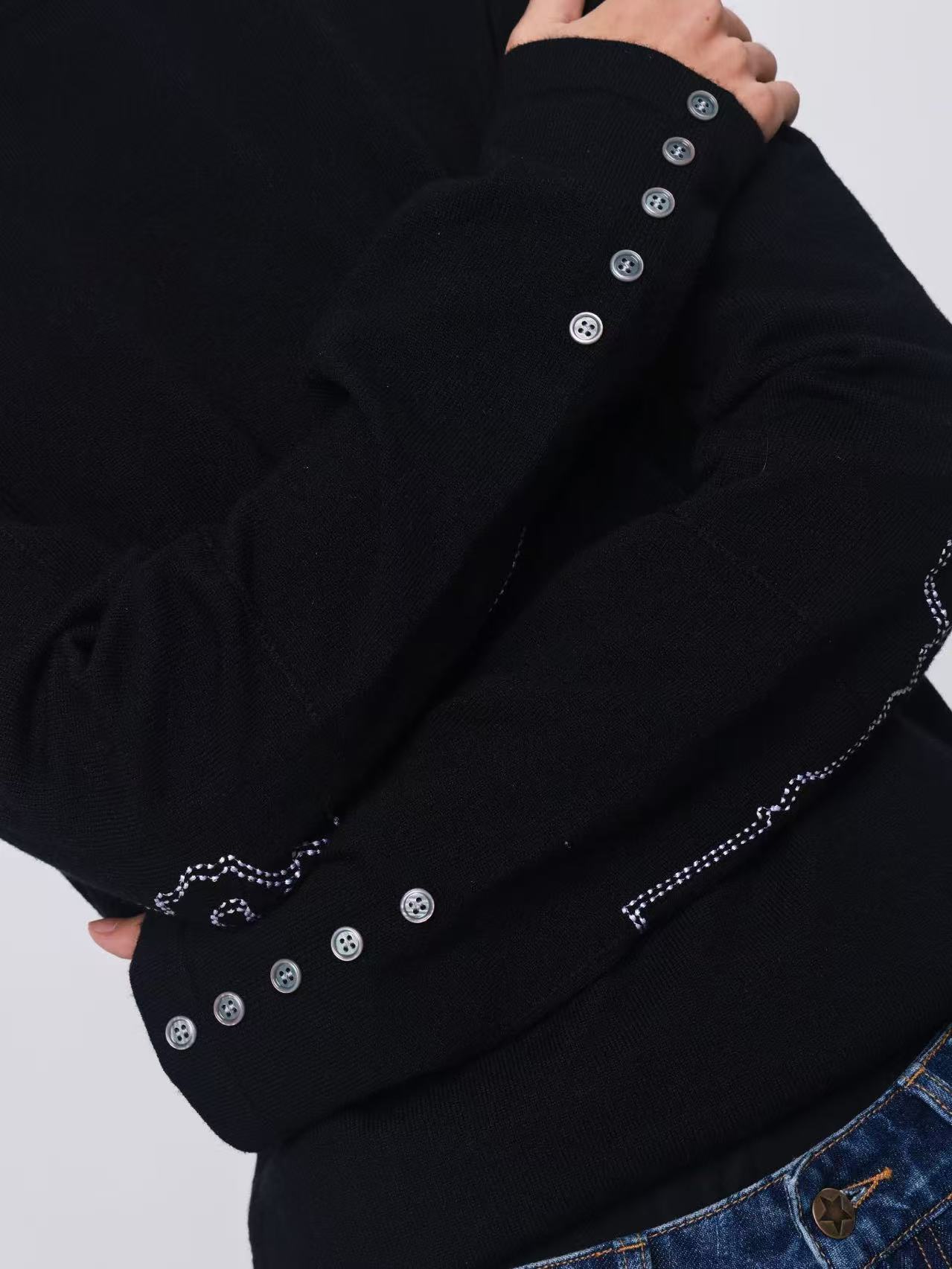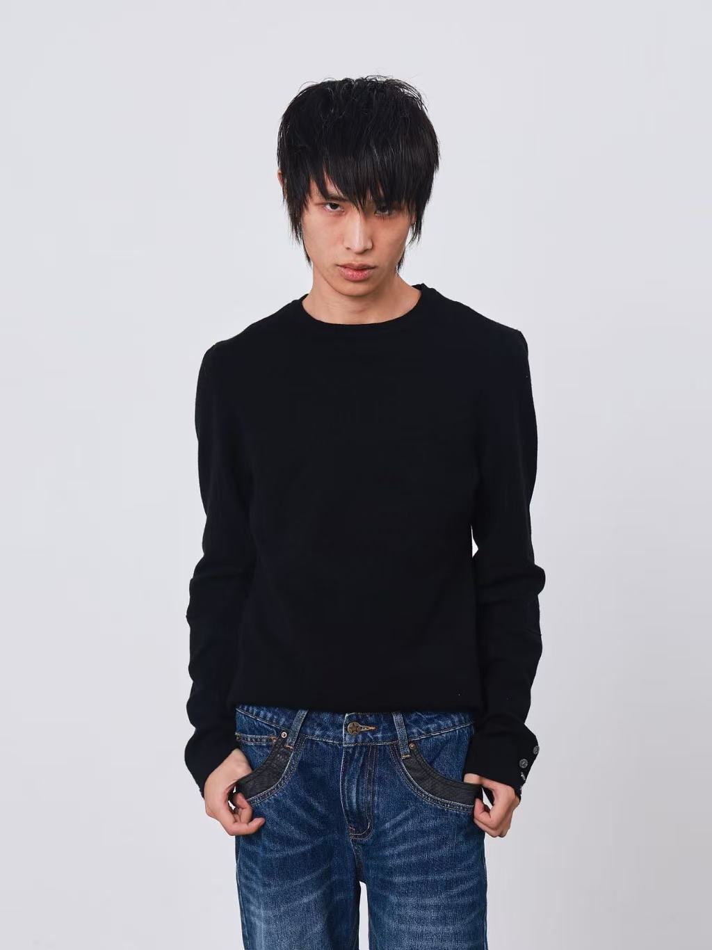 DETW Key Embroidery Premium Front Shoulder Slim Knitted Sweater