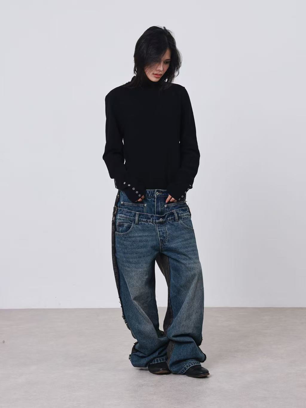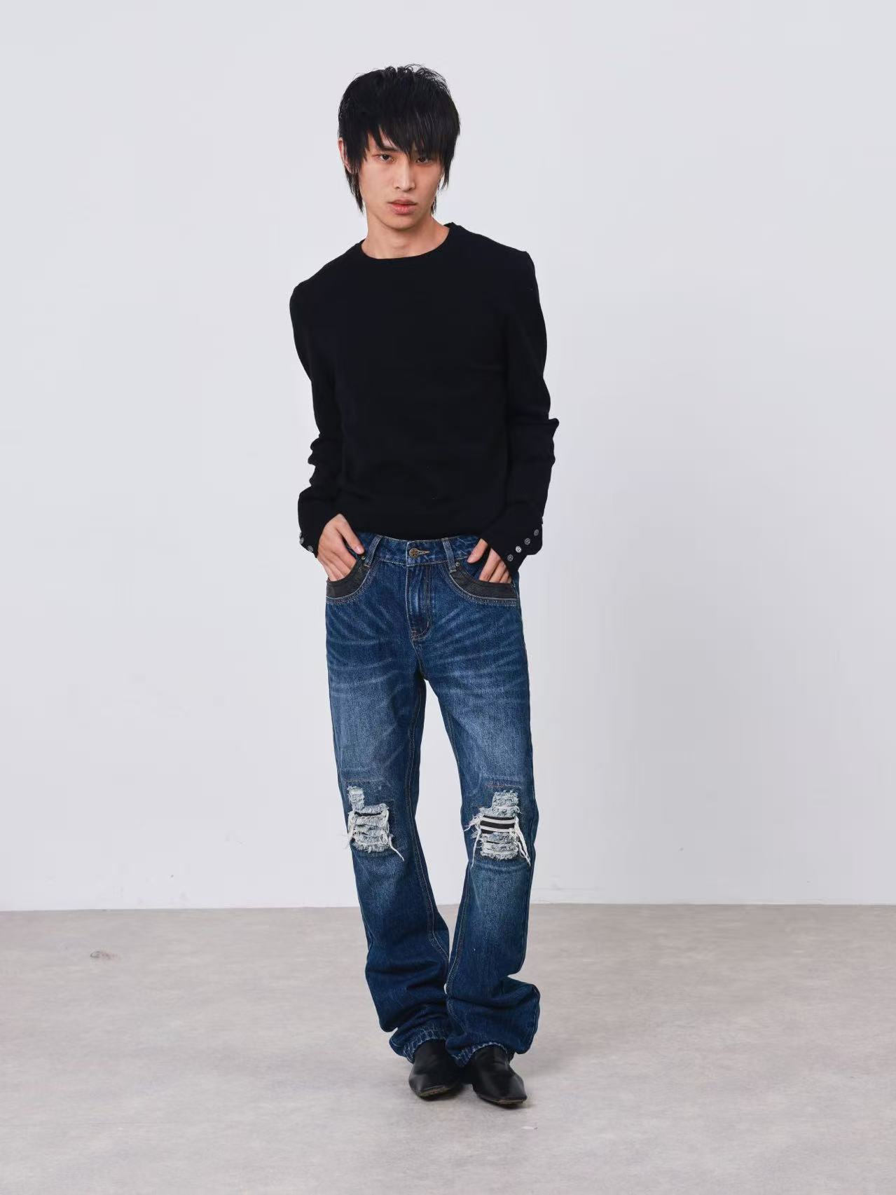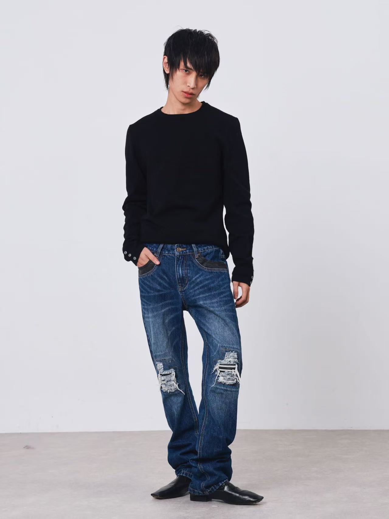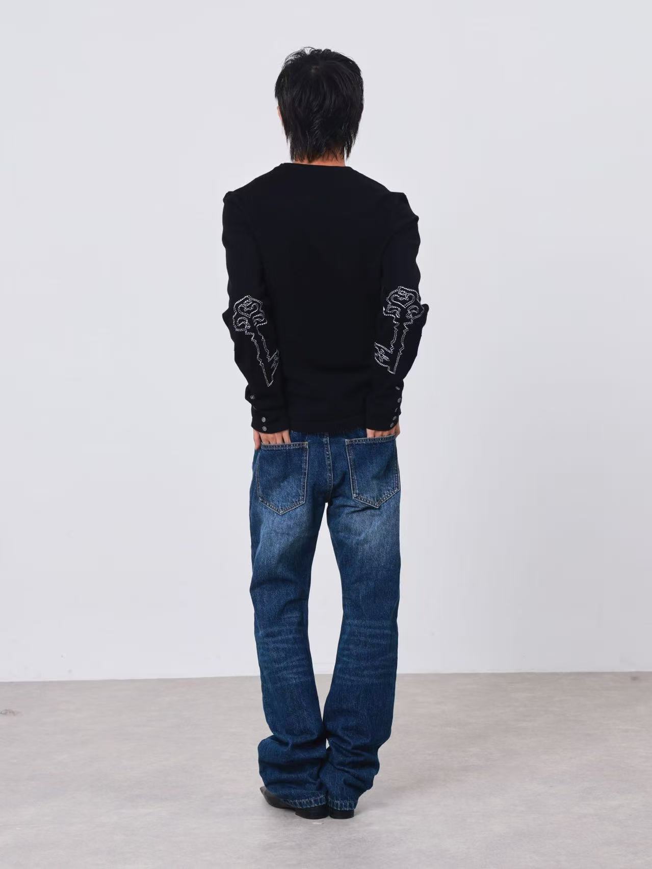 DETW Key Embroidery Premium Front Shoulder Slim Knitted Sweater