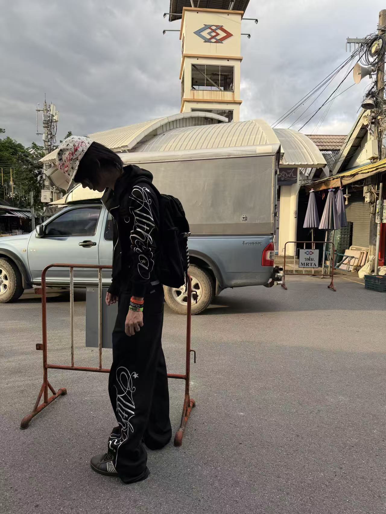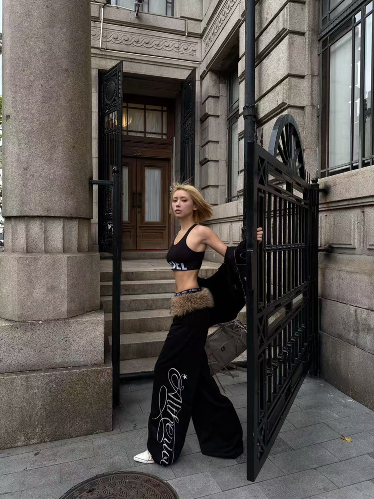 DETW Terry Embroidered Straight-leg Lace-up Sweatpants