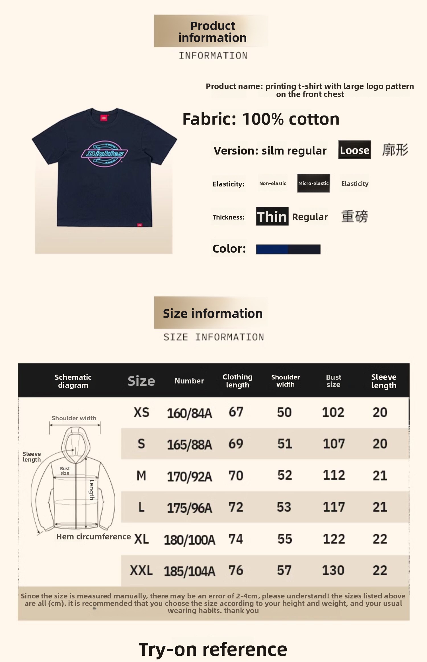 Dickies Colorful Big LOGO Pattern Printing Loose Tee