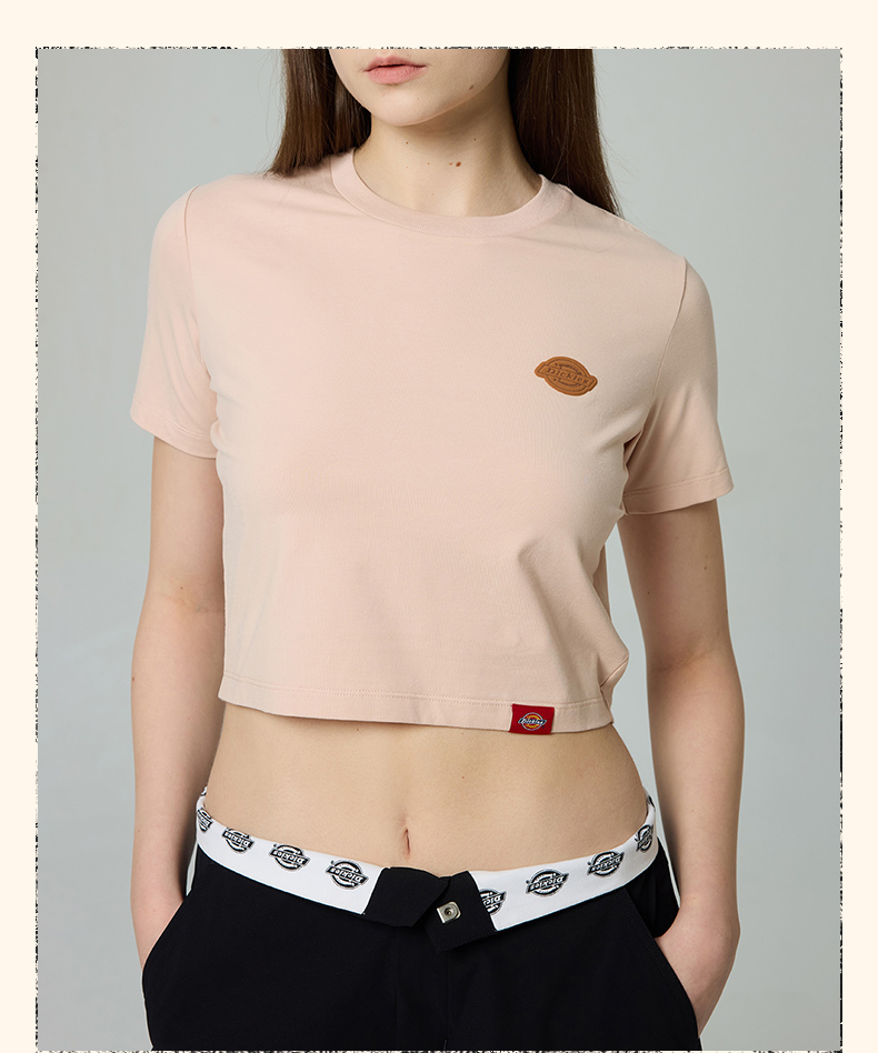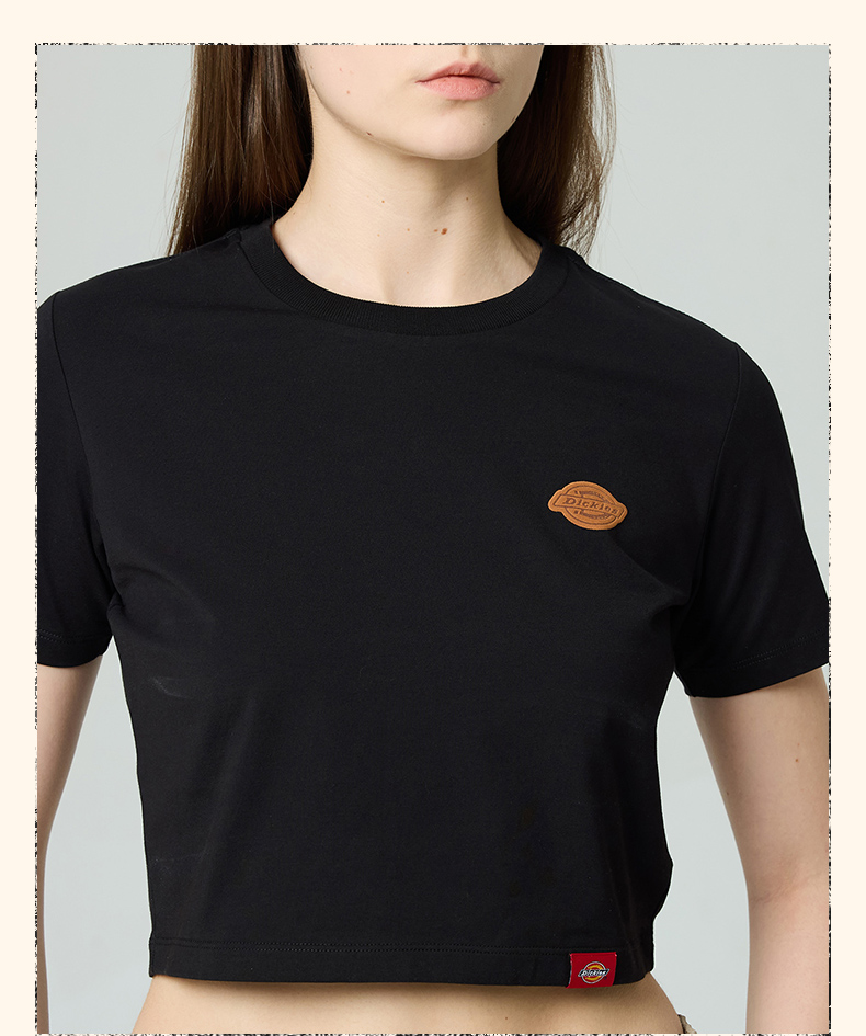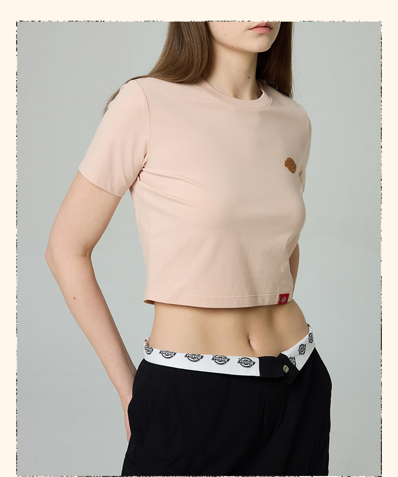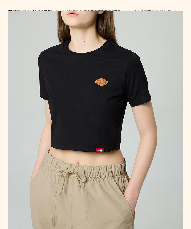 Dickies Elastic Slim Short Front Chest Small LOGO Printed Tee