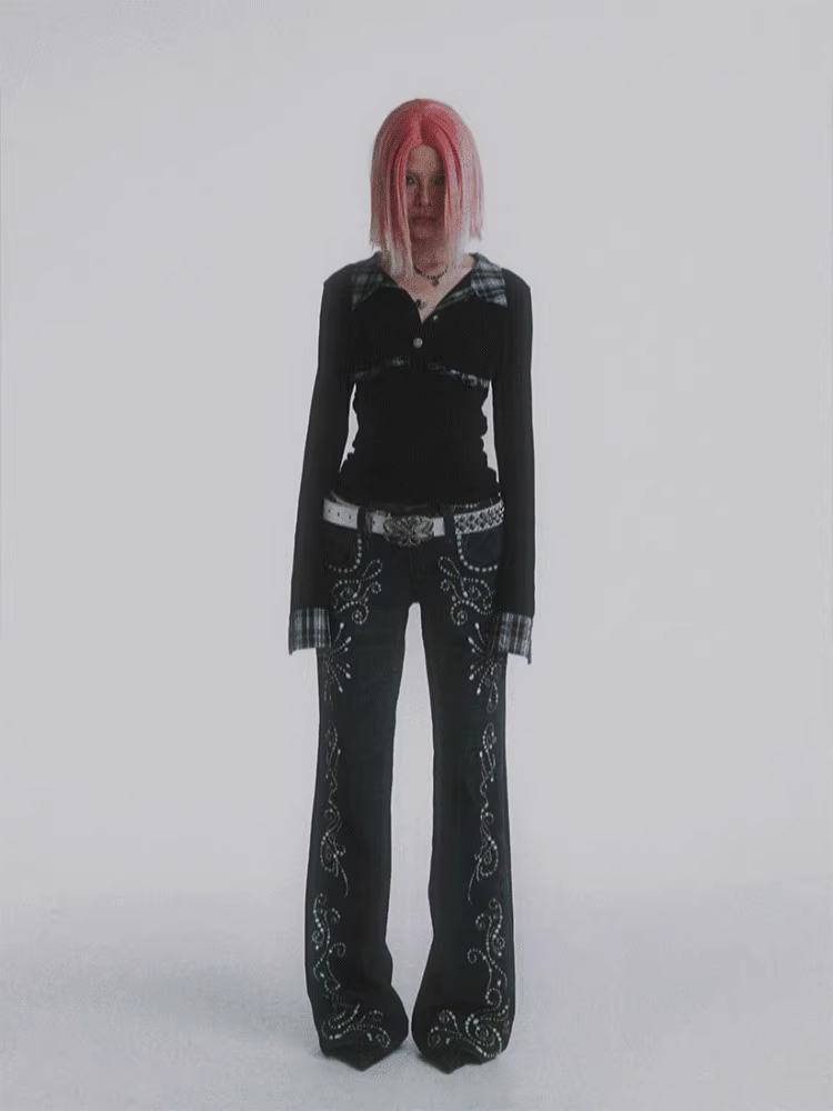 DND4DES Retro Jewel Print Horn Jeans
