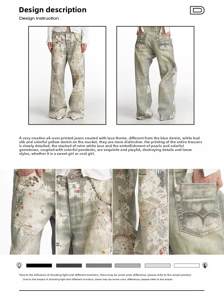 DND4DES Retro Lace Straight Jeans