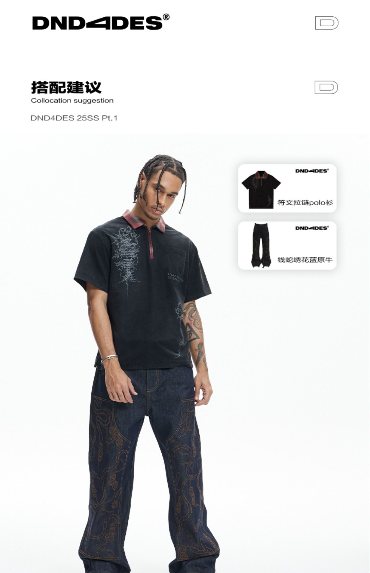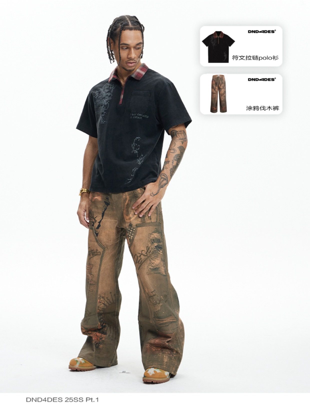 DND4DES Retro Washing Water To Make Old Plaid Lapel Polo Shirt