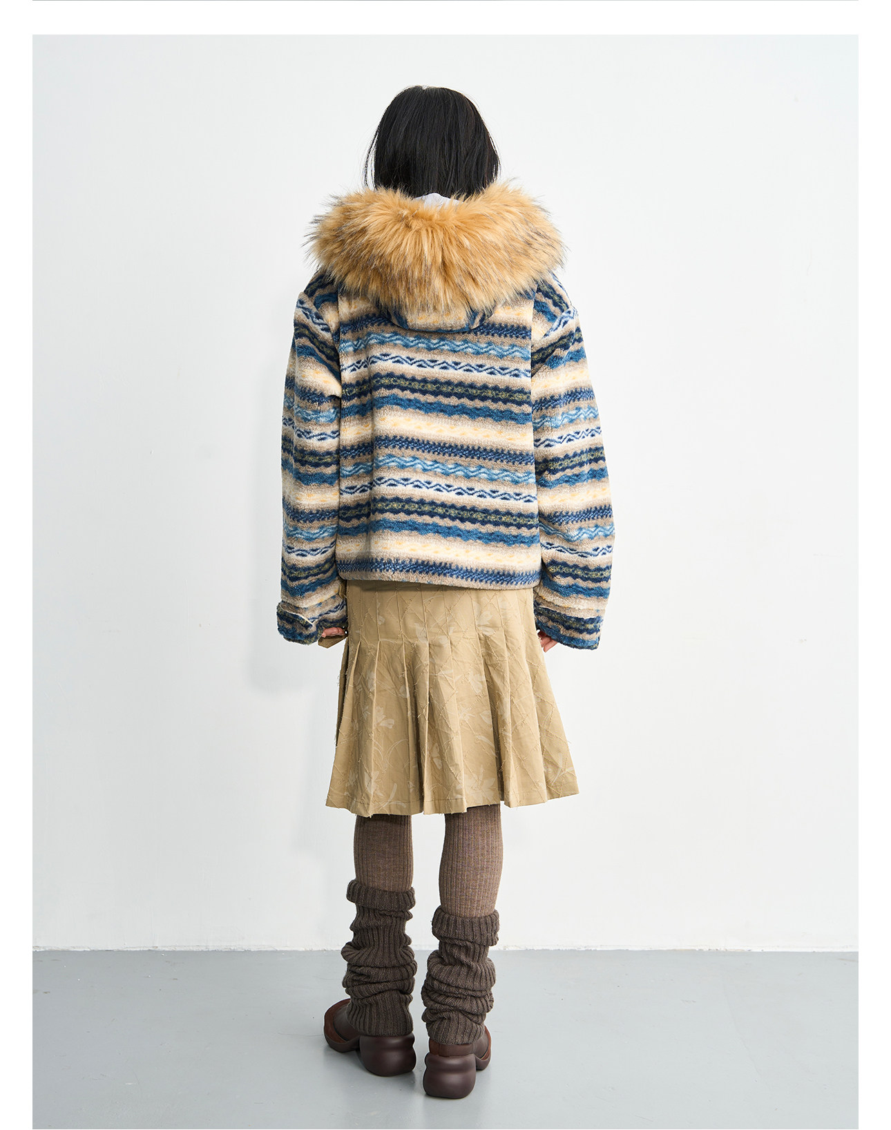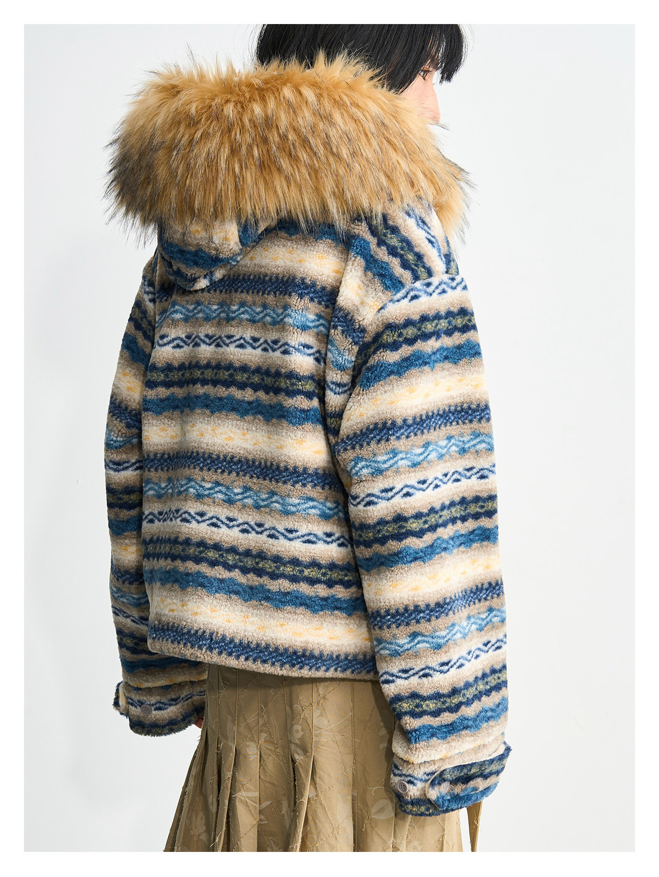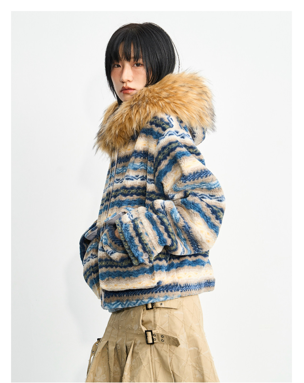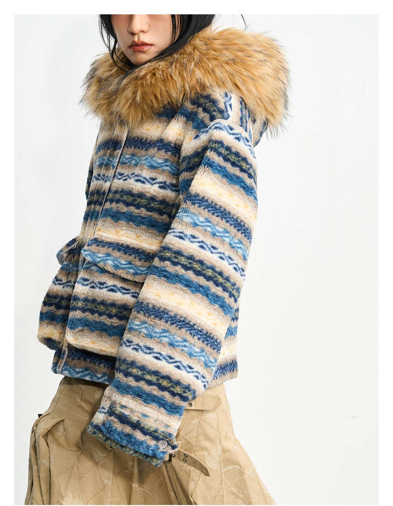 Enteralt Removable Large Fur Collar Three-dimensional Pocket Lamb Wool Jacket