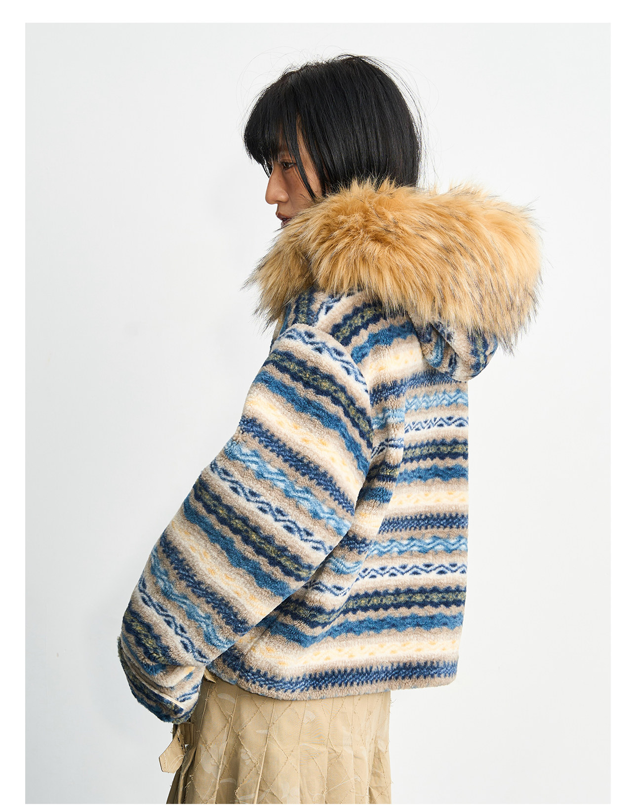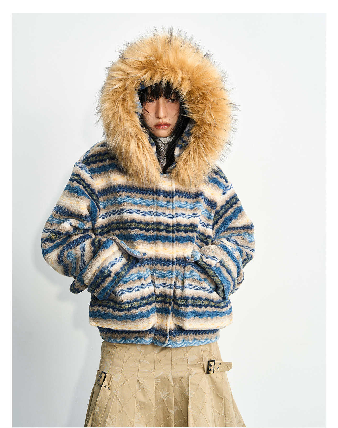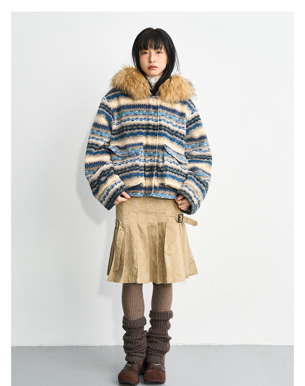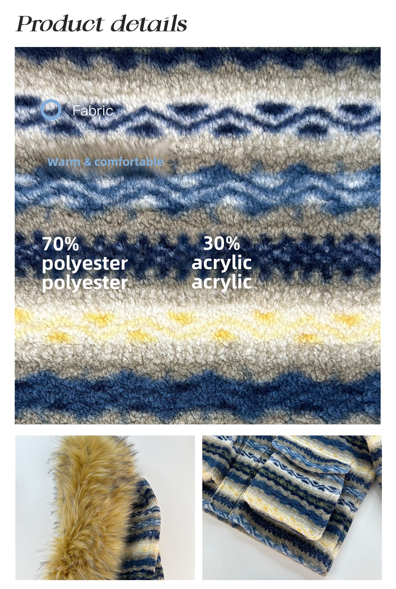 Enteralt Removable Large Fur Collar Three-dimensional Pocket Lamb Wool Jacket