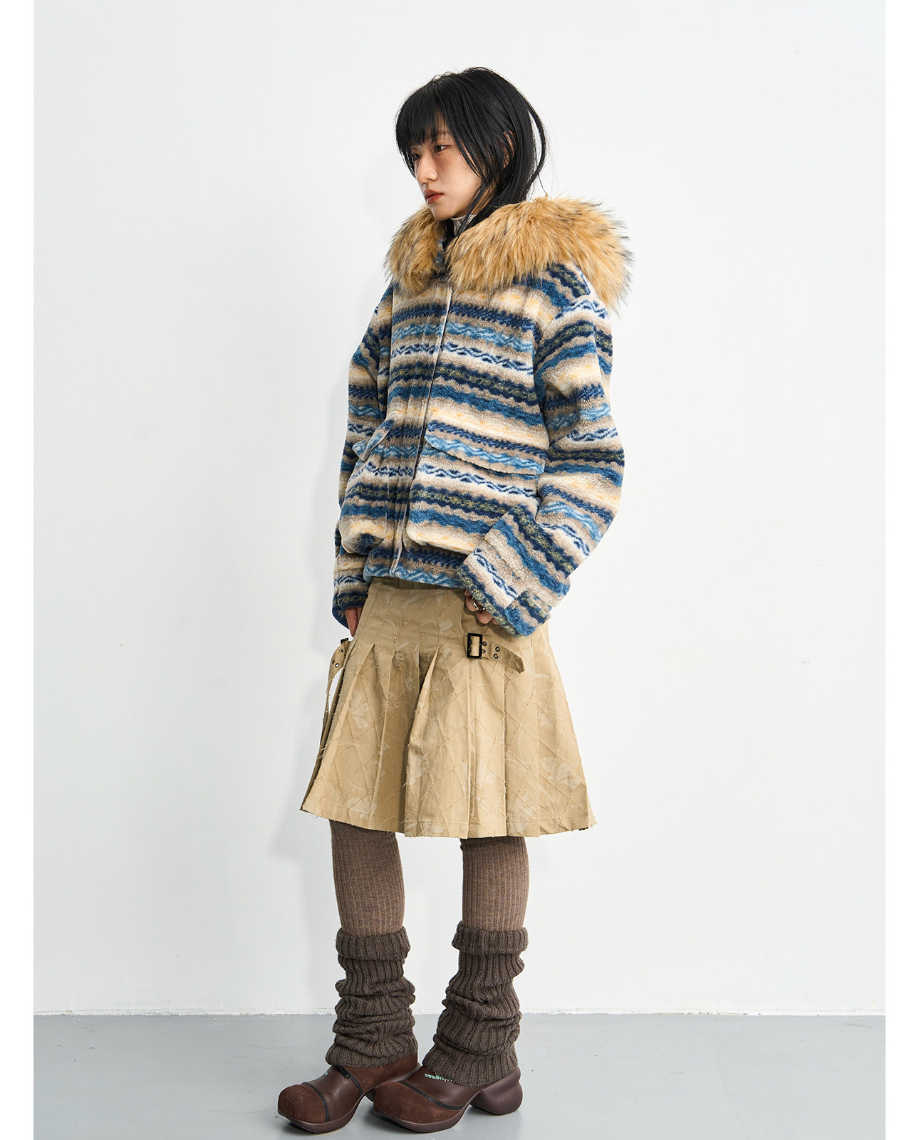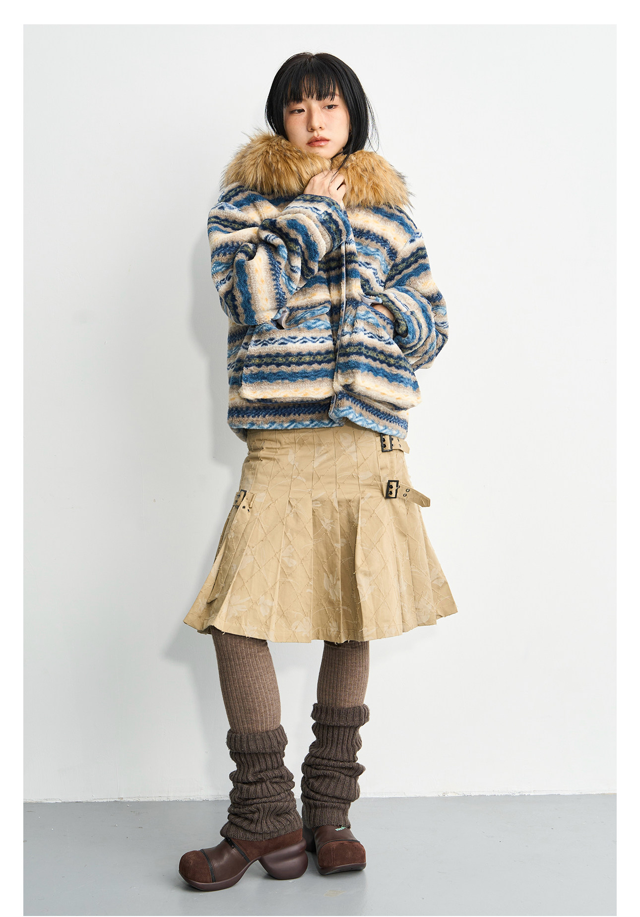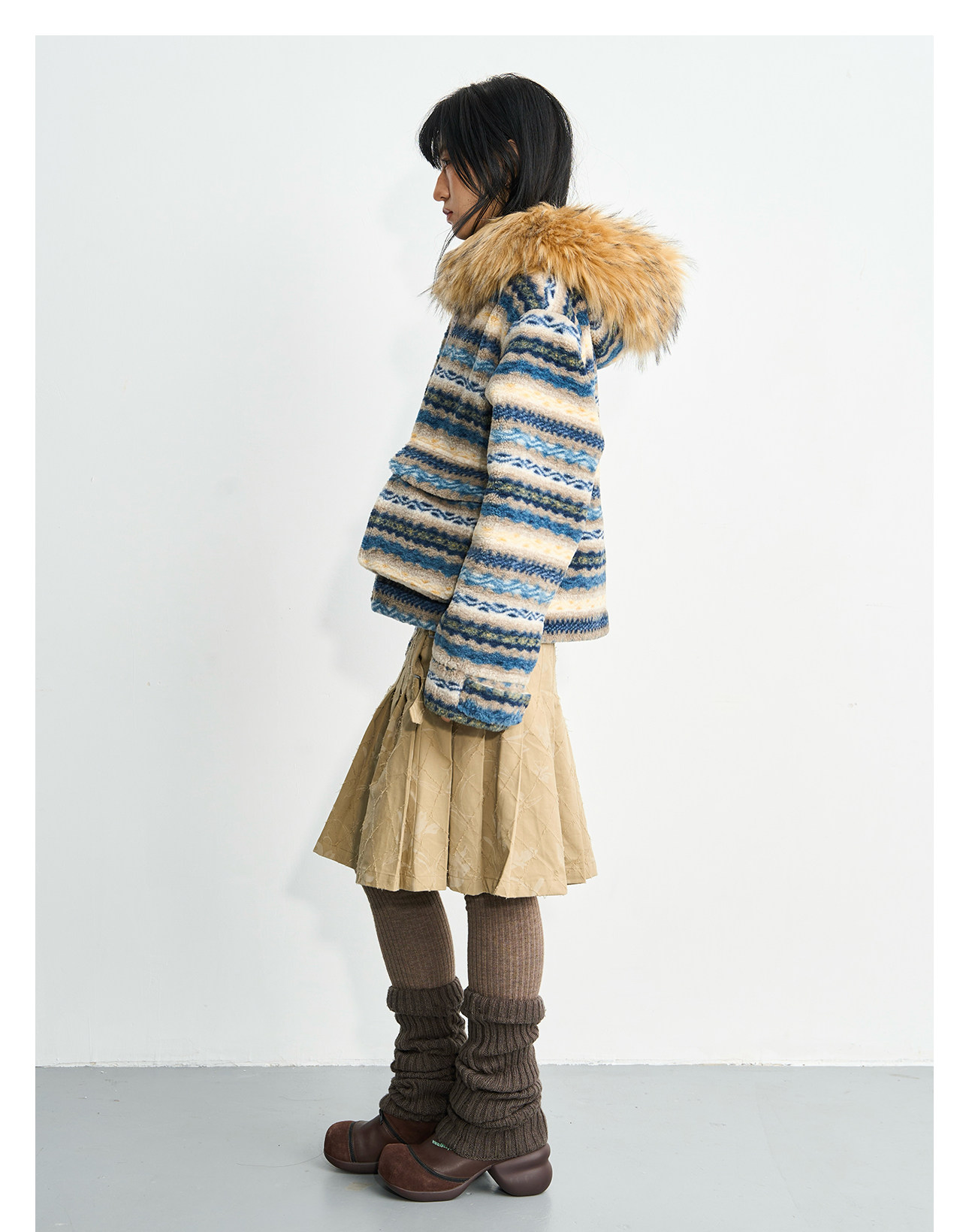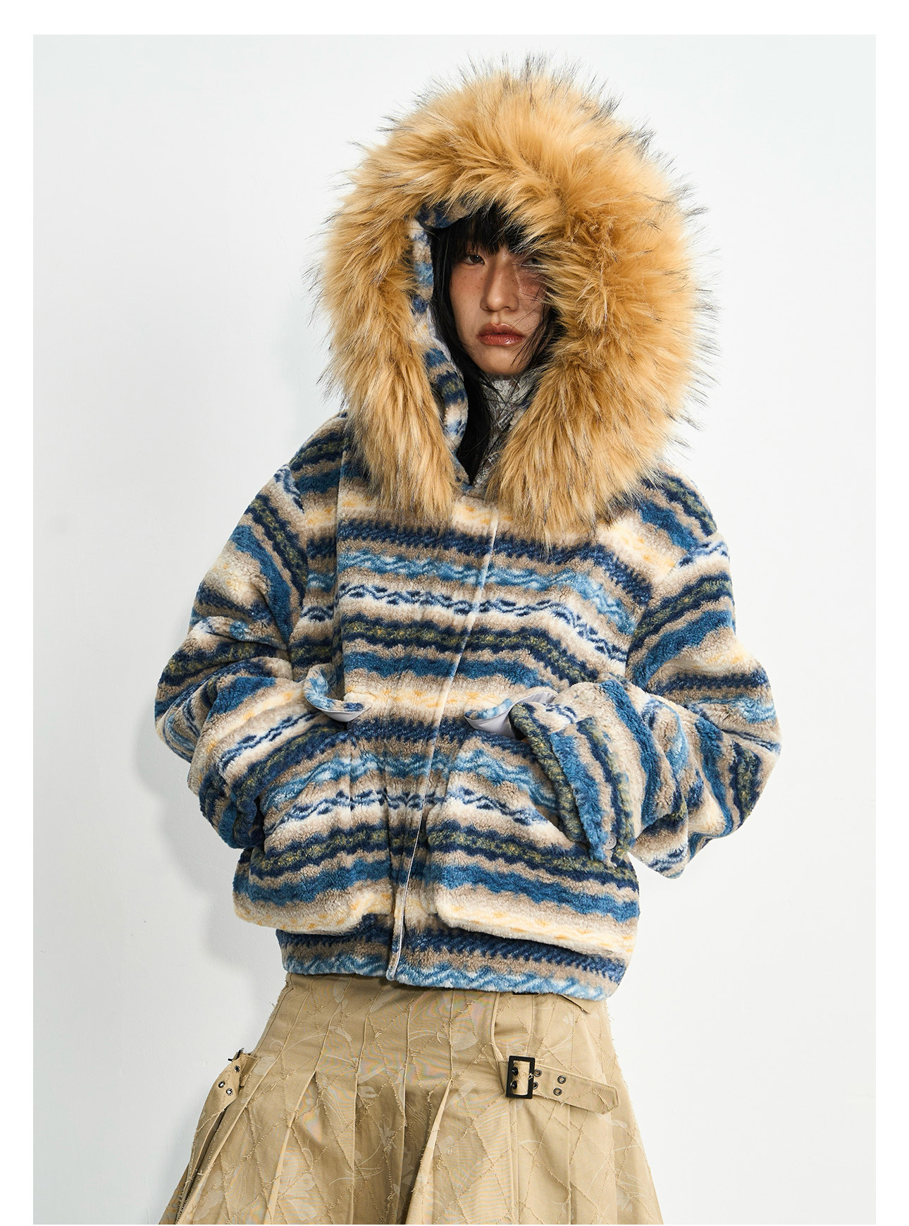 Enteralt Removable Large Fur Collar Three-dimensional Pocket Lamb Wool Jacket