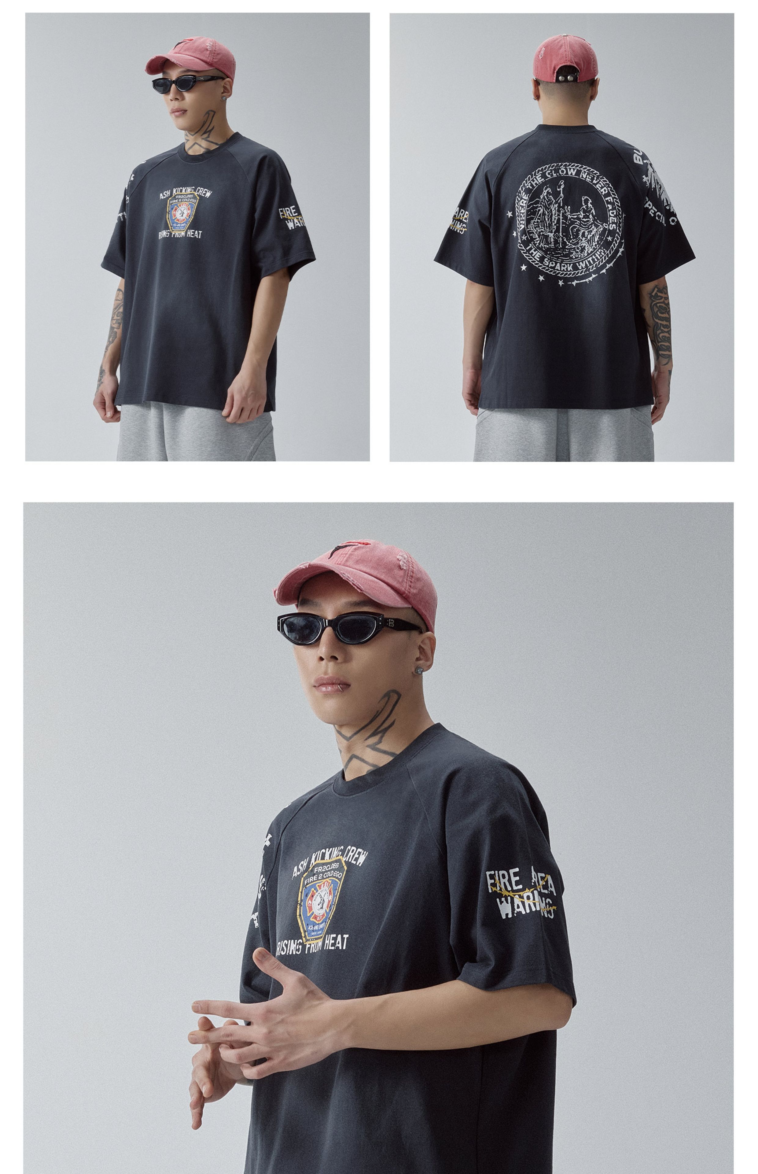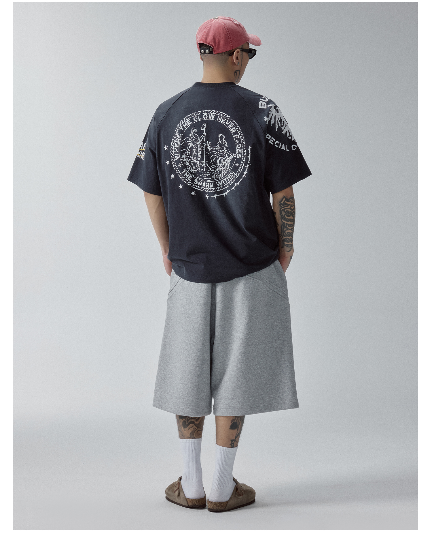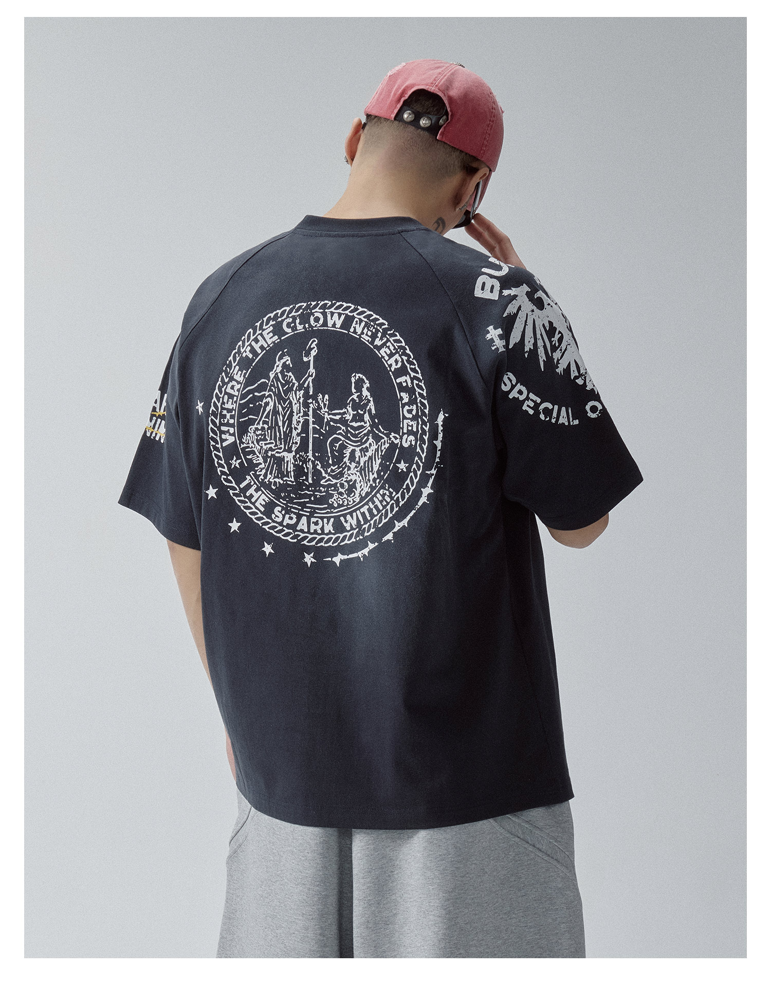 F2CE Gradual Change Retro Shoulder Sleeve Print Tee