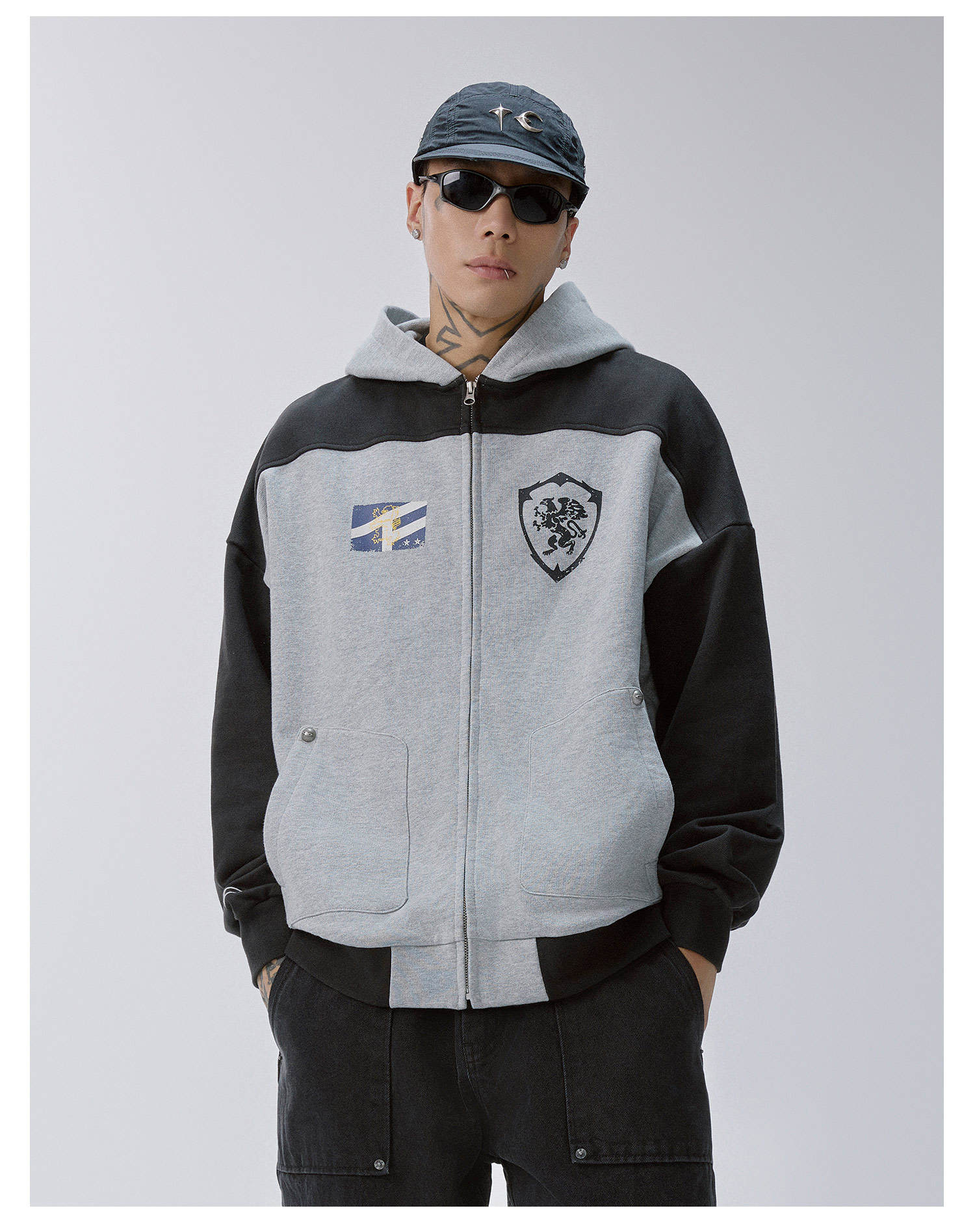 F2CE Splicing Contrasting Color Loose Casual Jacket