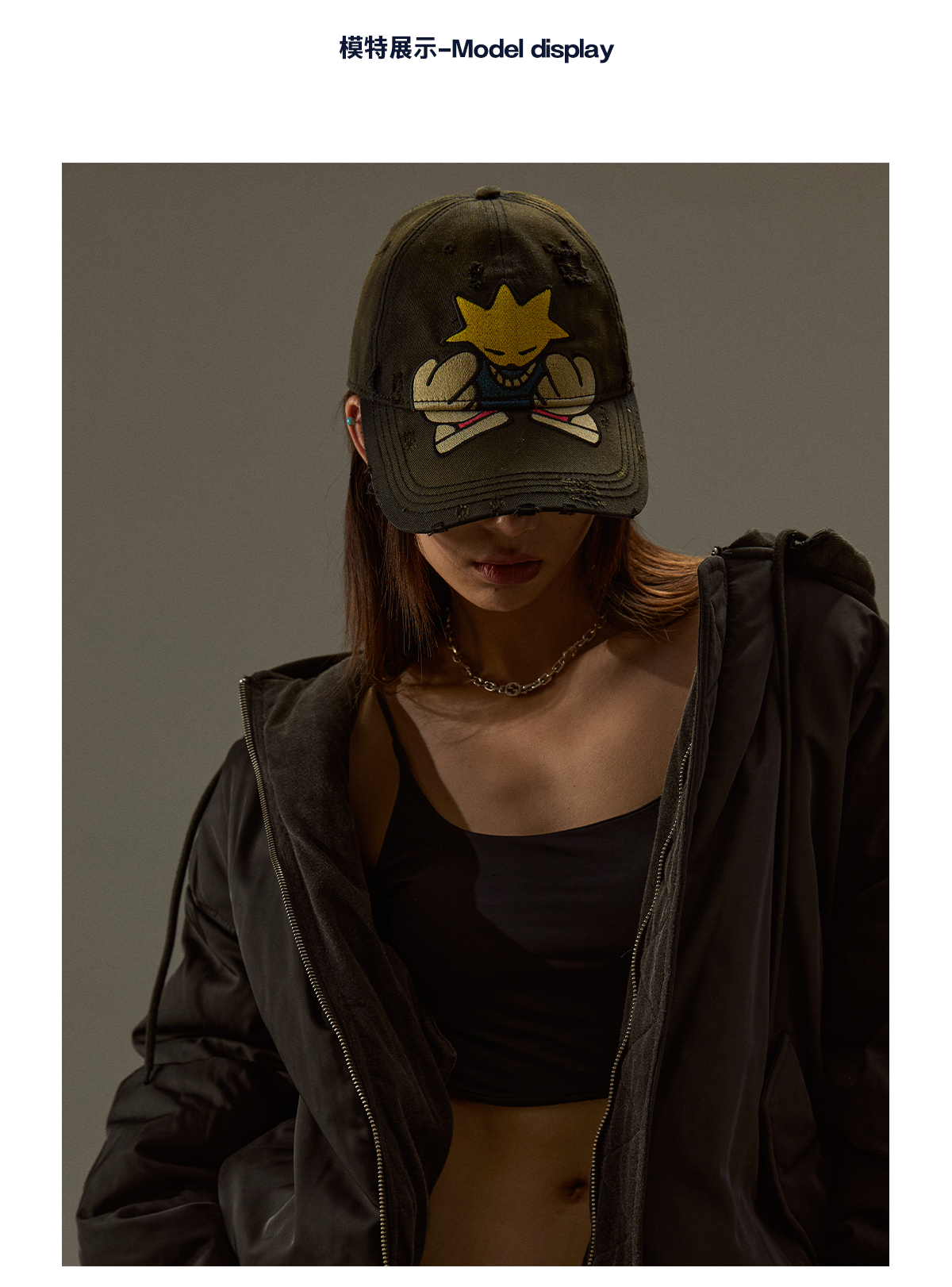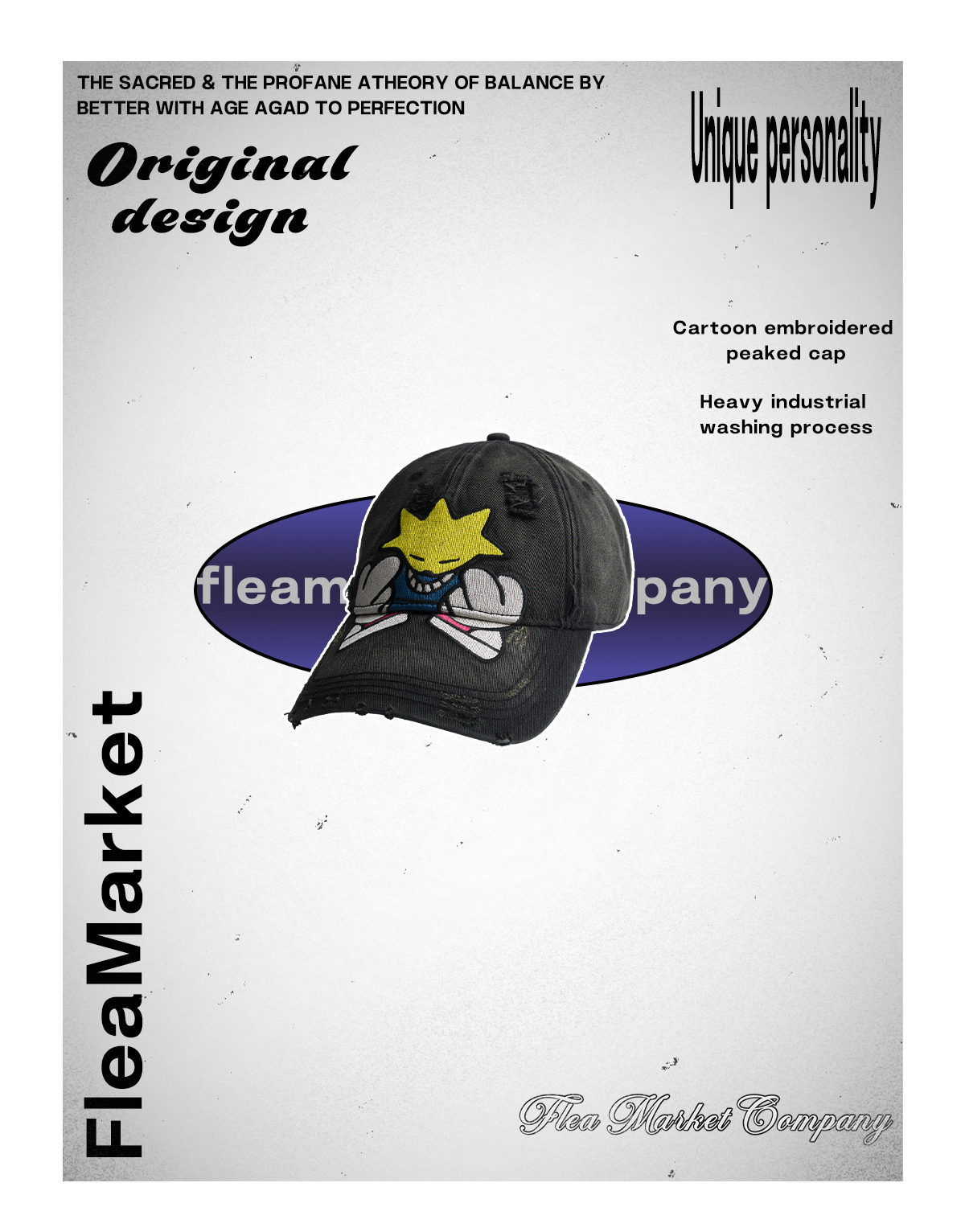 Fleamarket Cartoon Embroidery Wash Cotton Baseball Cap