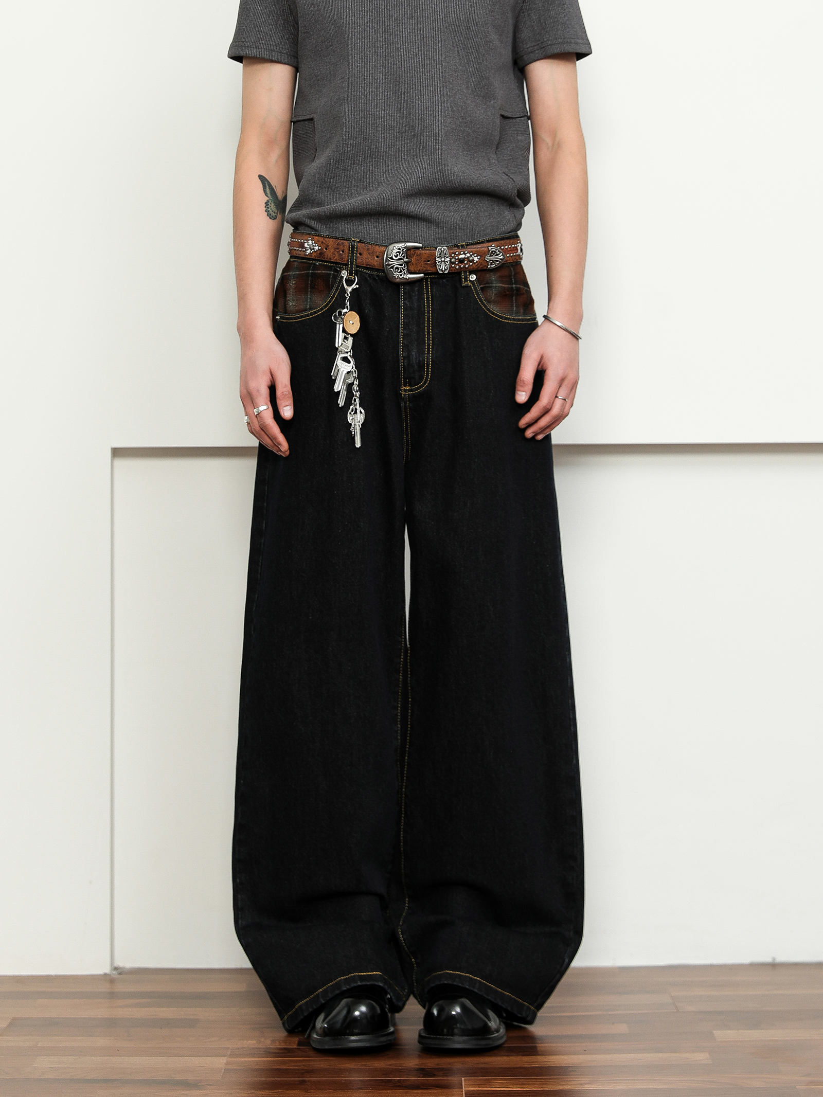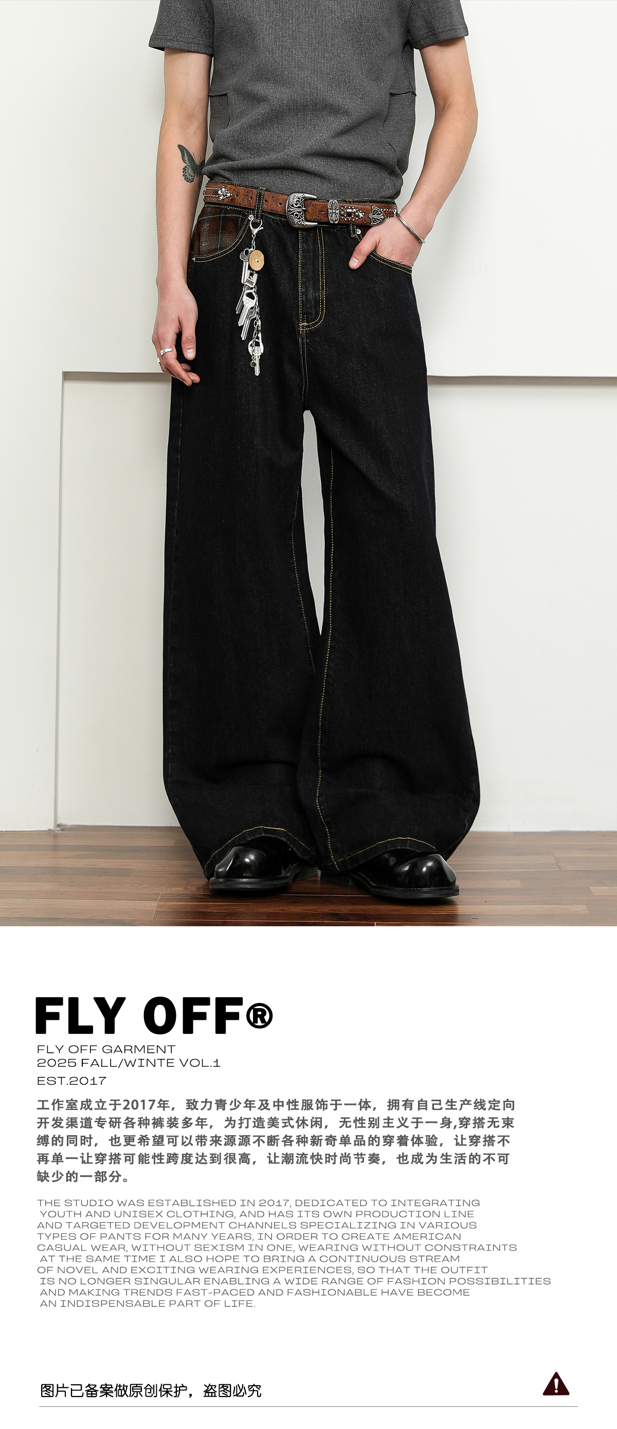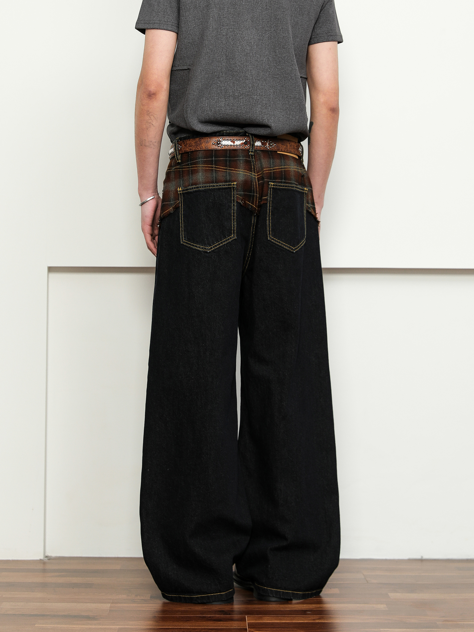 FLYOFF Splicing plaid JAPENESE RAW DENIM jeans