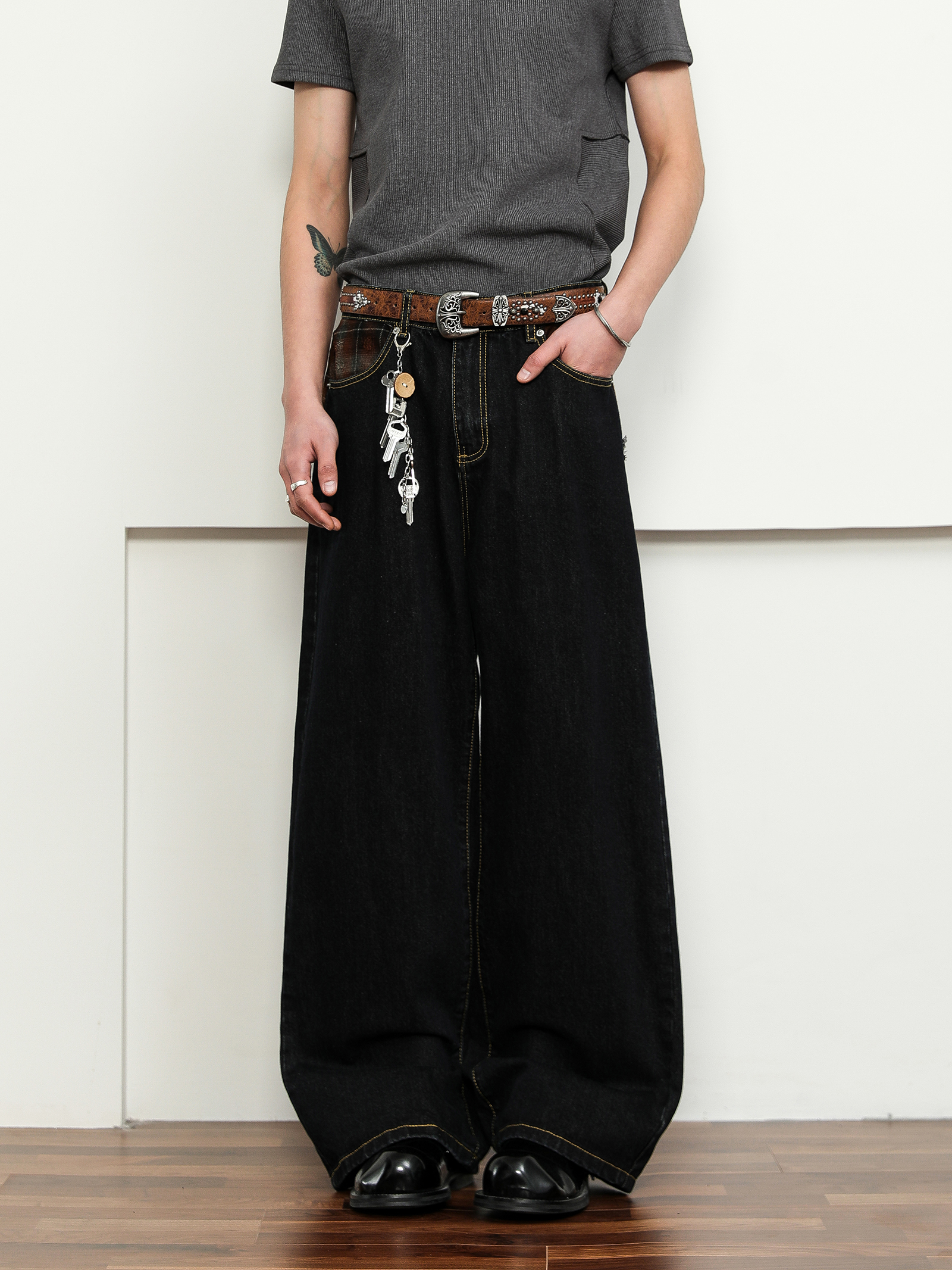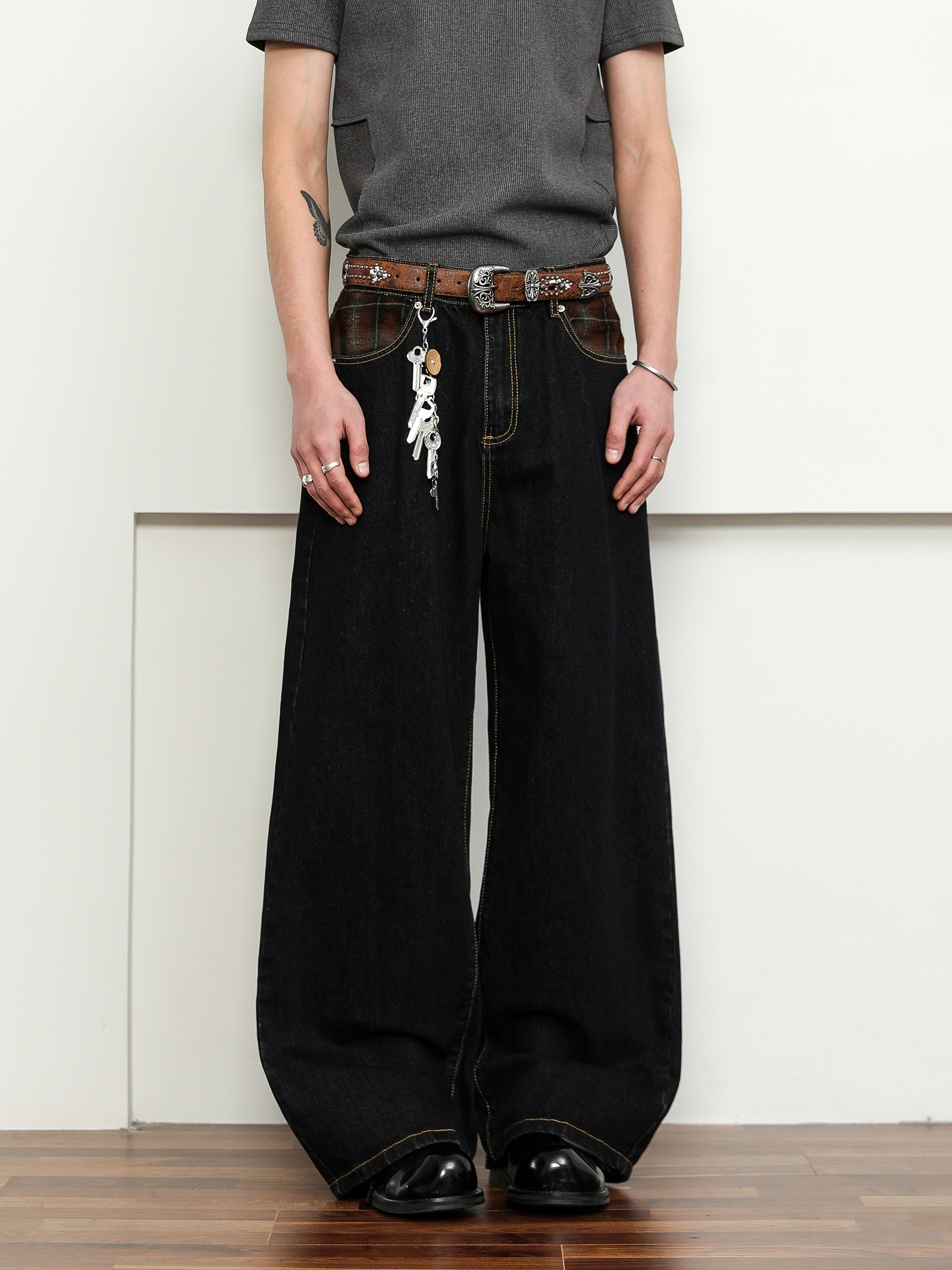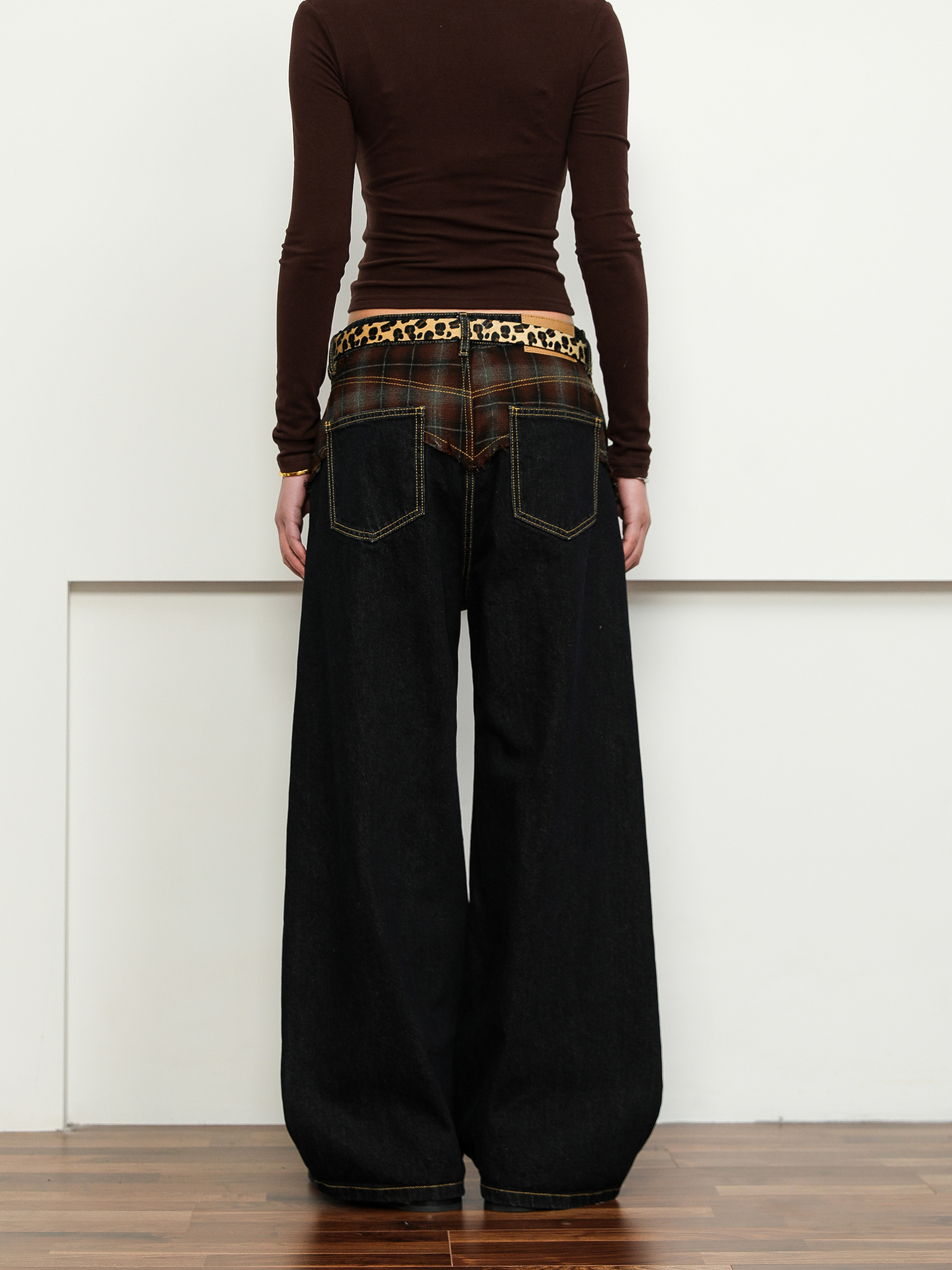 FLYOFF Splicing plaid JAPENESE RAW DENIM jeans