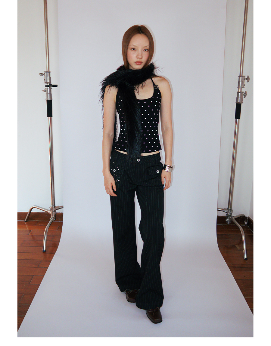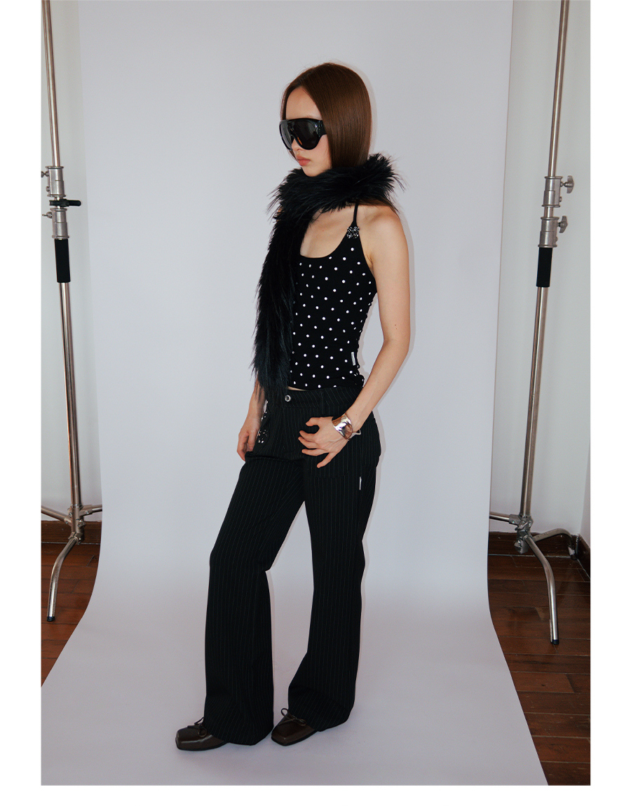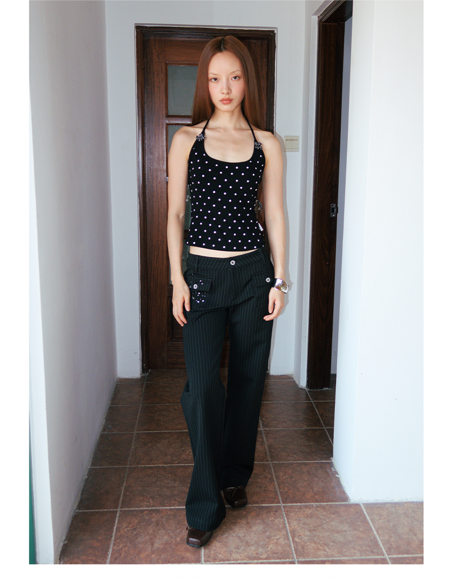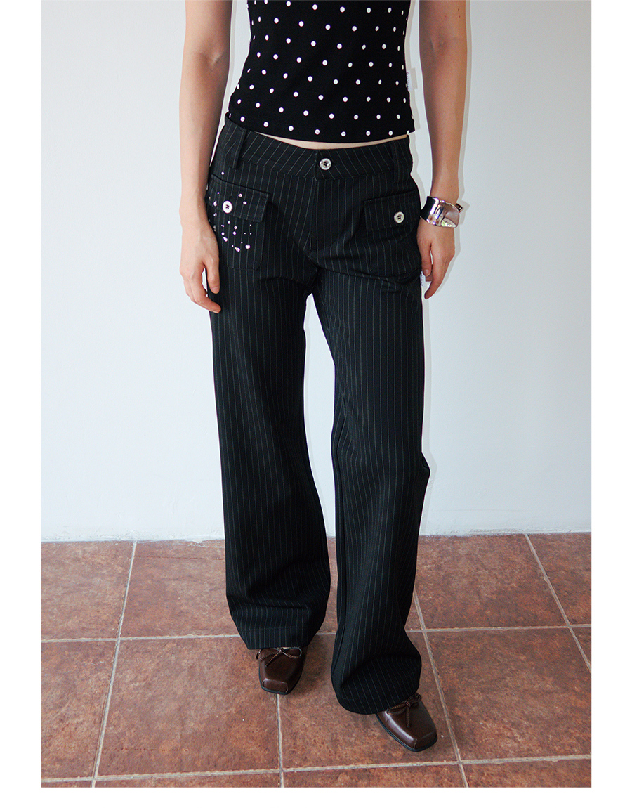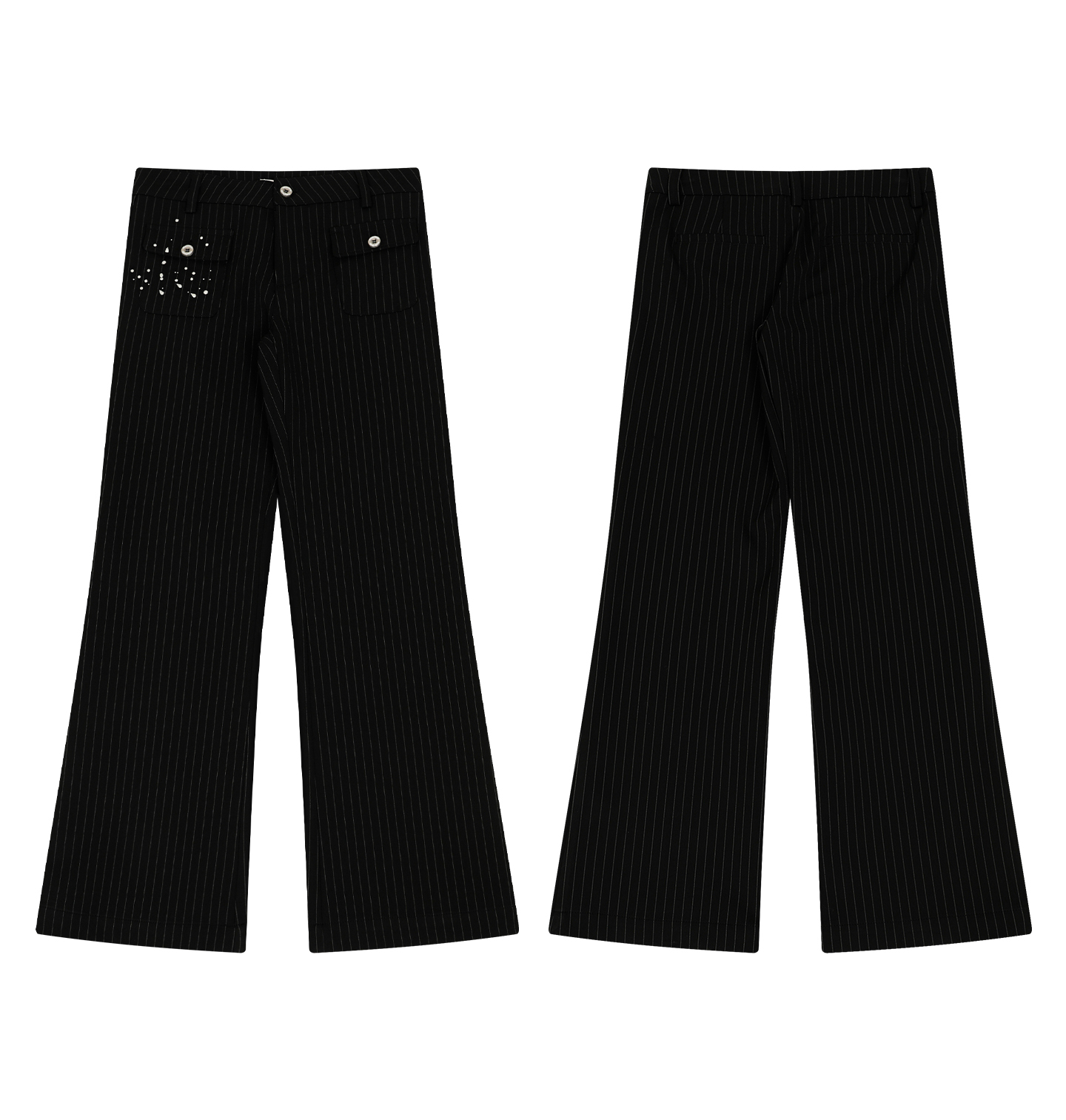 FUNKYFUN Medium and Low Waist Hot-drilled Pinstriped Flared Pants
