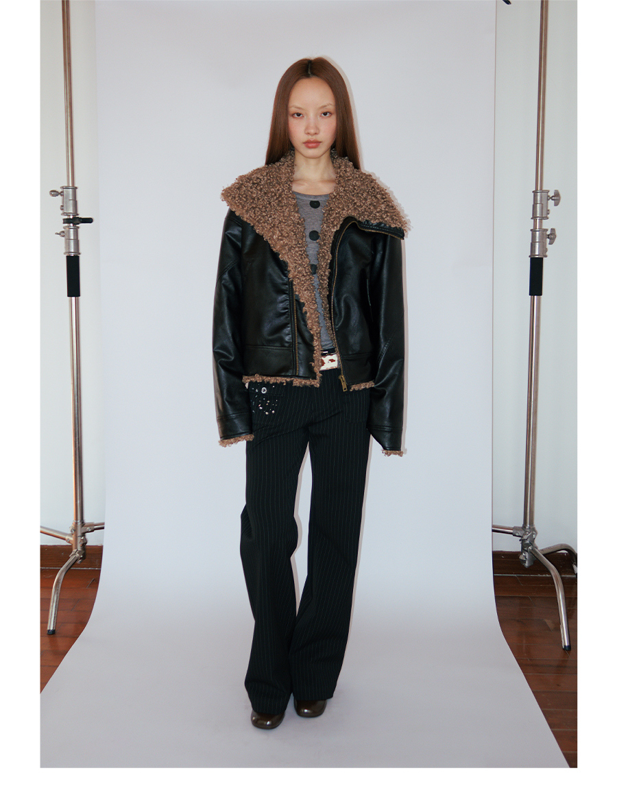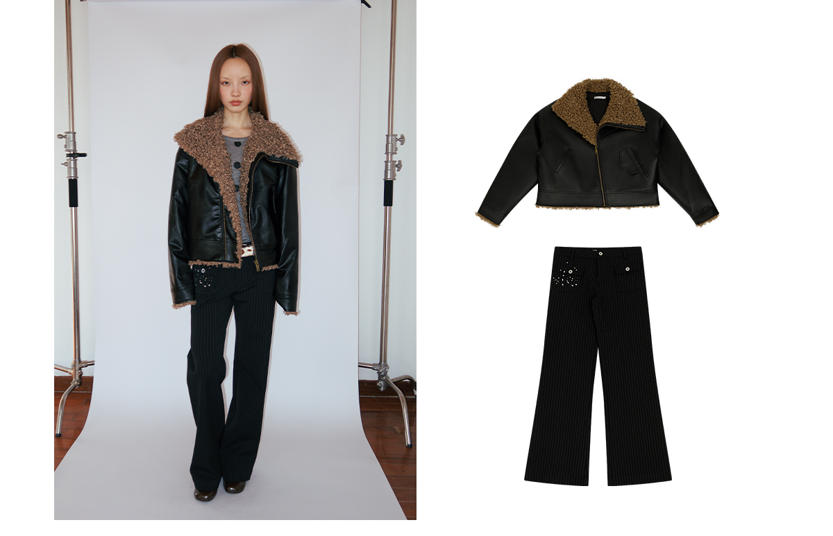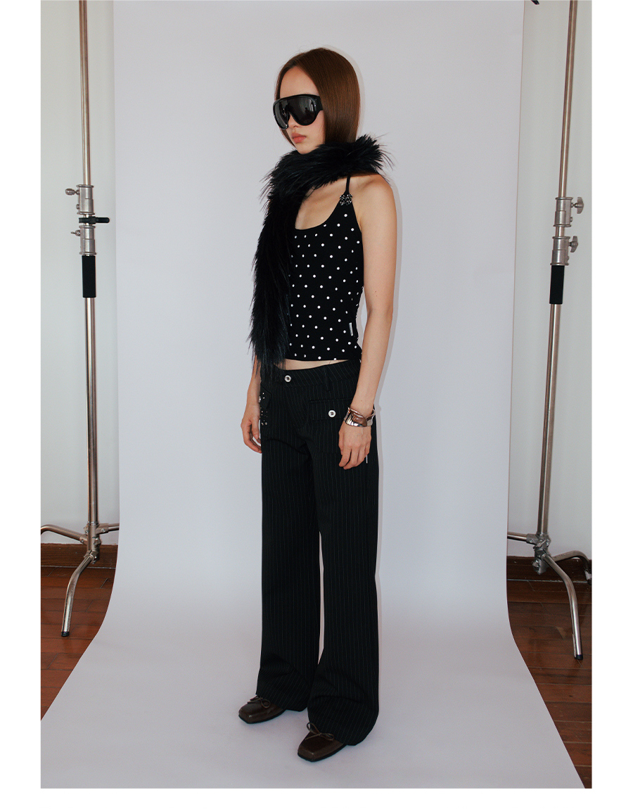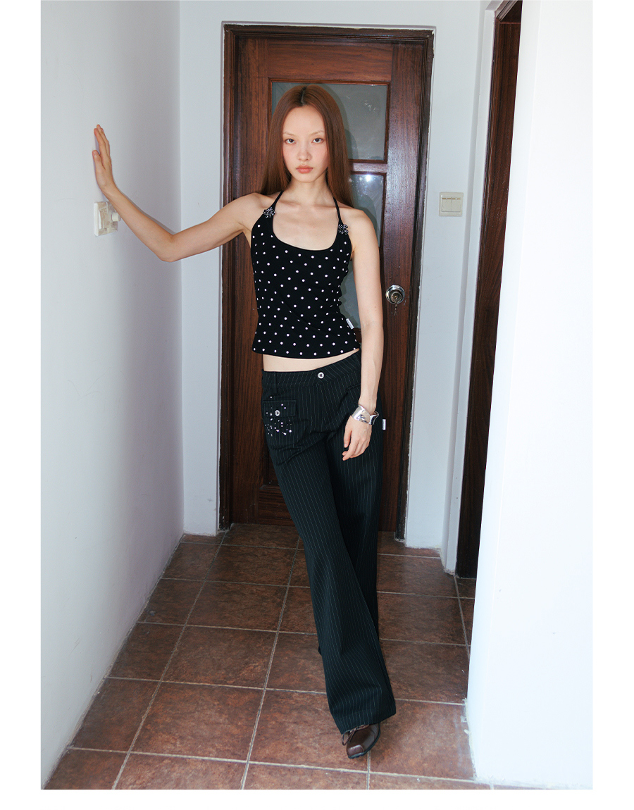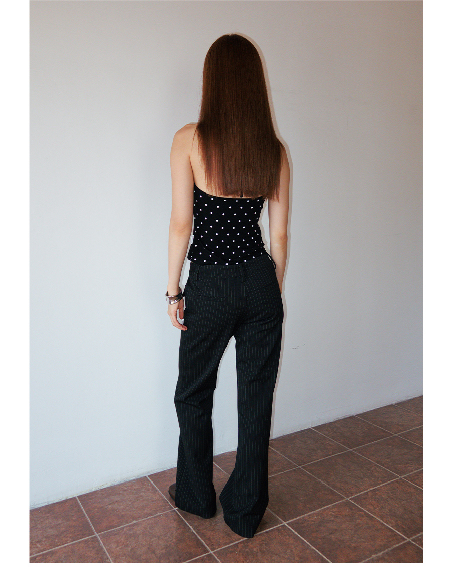FUNKYFUN Medium and Low Waist Hot-drilled Pinstriped Flared Pants