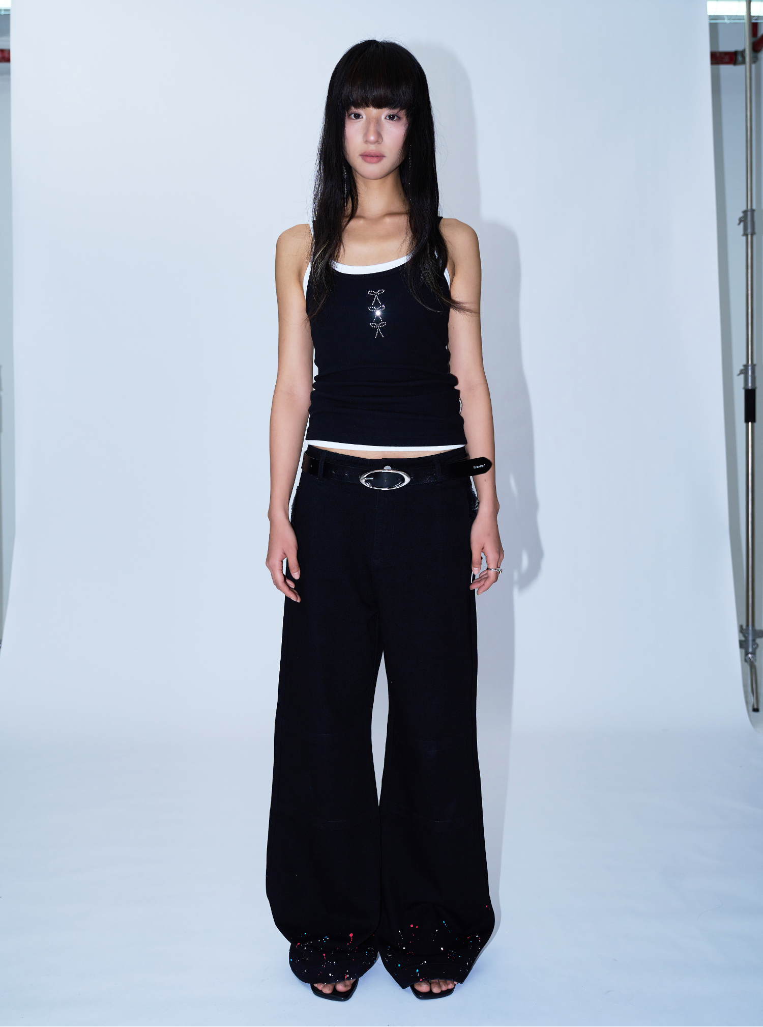 FUNKYFUN Starry Sky Shining Ink Printing Design Twill Jeans