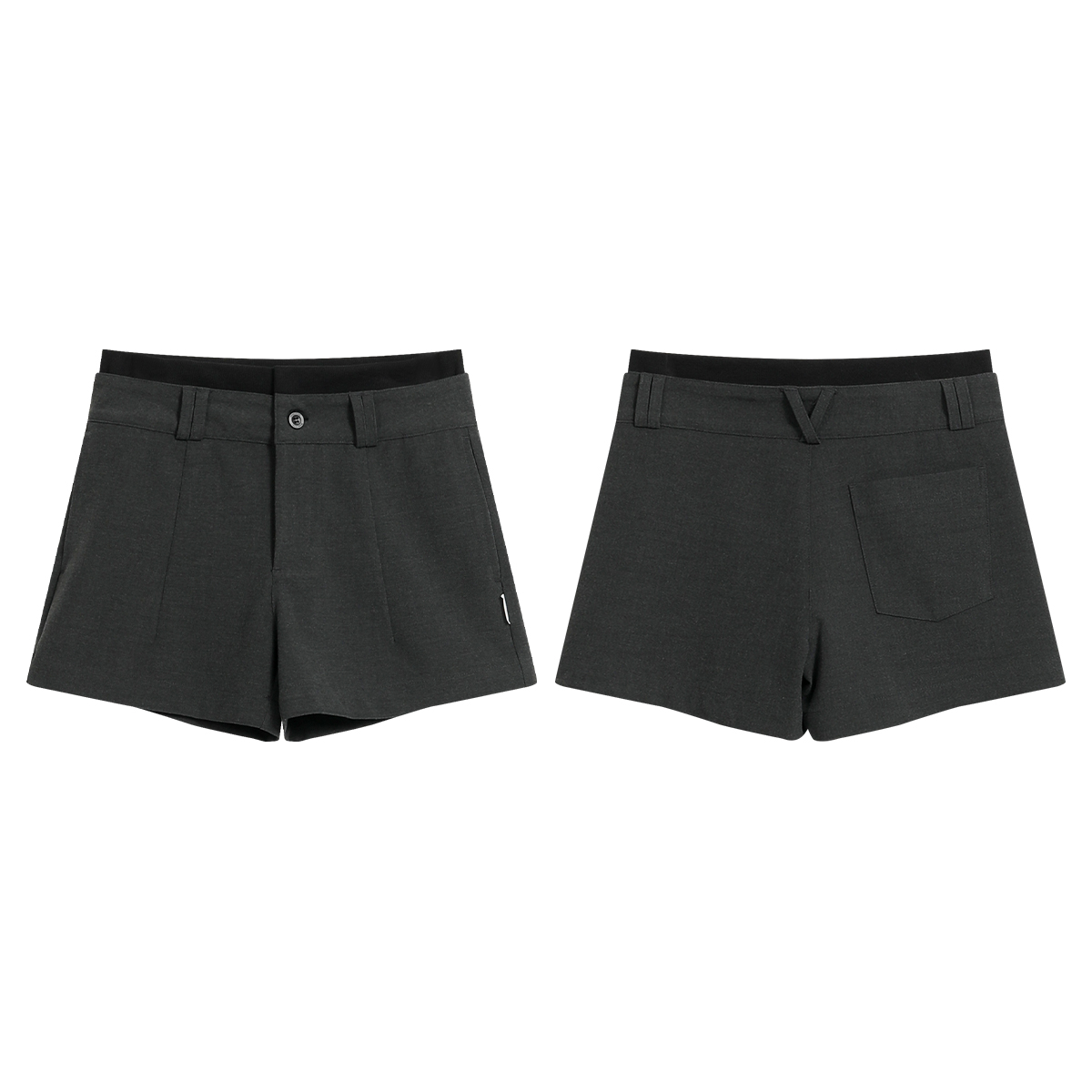 FUNKYFUN Threaded Splicing Fake Two-Piece Double Waist Shorts