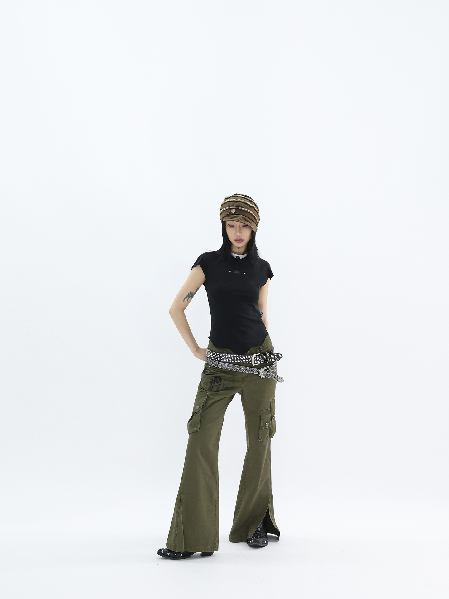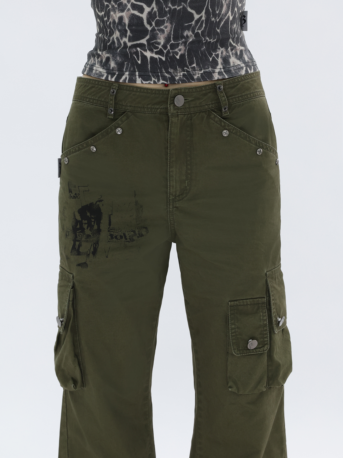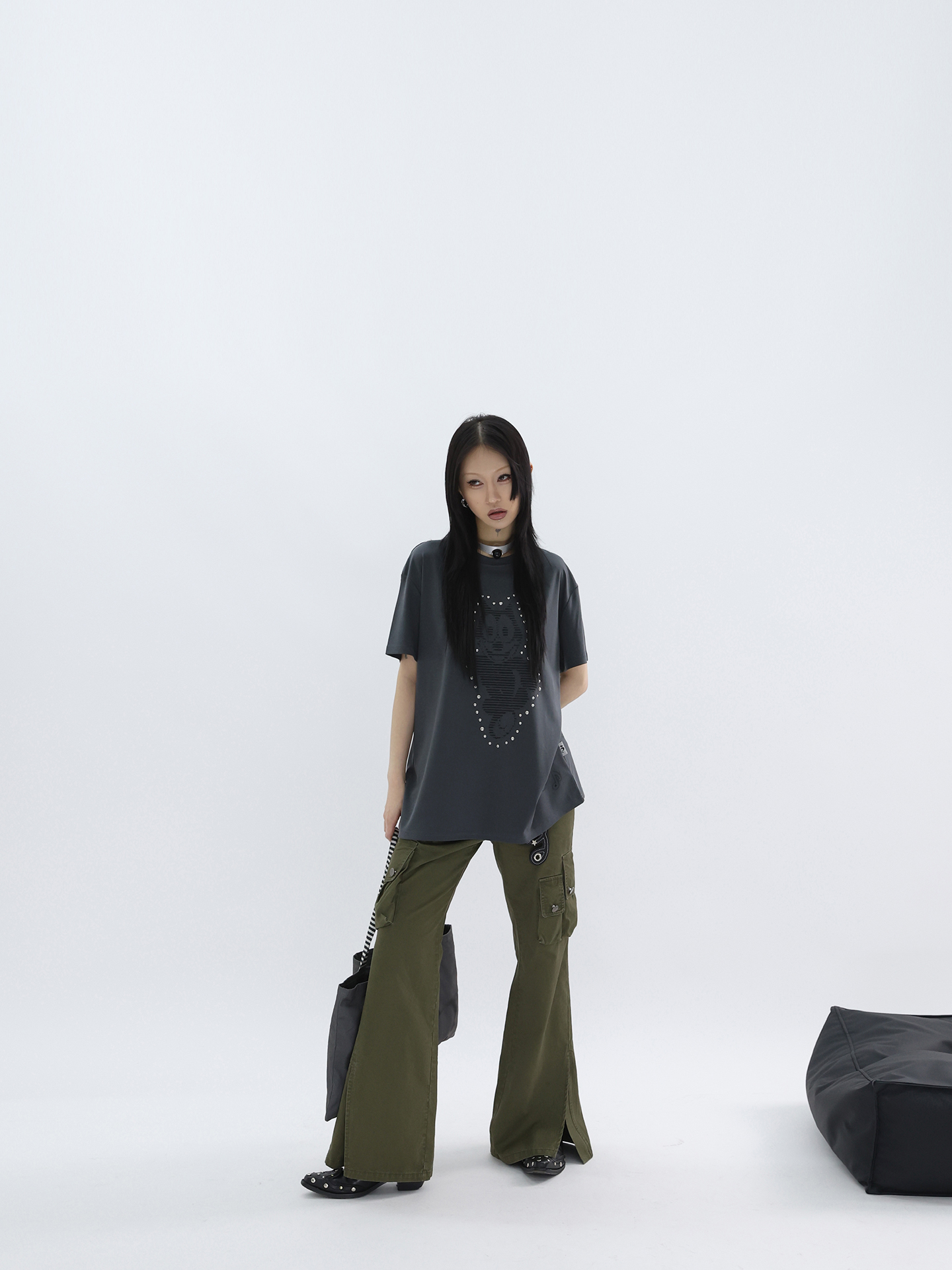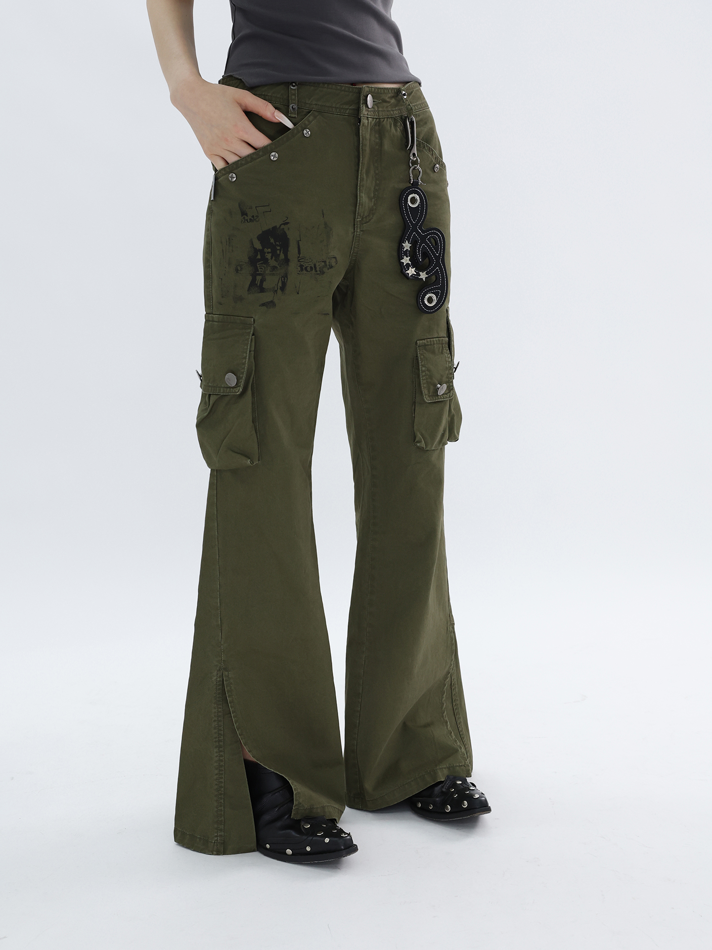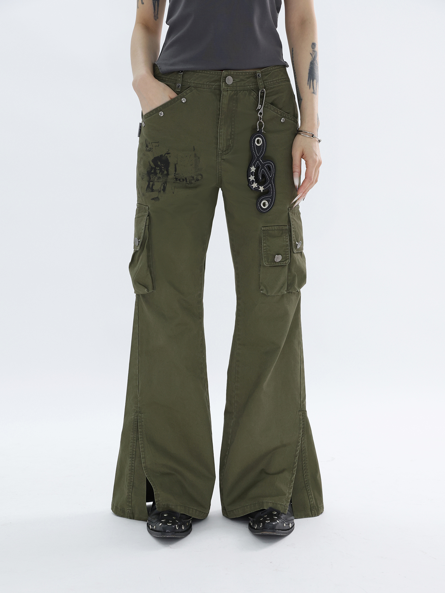 FUZZYKON Retro Portrait Print Tooling Flared Pants