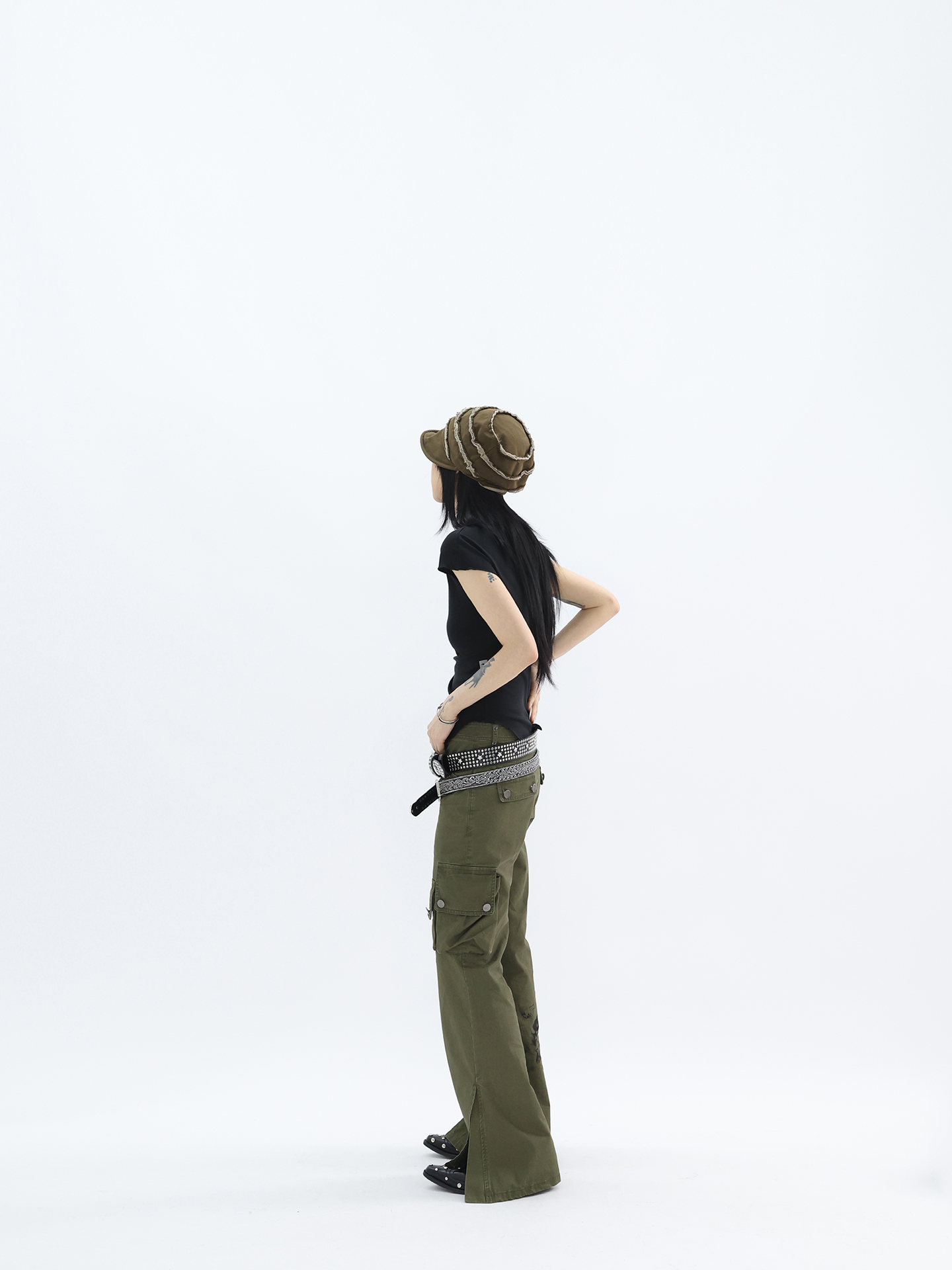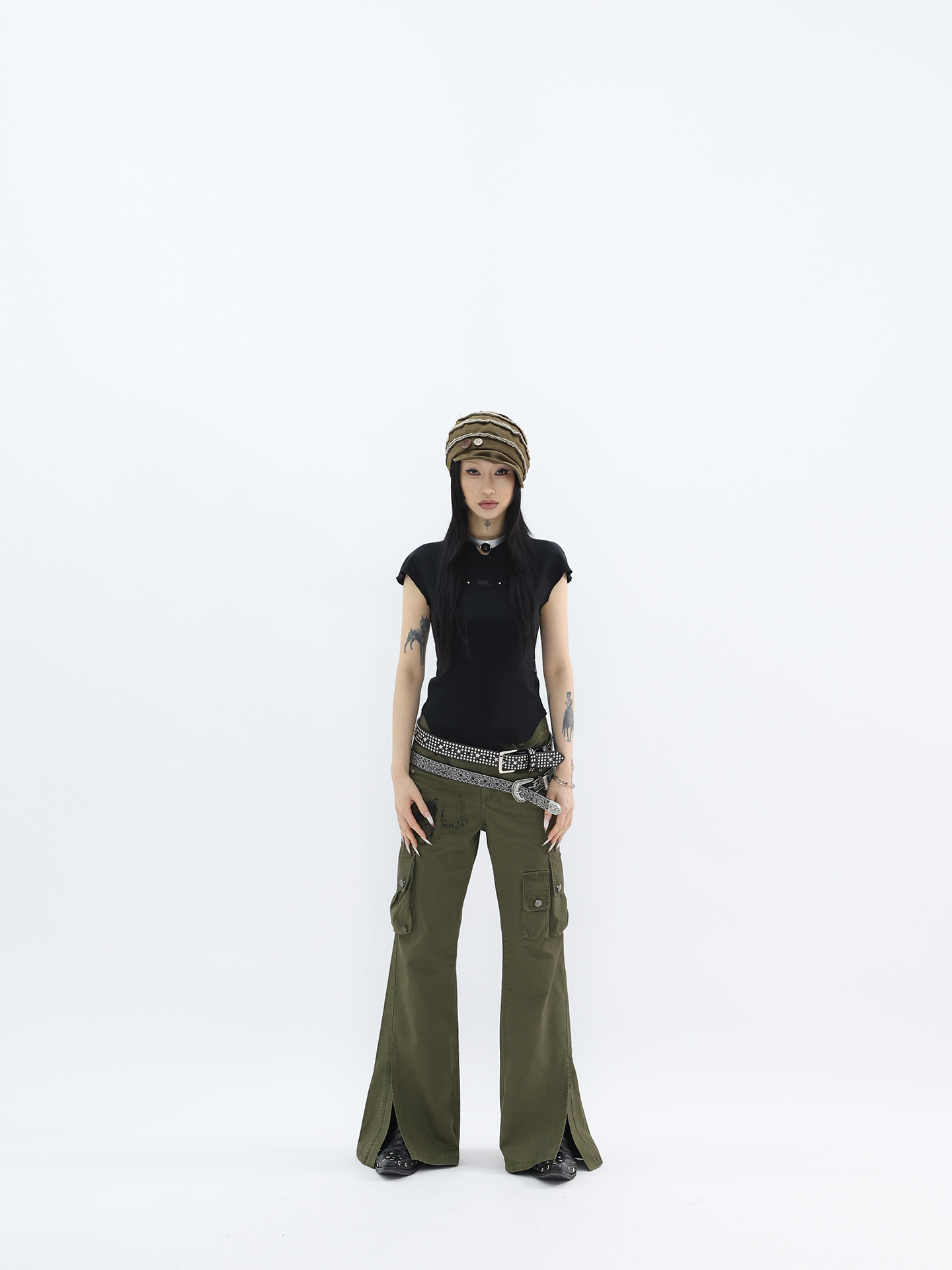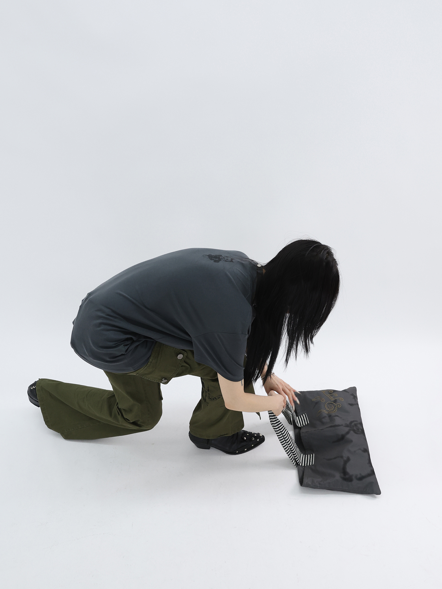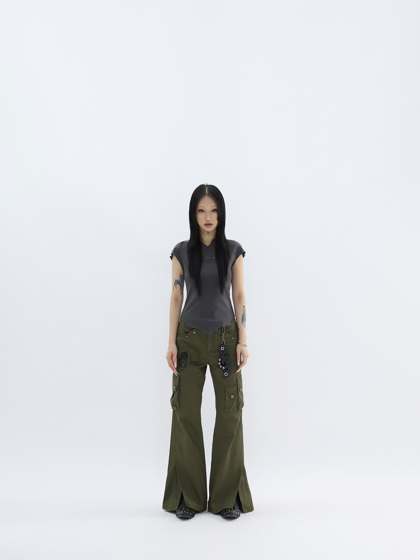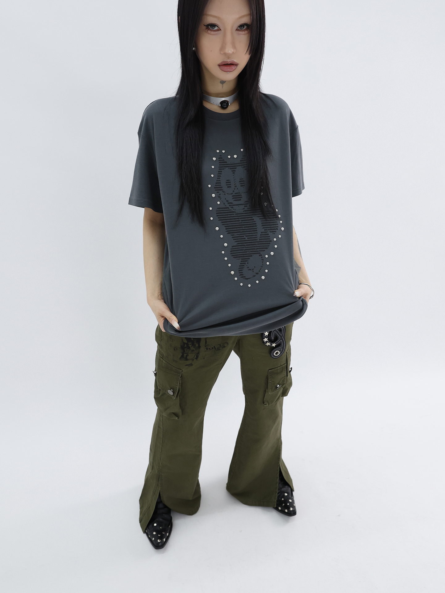 FUZZYKON Retro Portrait Print Tooling Flared Pants