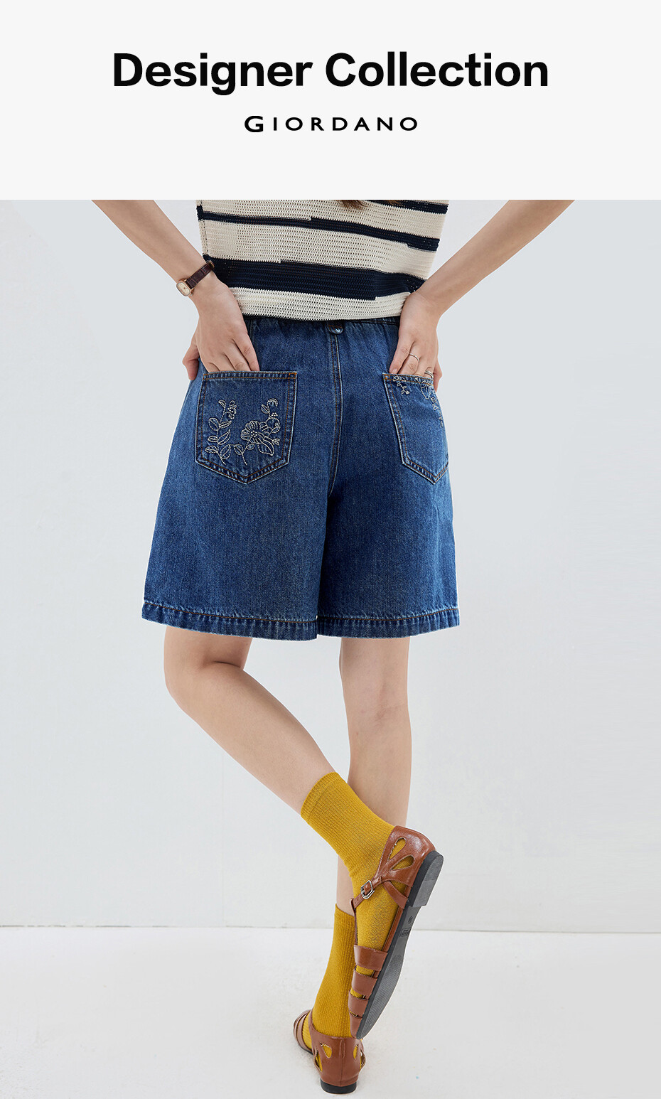 Giordano Embroidered Semi-elastic Waist Wide-leg Shorts