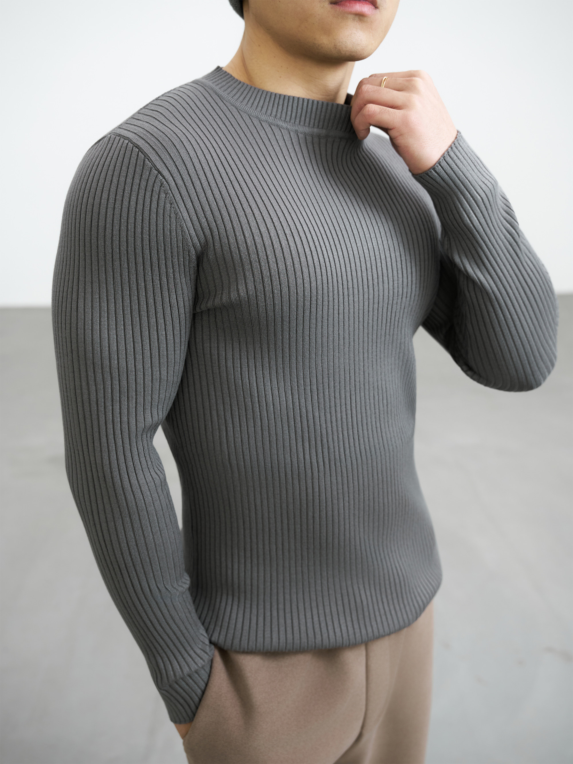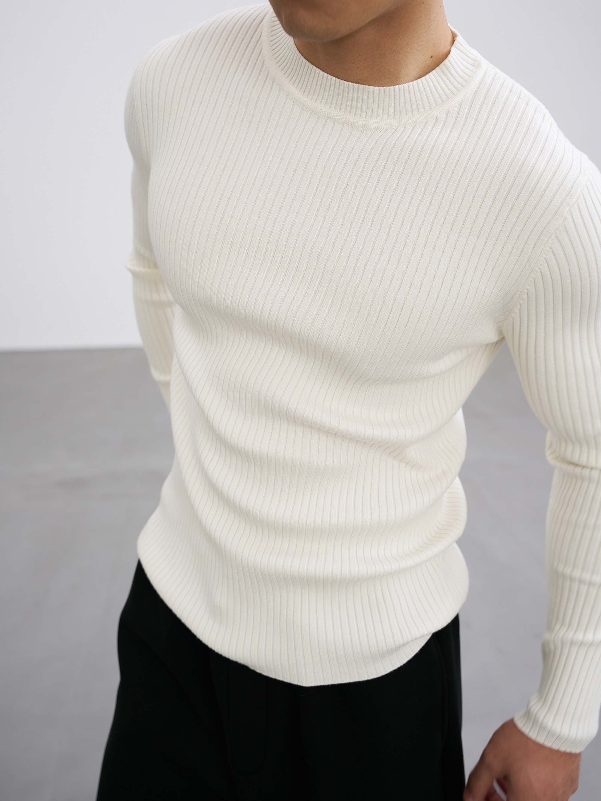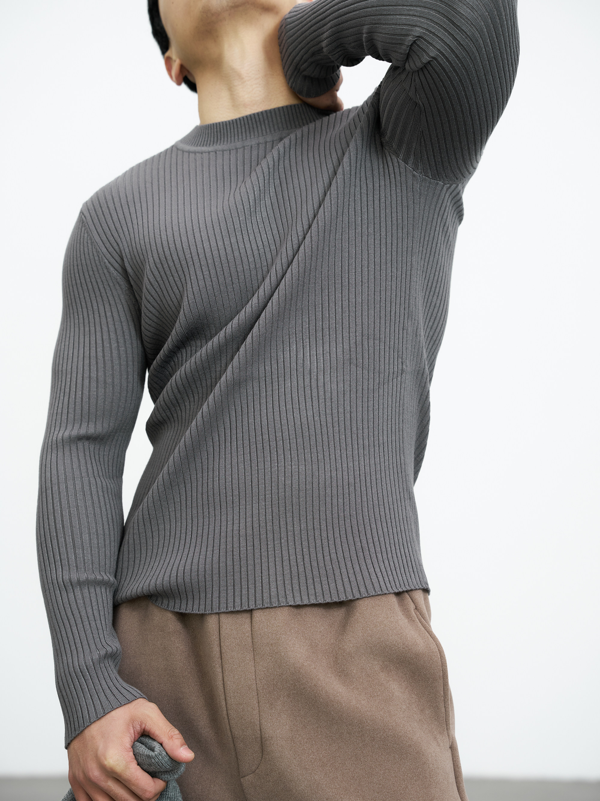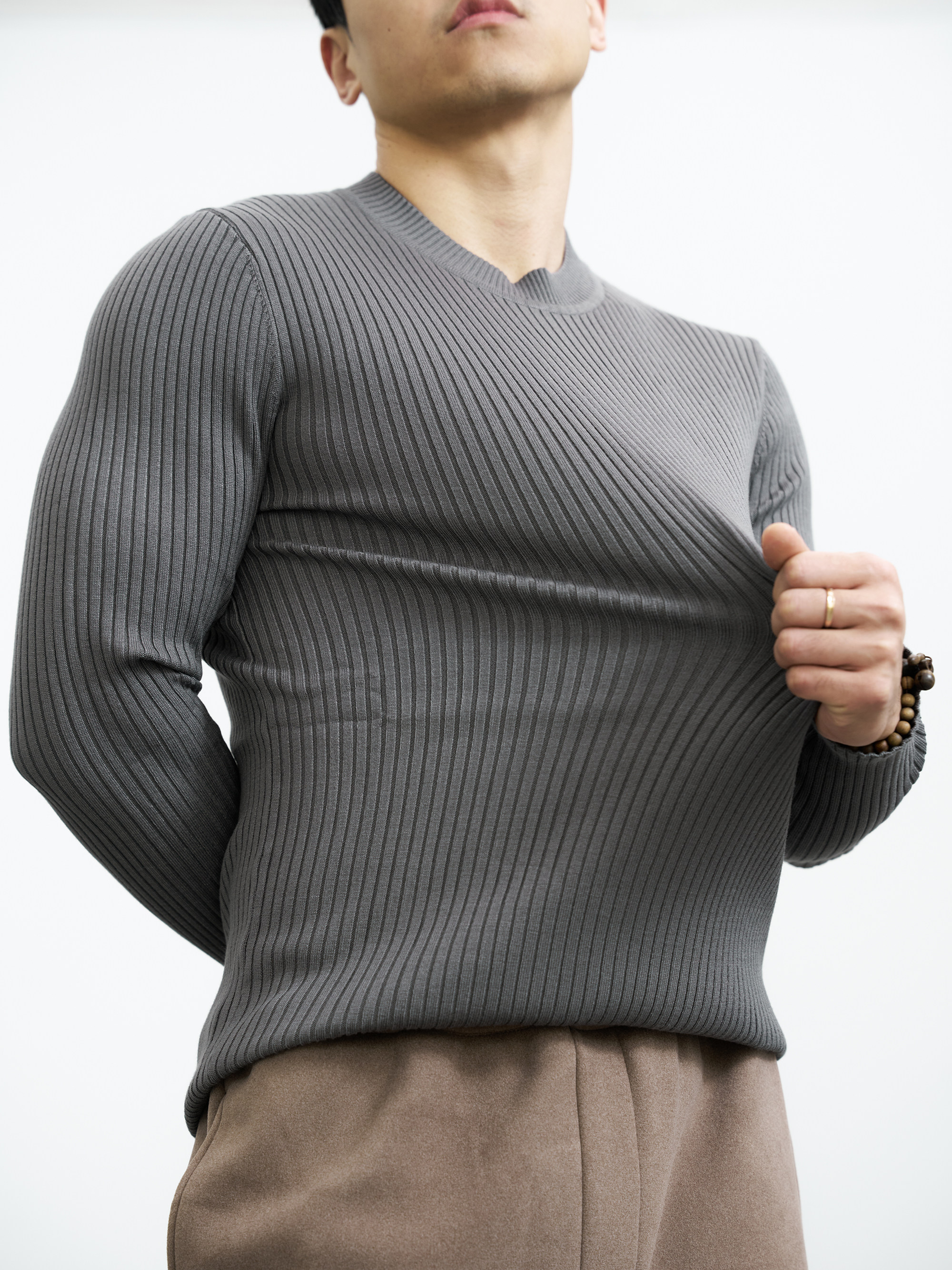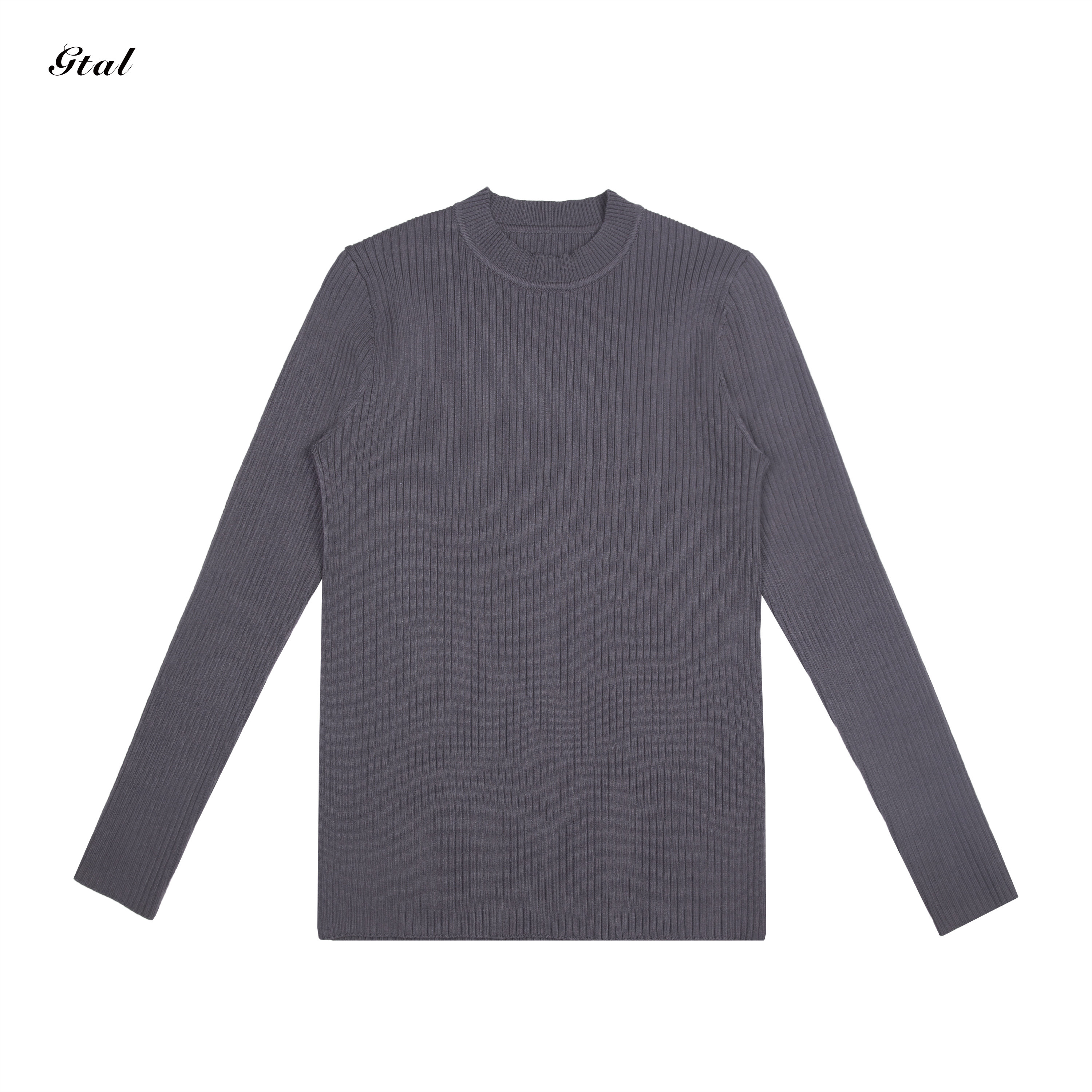 GTAL Striped Anti-Pilling Solid Color Slim-Fit Knitted Sweater Long Sleeves