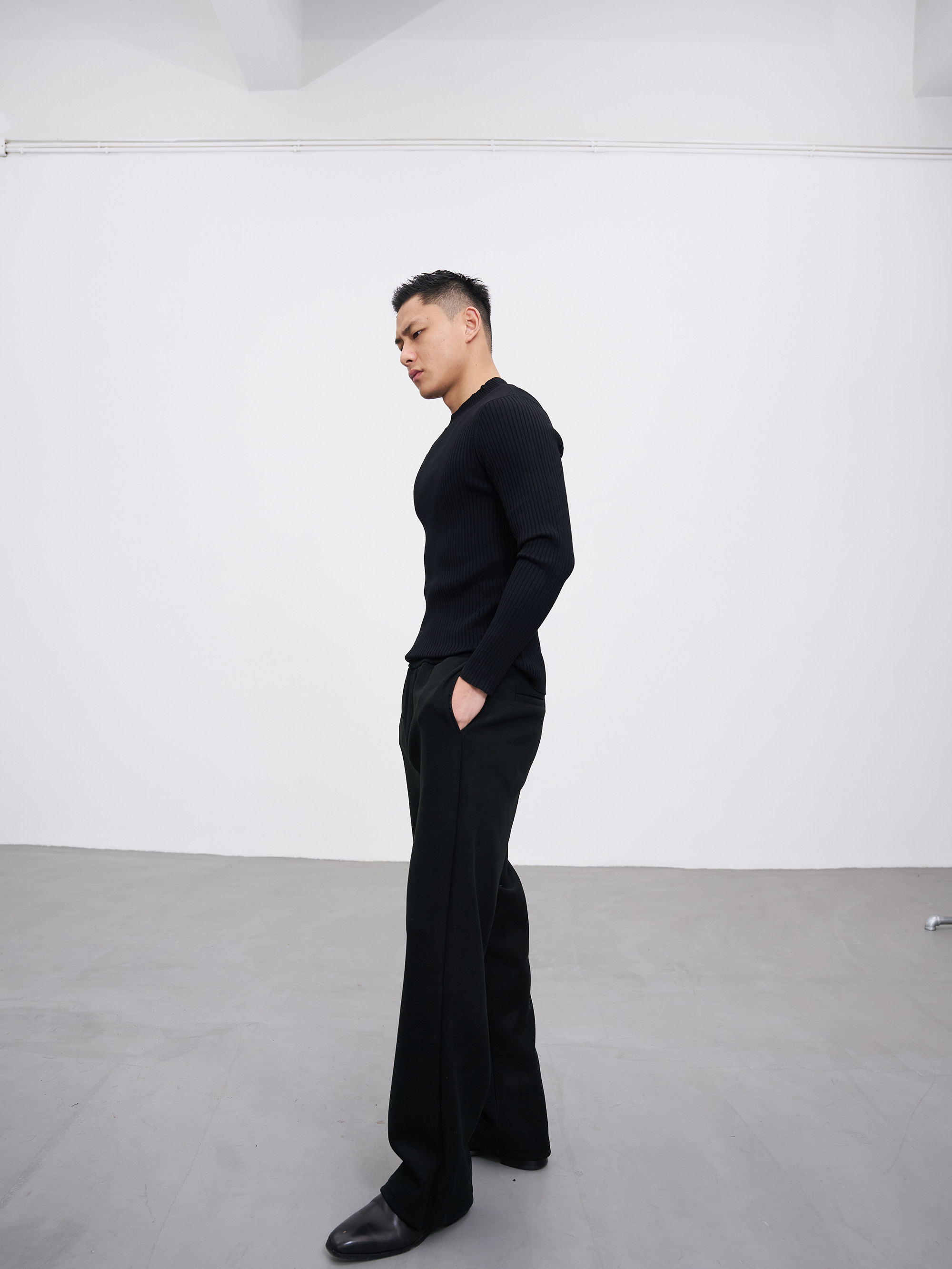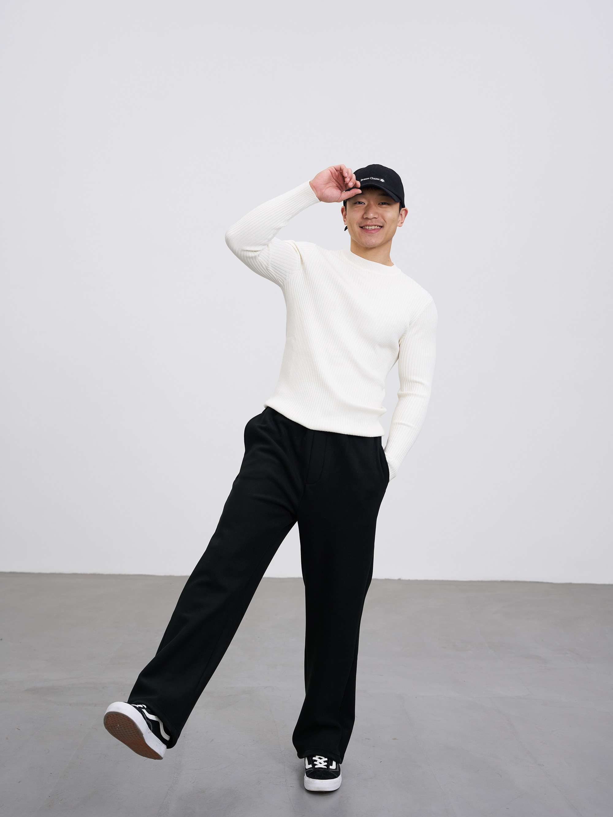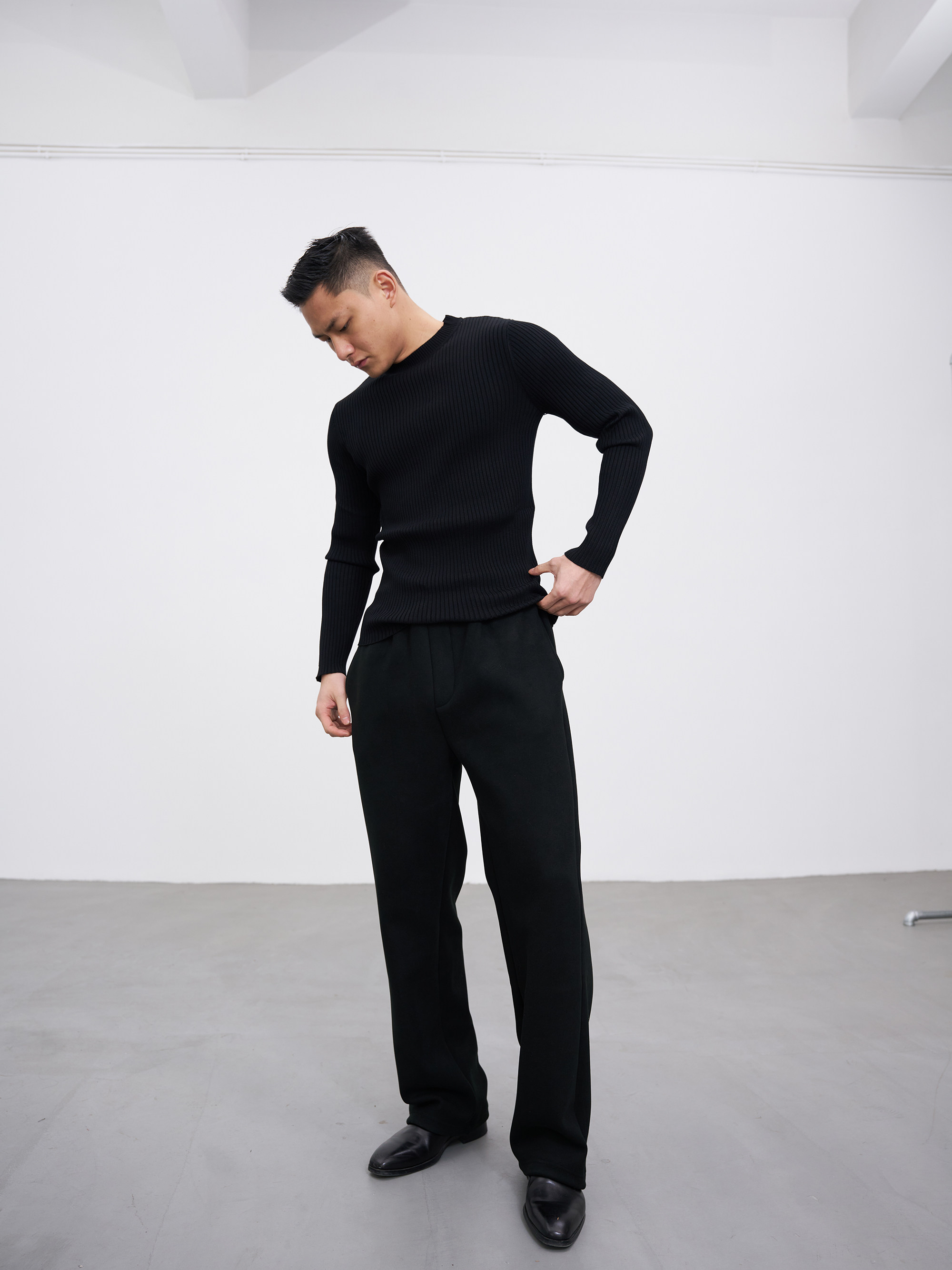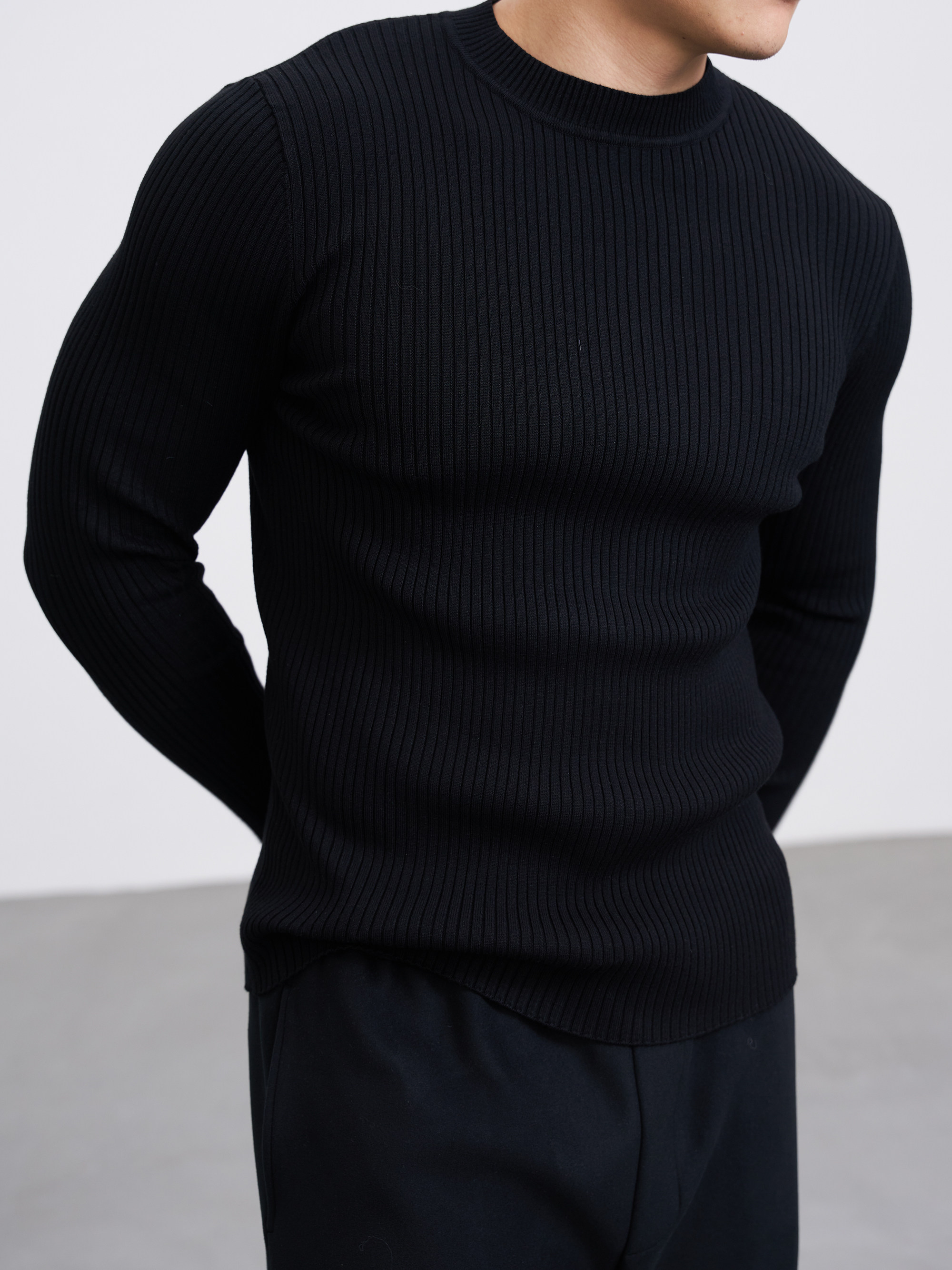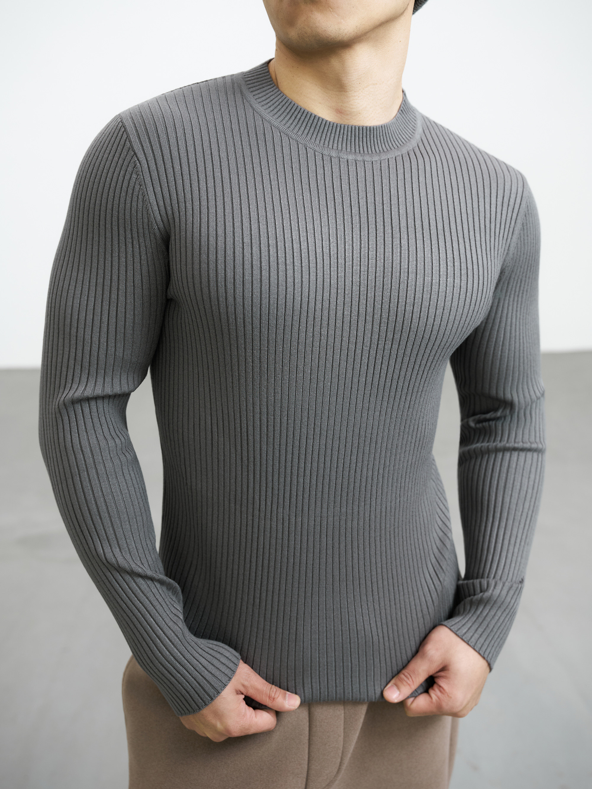 GTAL Striped Anti-Pilling Solid Color Slim-Fit Knitted Sweater Long Sleeves