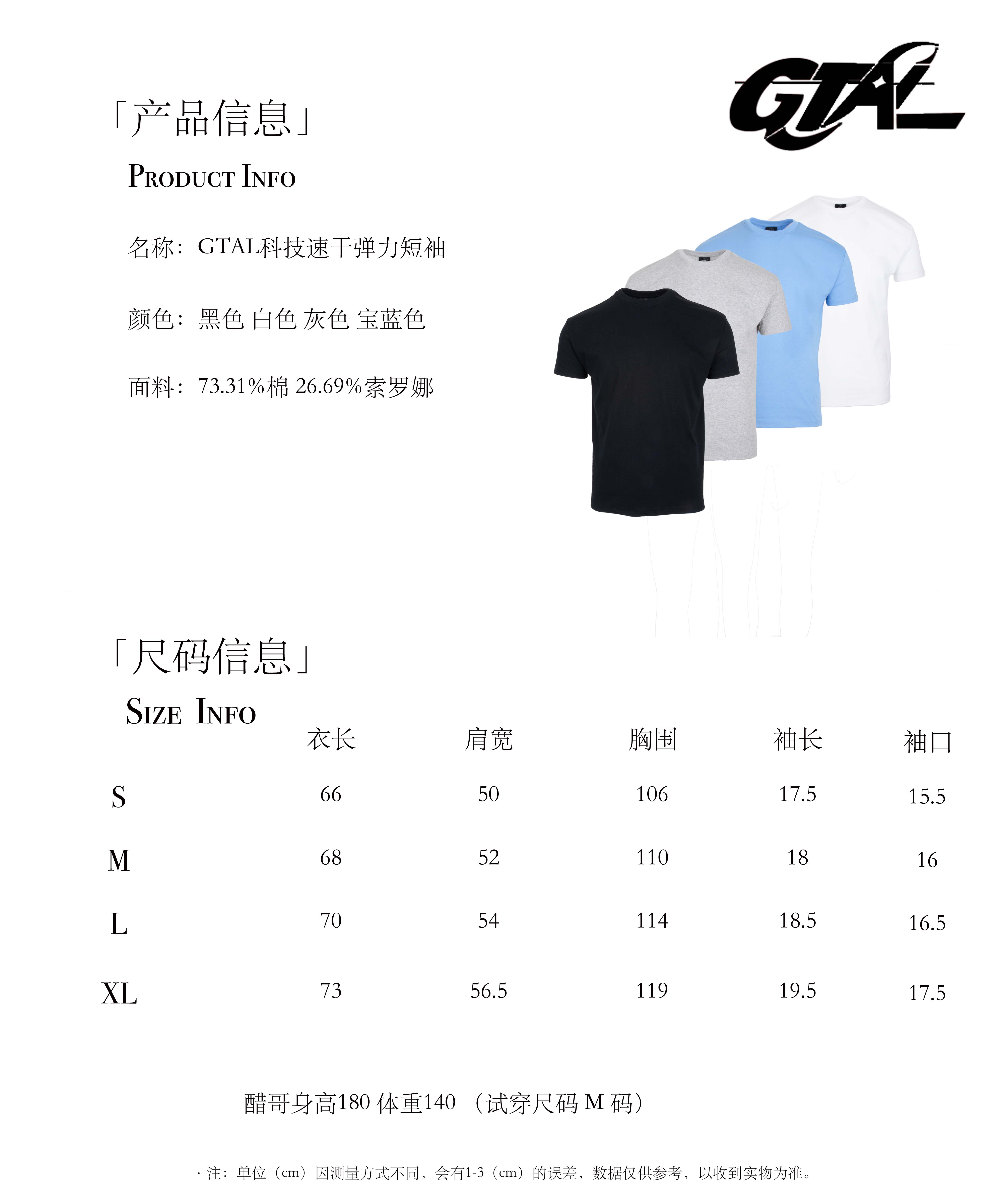 GTAL Tight Fitness Quick Drying Crew Neck tee