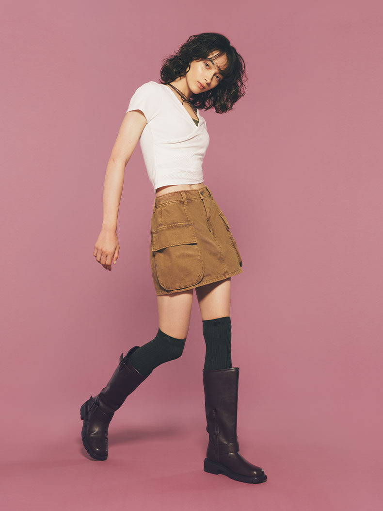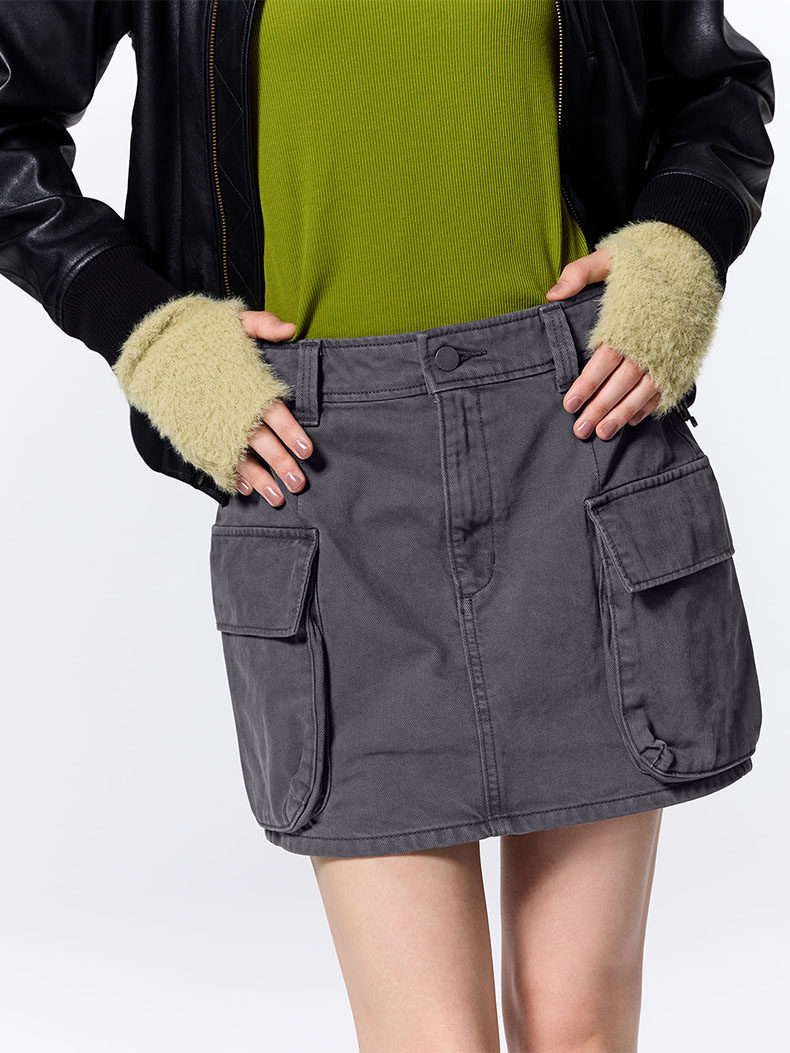 GU Tooling Style Mini Skirt Low Waist Retro Short Skirt